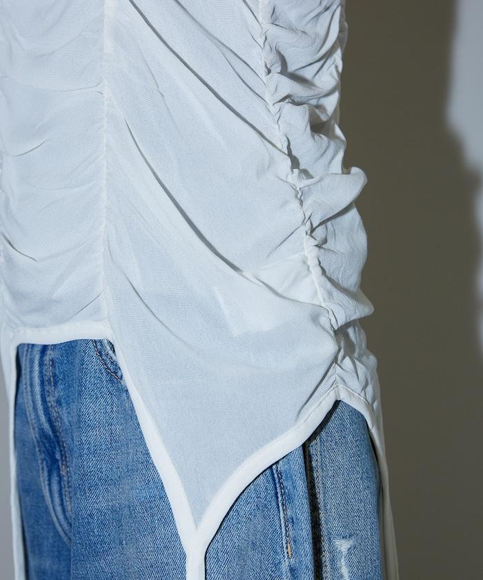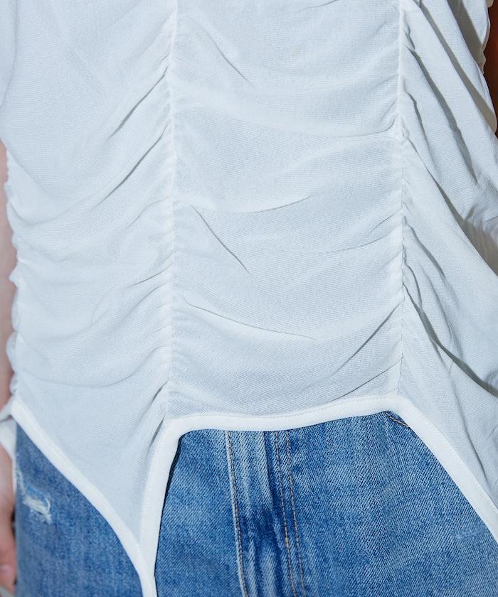 透視背心在過渡處採用了褶皺設計,雖然面料較薄,但立體效果給人一種舒適的感覺。