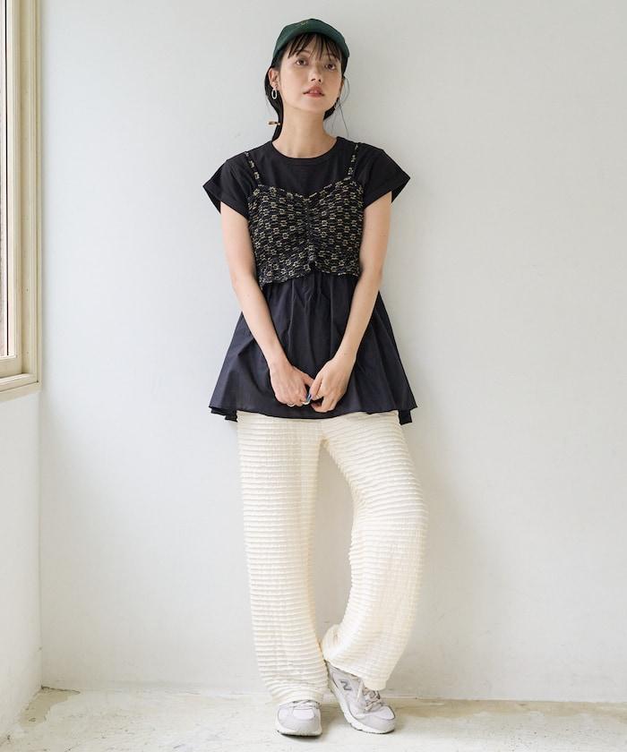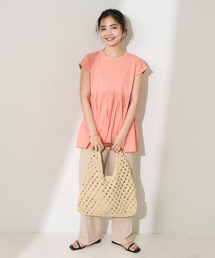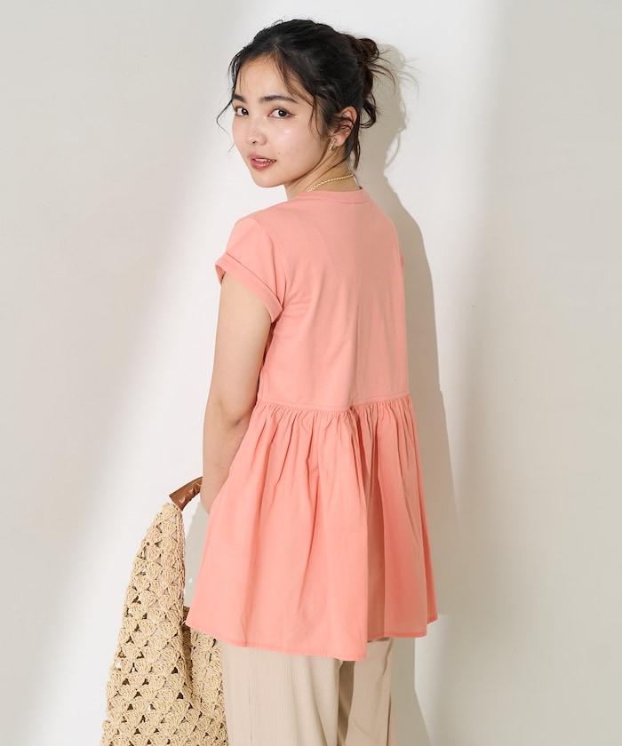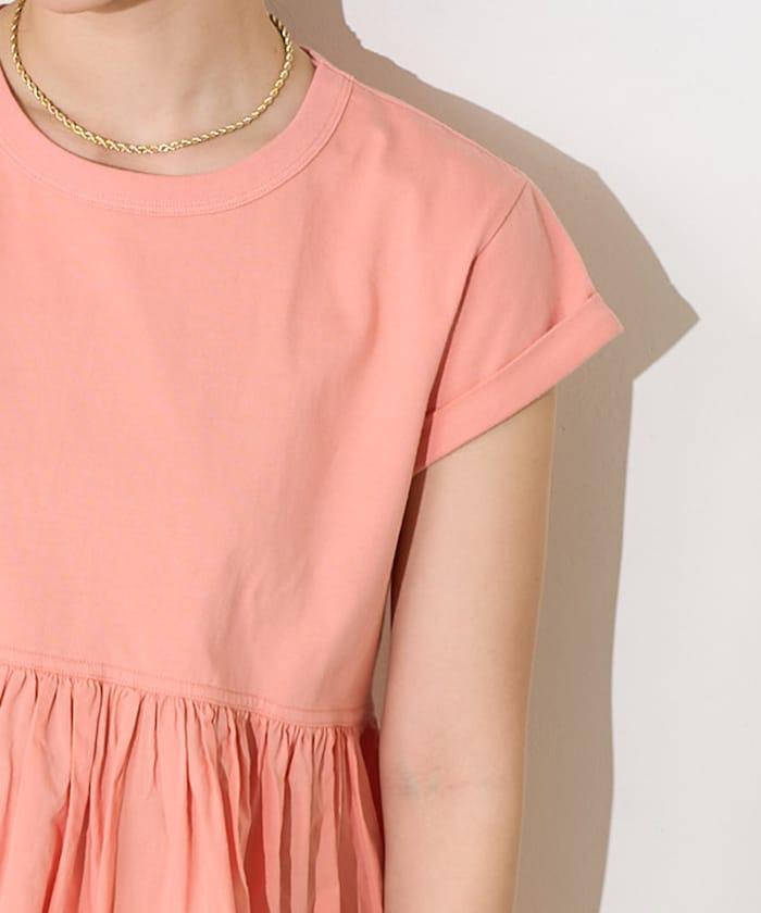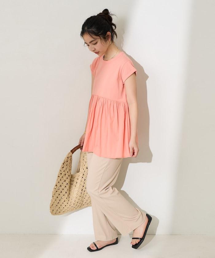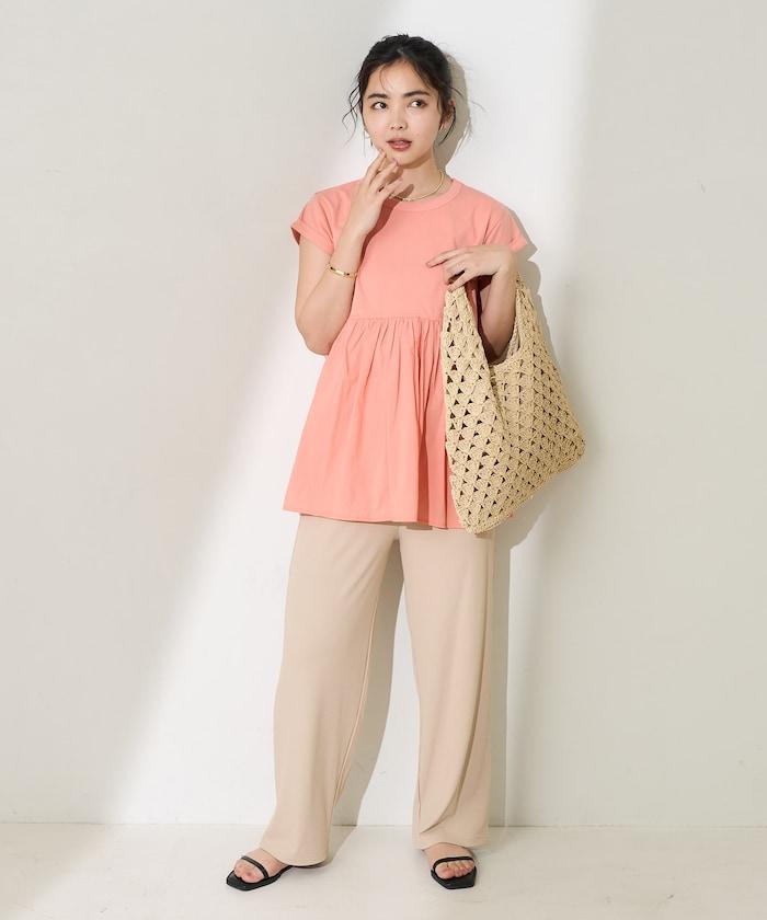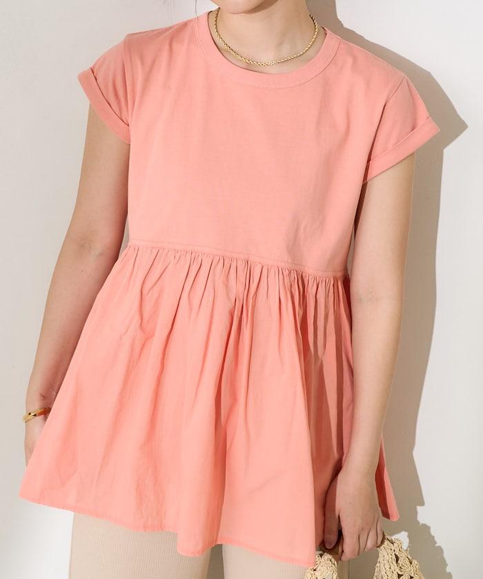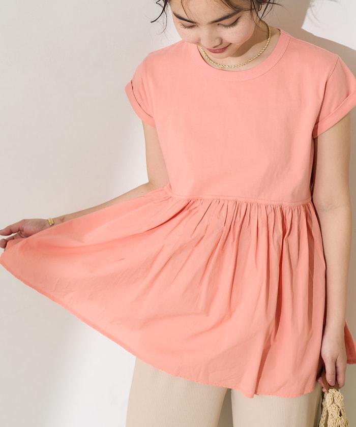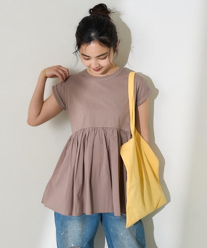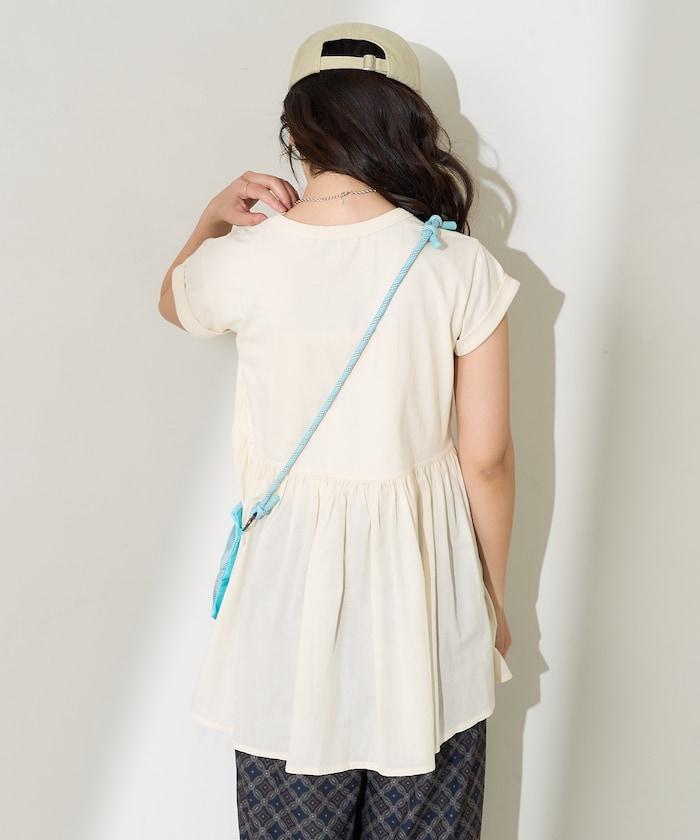 短袖 T 恤採用柔軟厚實的針織面料製成,採用不同材質的喇叭設計。