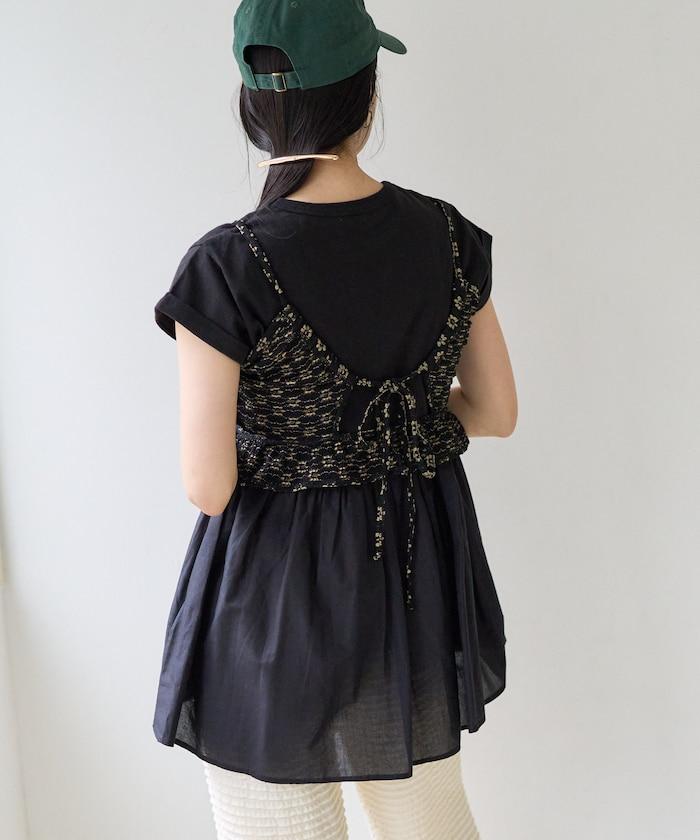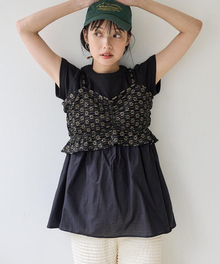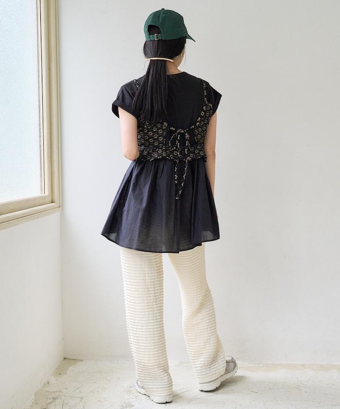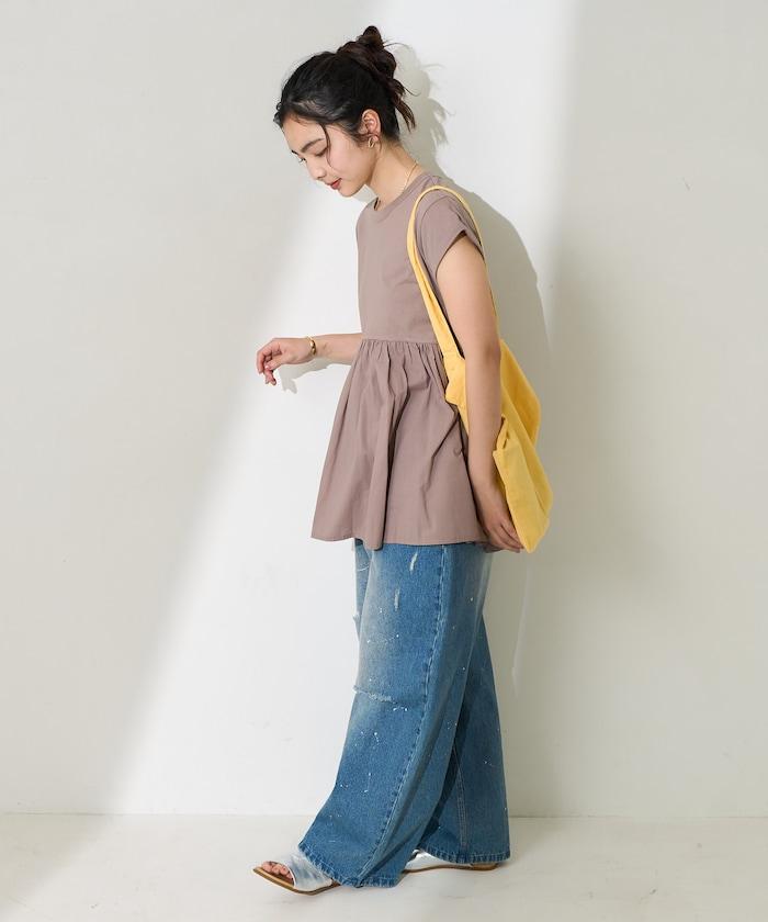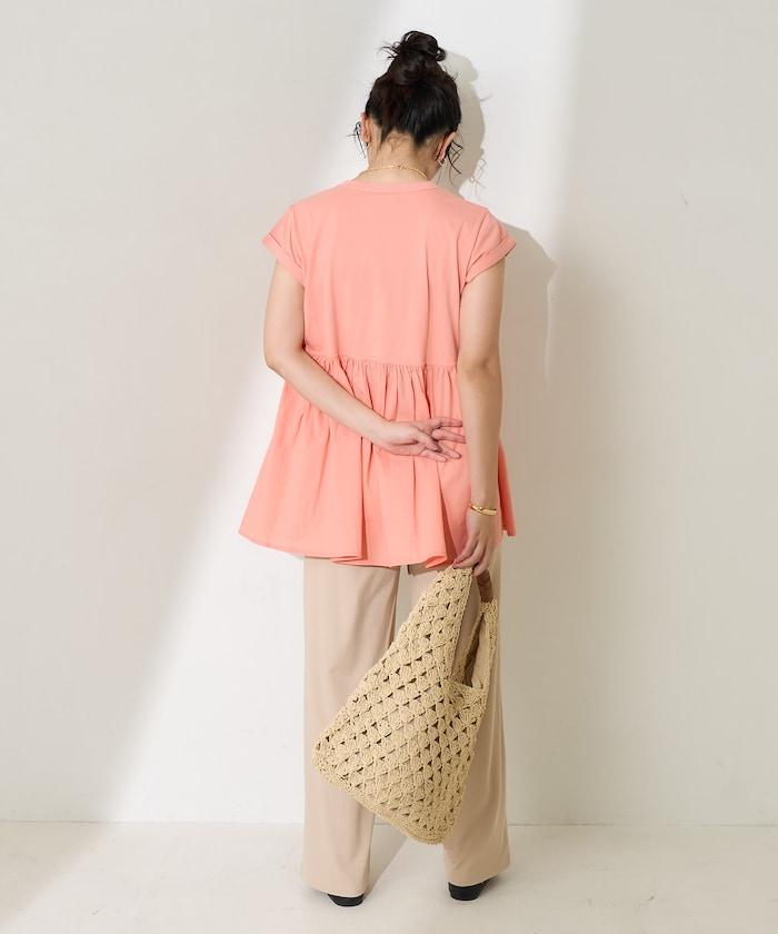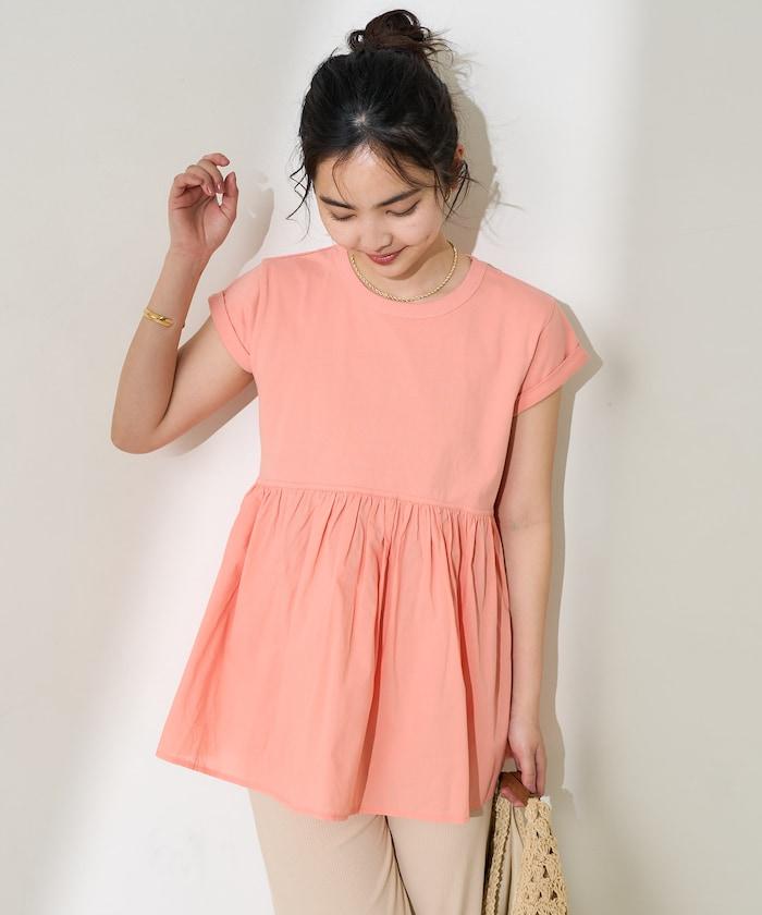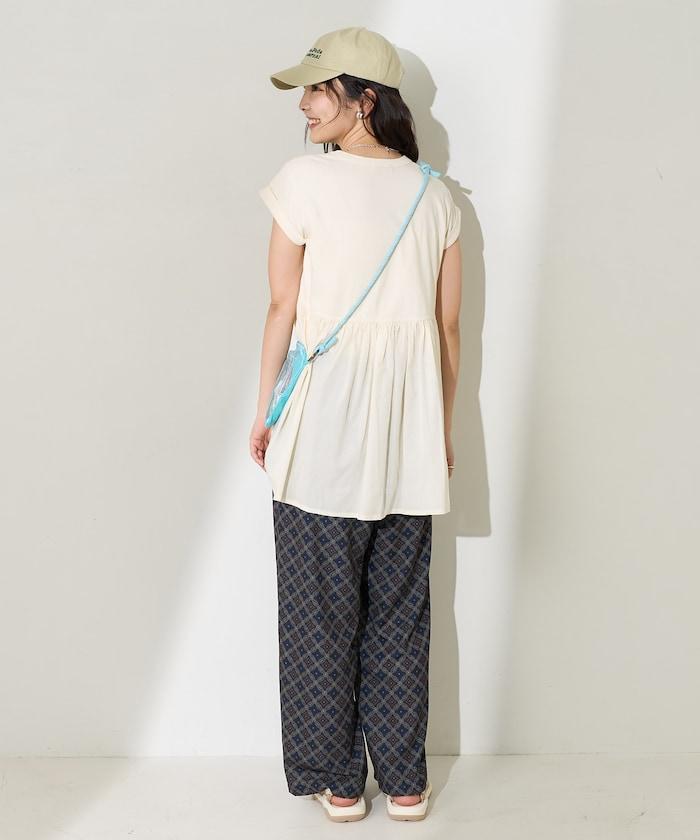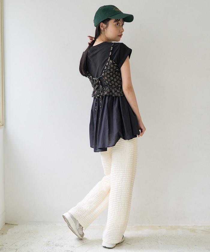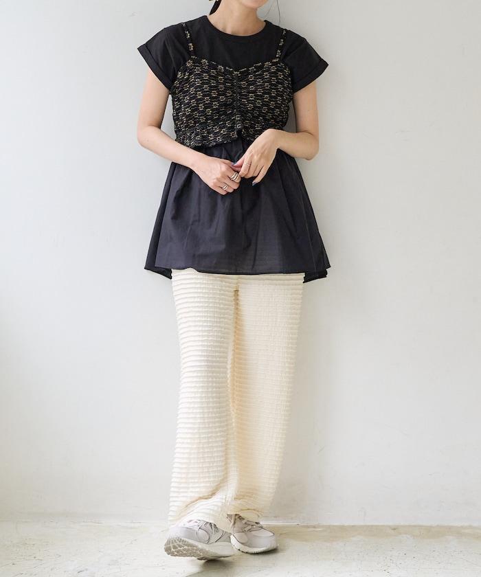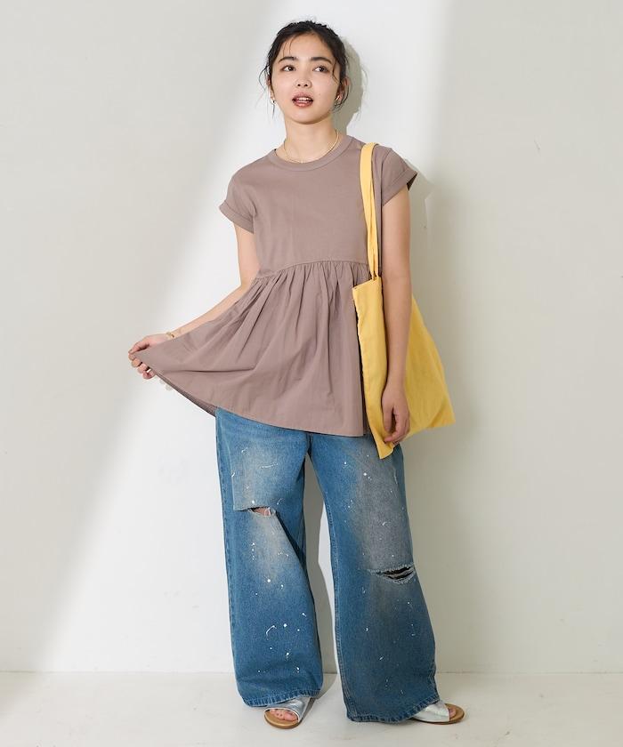 短袖 T 恤採用柔軟厚實的針織面料製成,採用不同材質的喇叭設計。