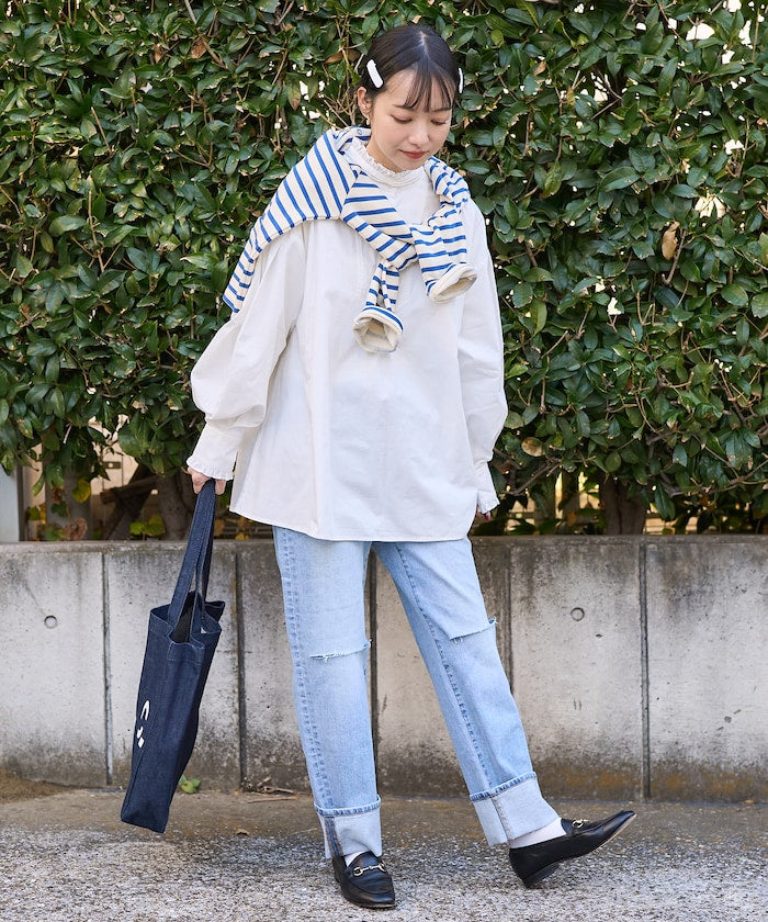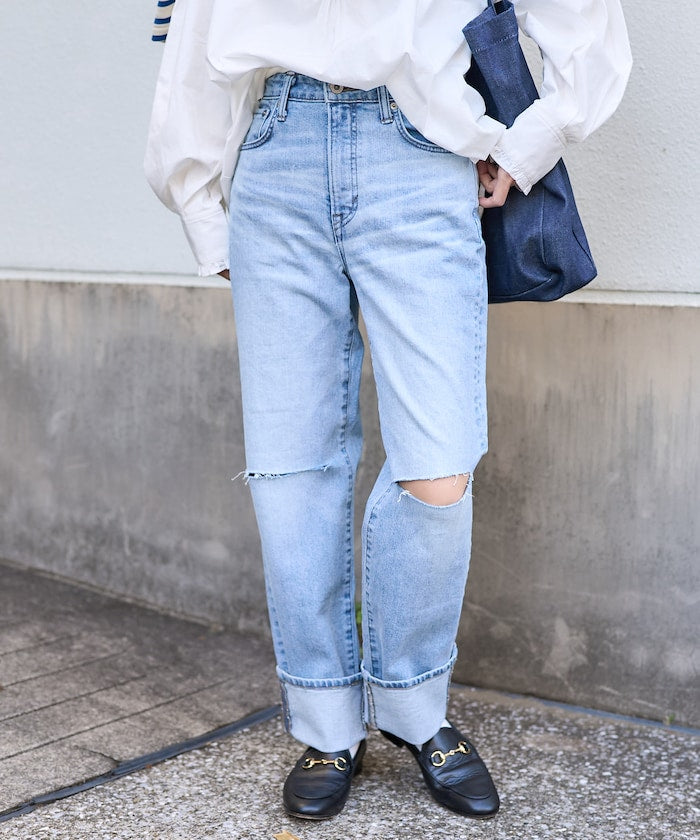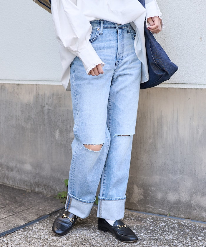 直筒輪廓牛仔布,從大腿到鞋底都是直筒輪廓。