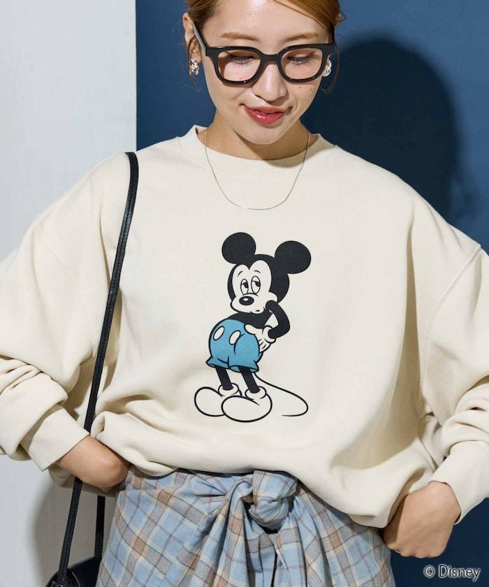 別注/Mickey Mouse/ミッキーマウス/前後 プリン トvintage 加工 スウェット【限定展開】