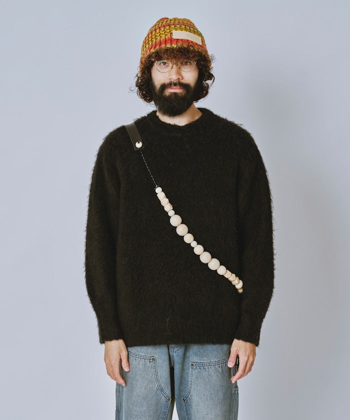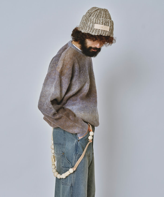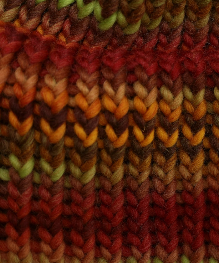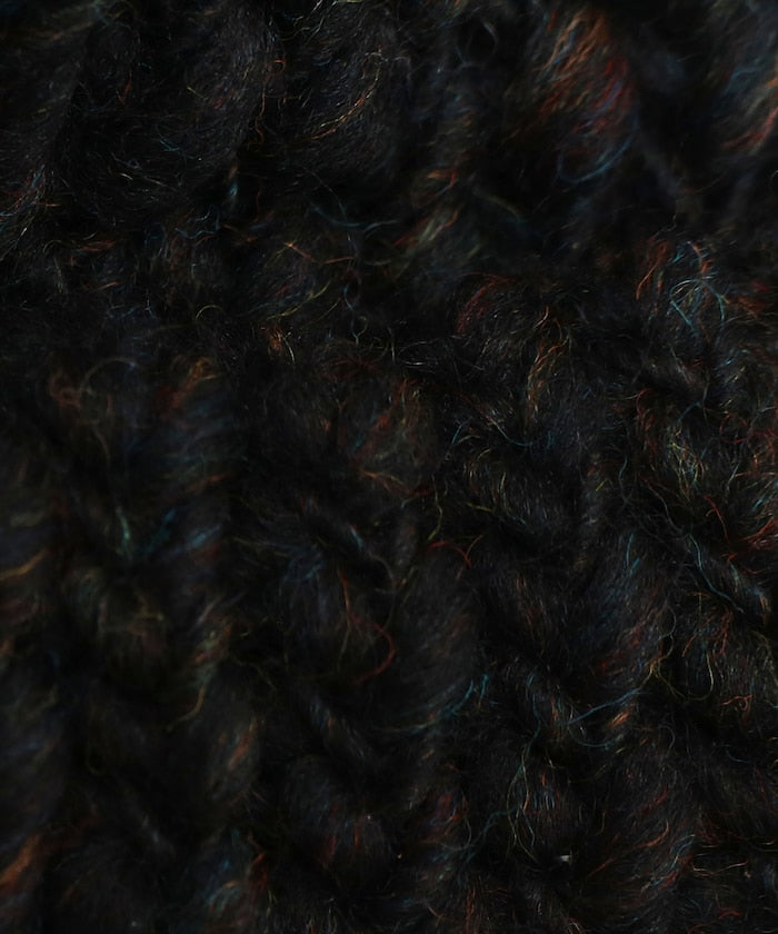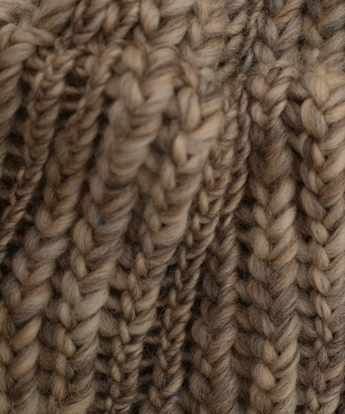該商品採用複雜的編織工藝,將多股羊毛紗線整理成螺旋狀的空氣感單股紗線。