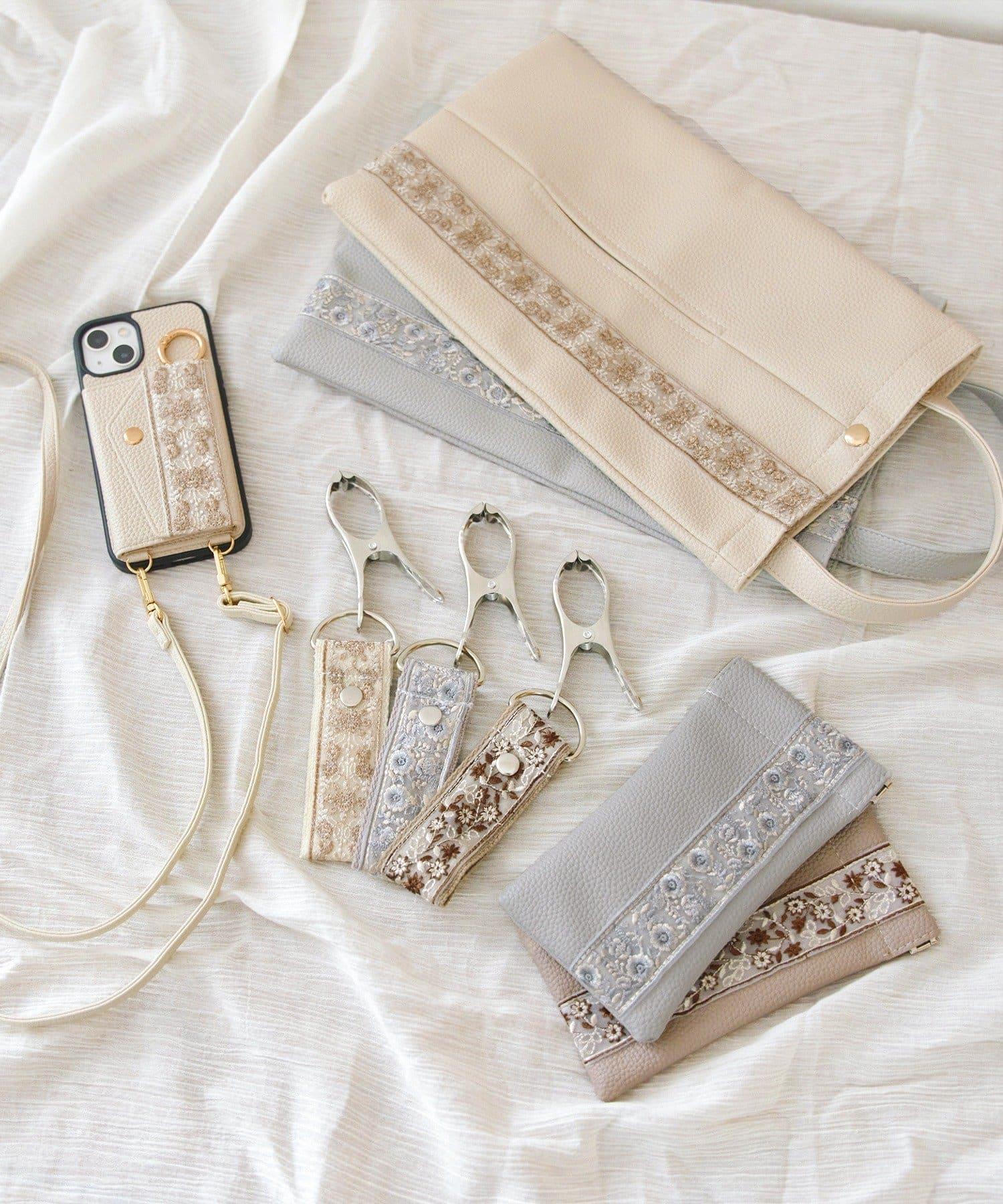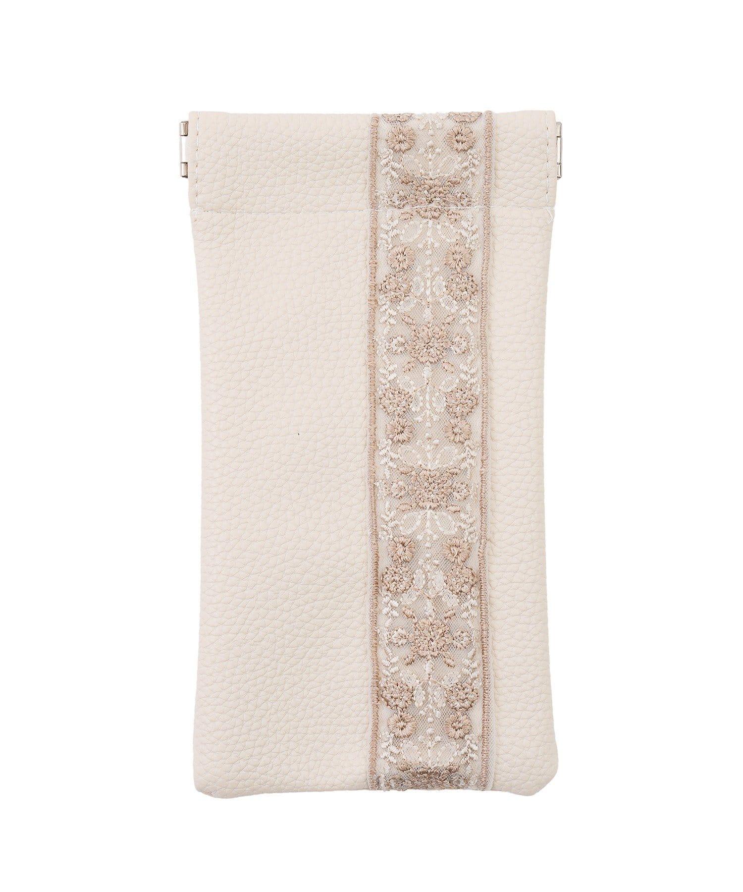 仿皮眼鏡袋上繡有精緻的絲帶,是優雅的點綴。