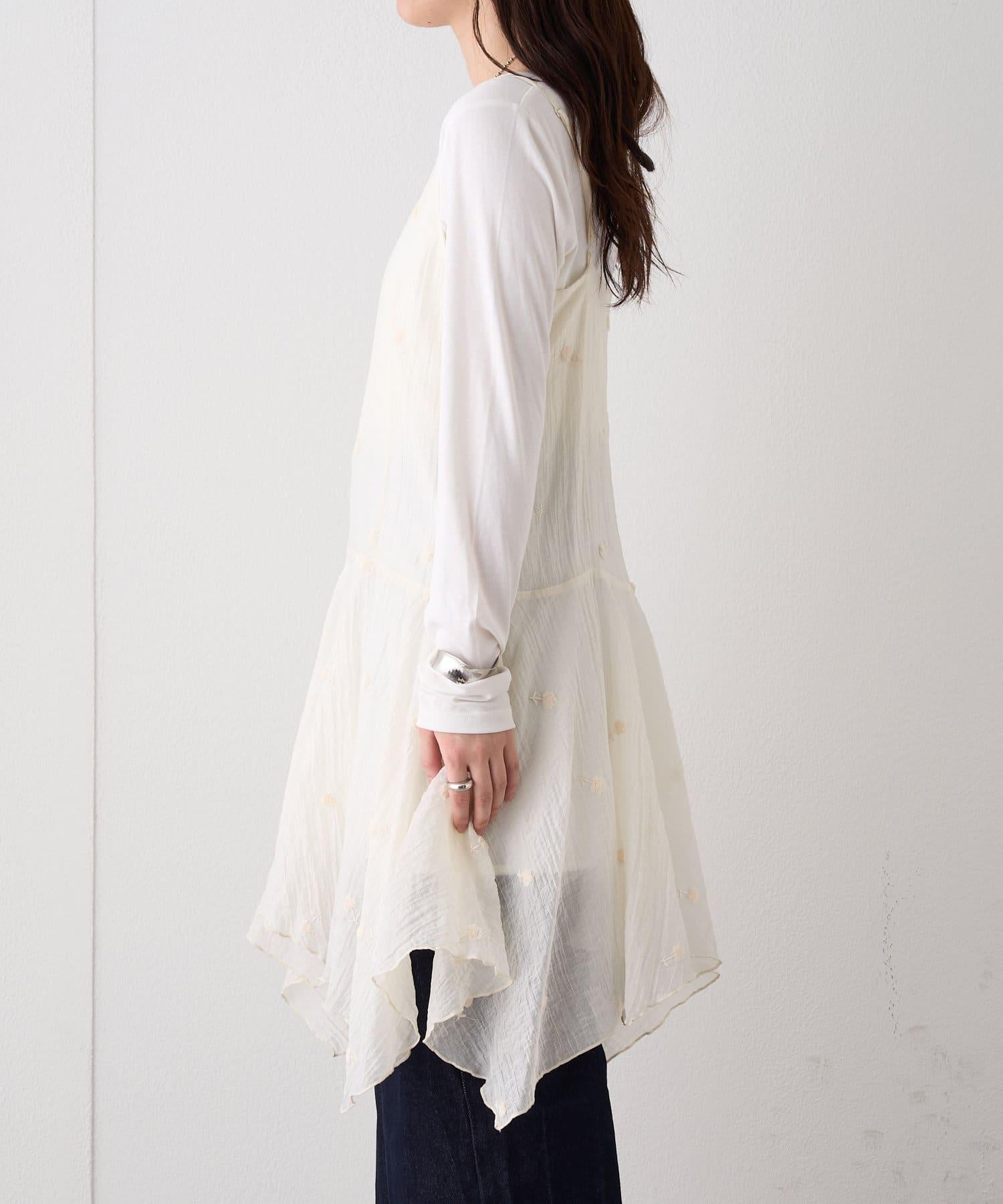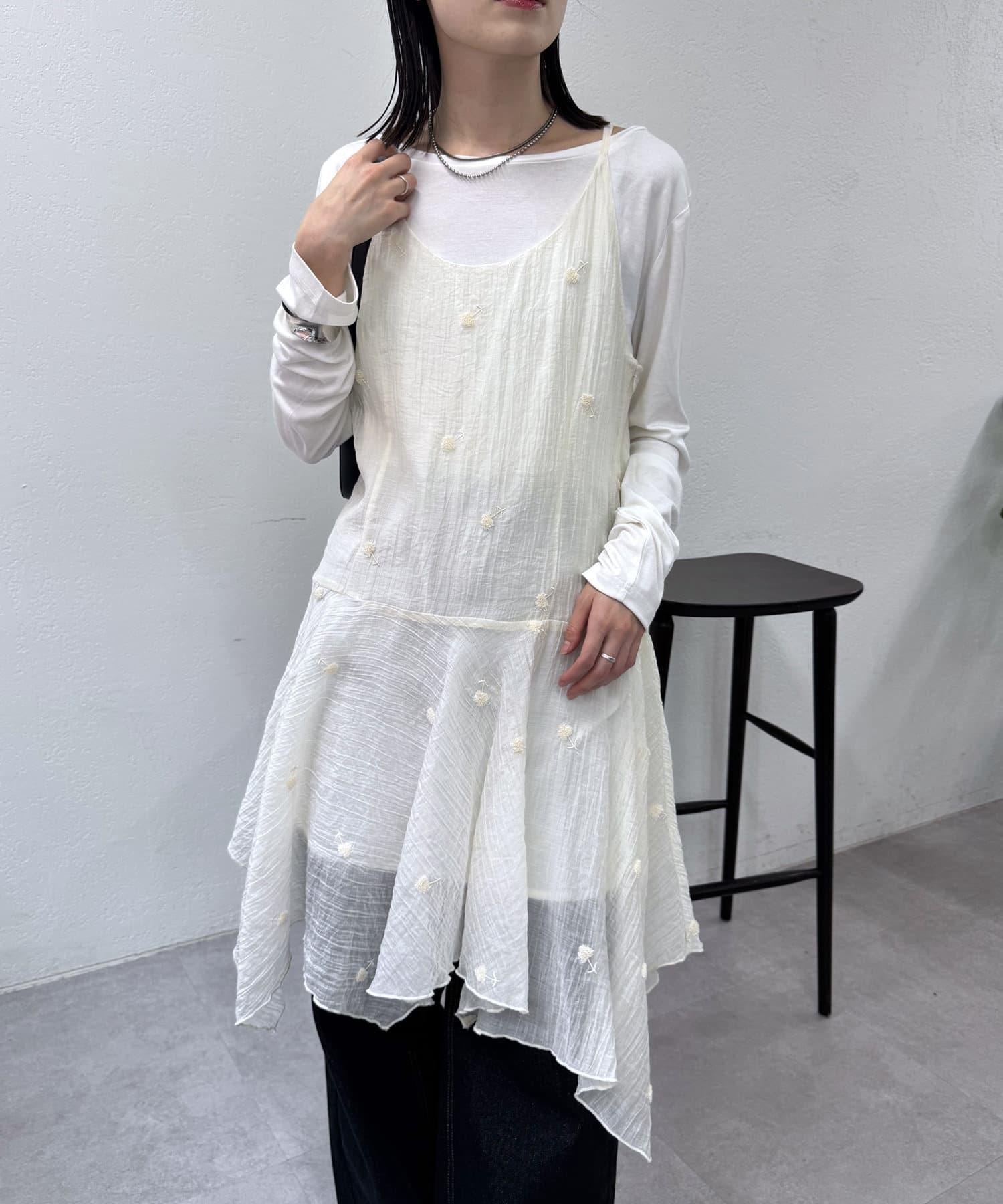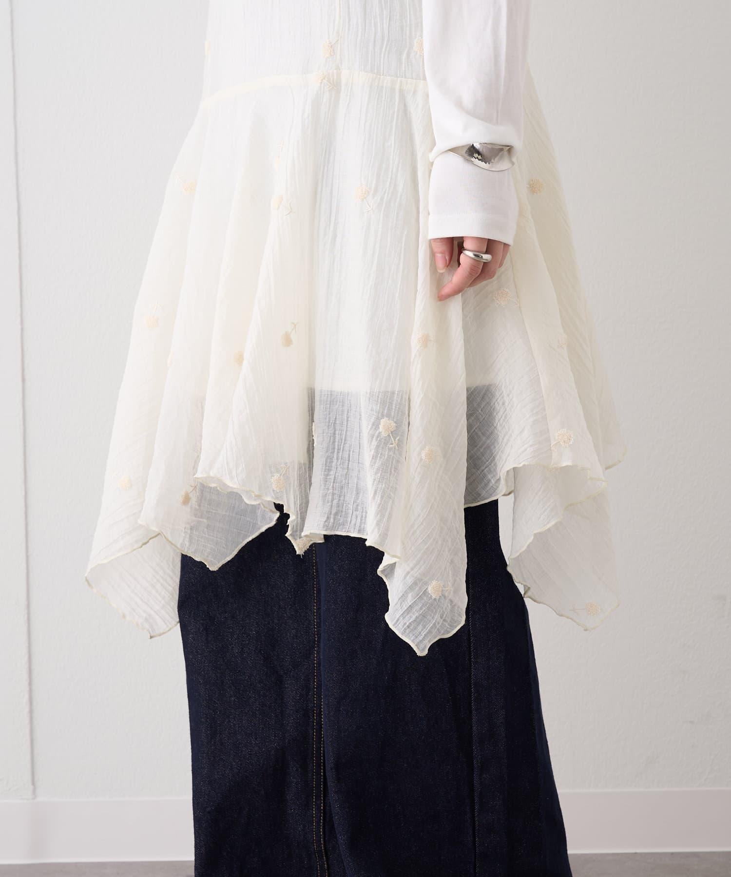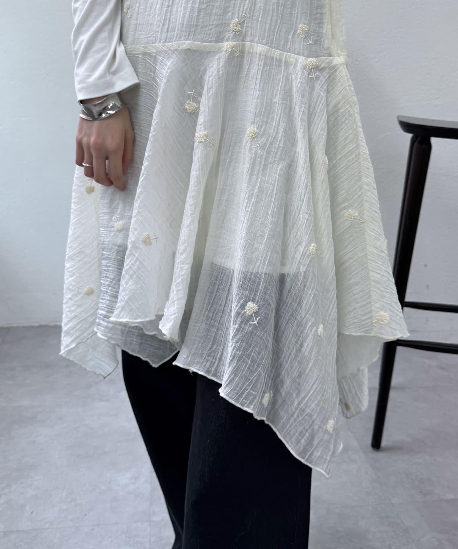 下襬的設計隨著行走而擺動,面料的透明感讓它看起來更加少女。