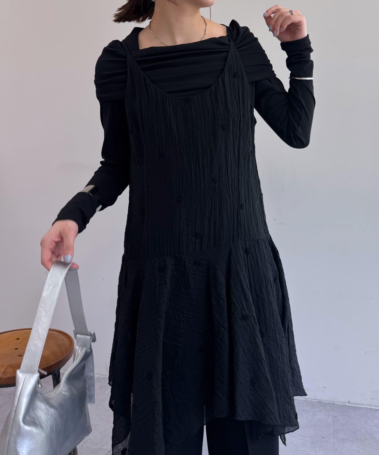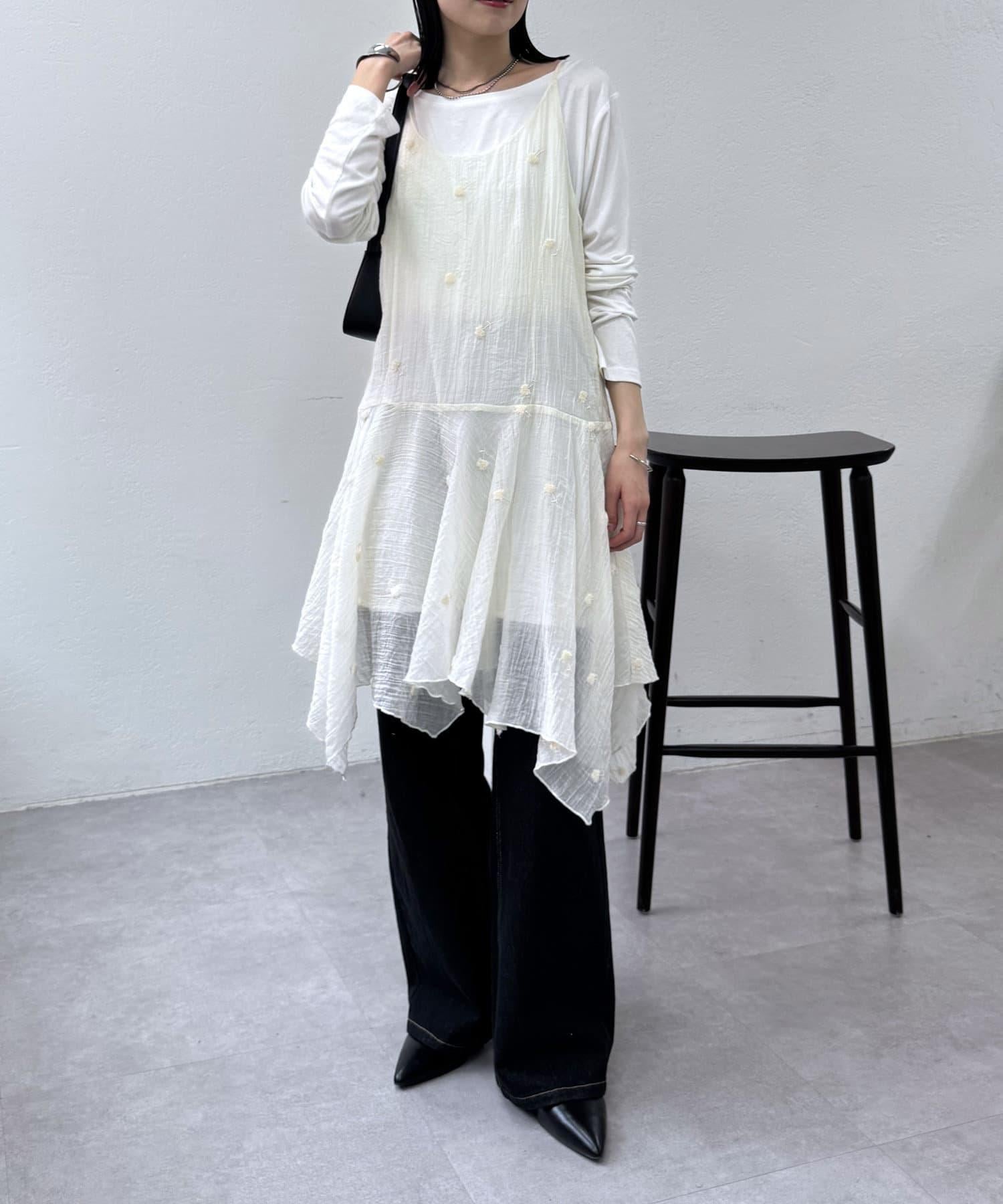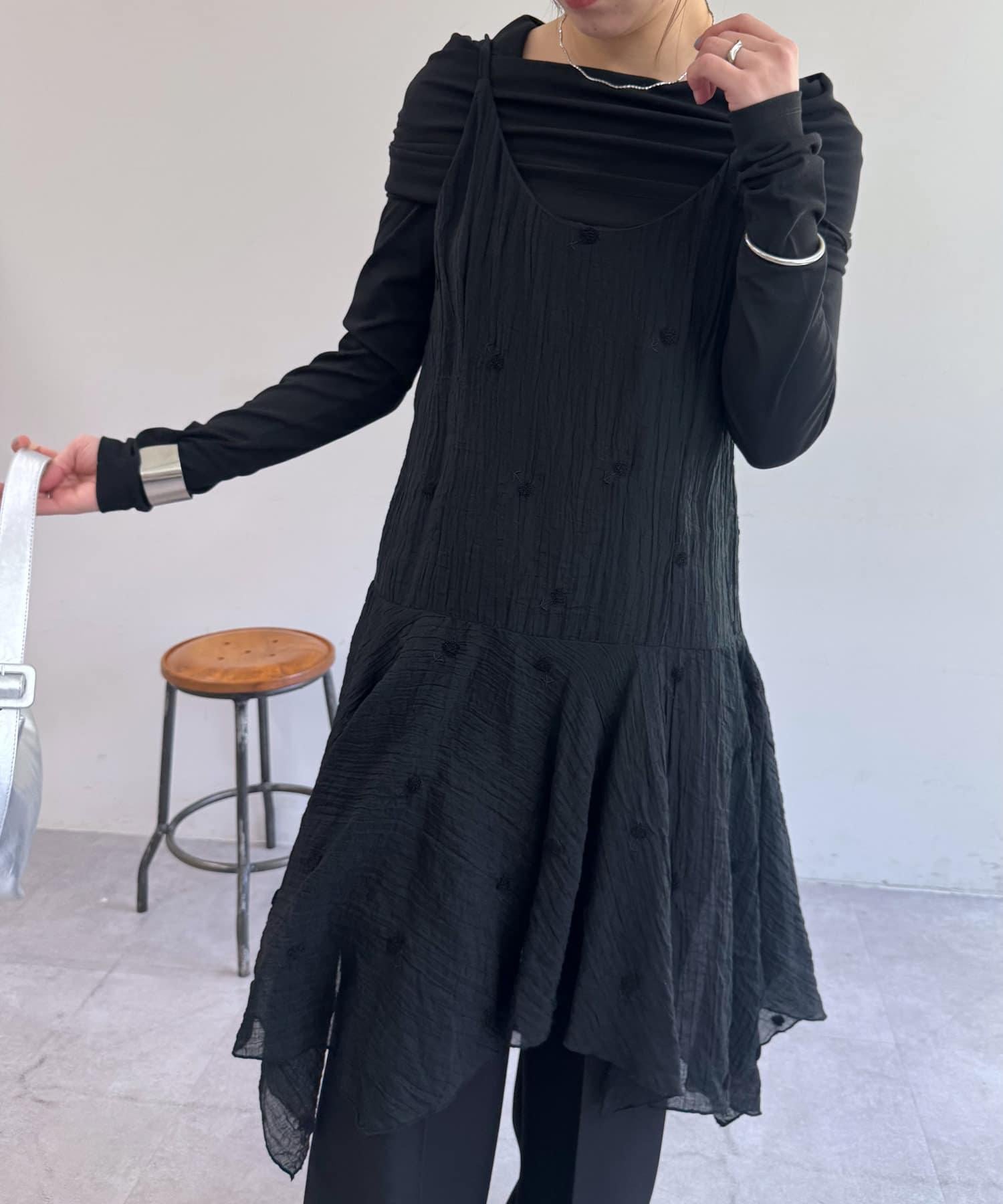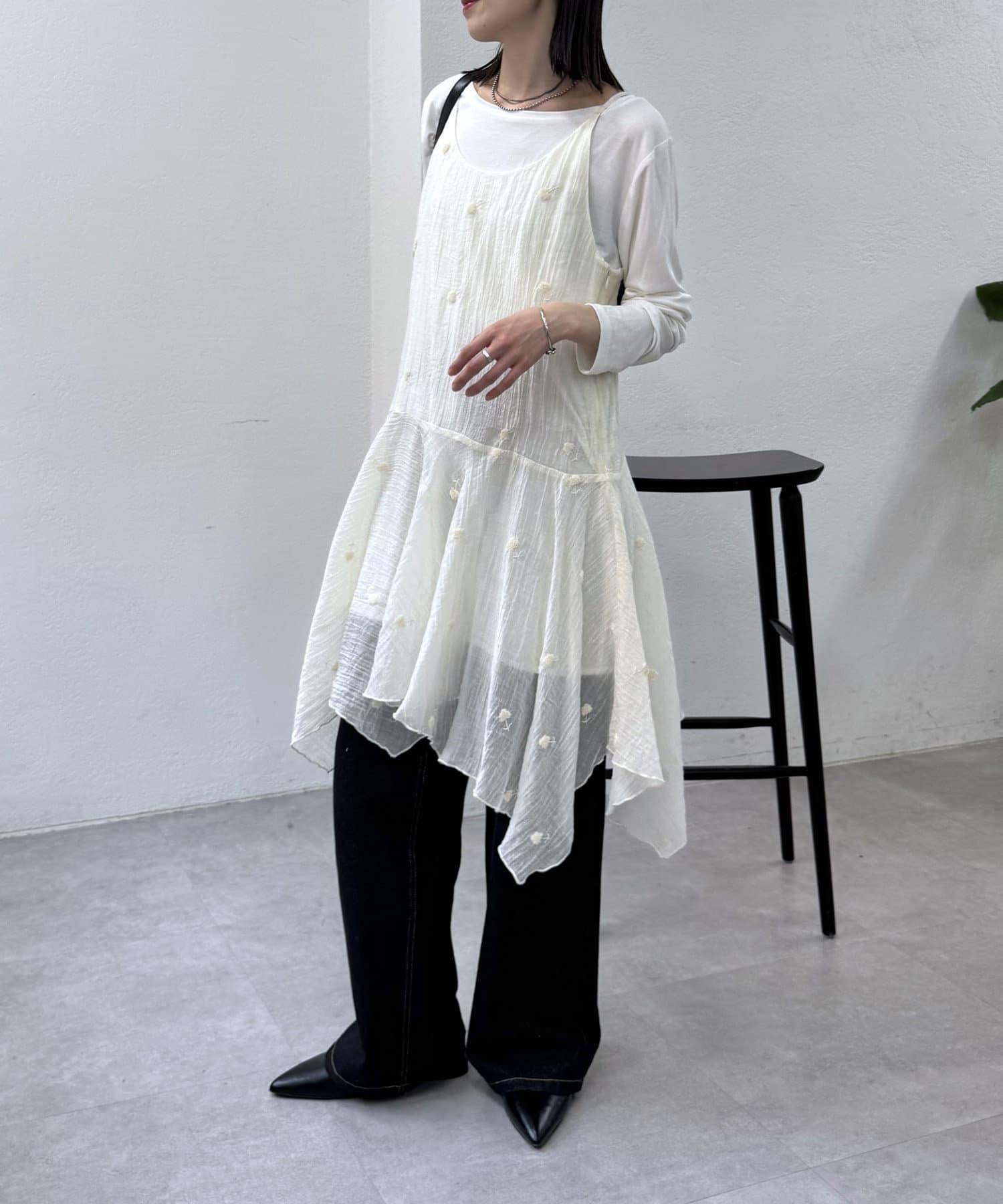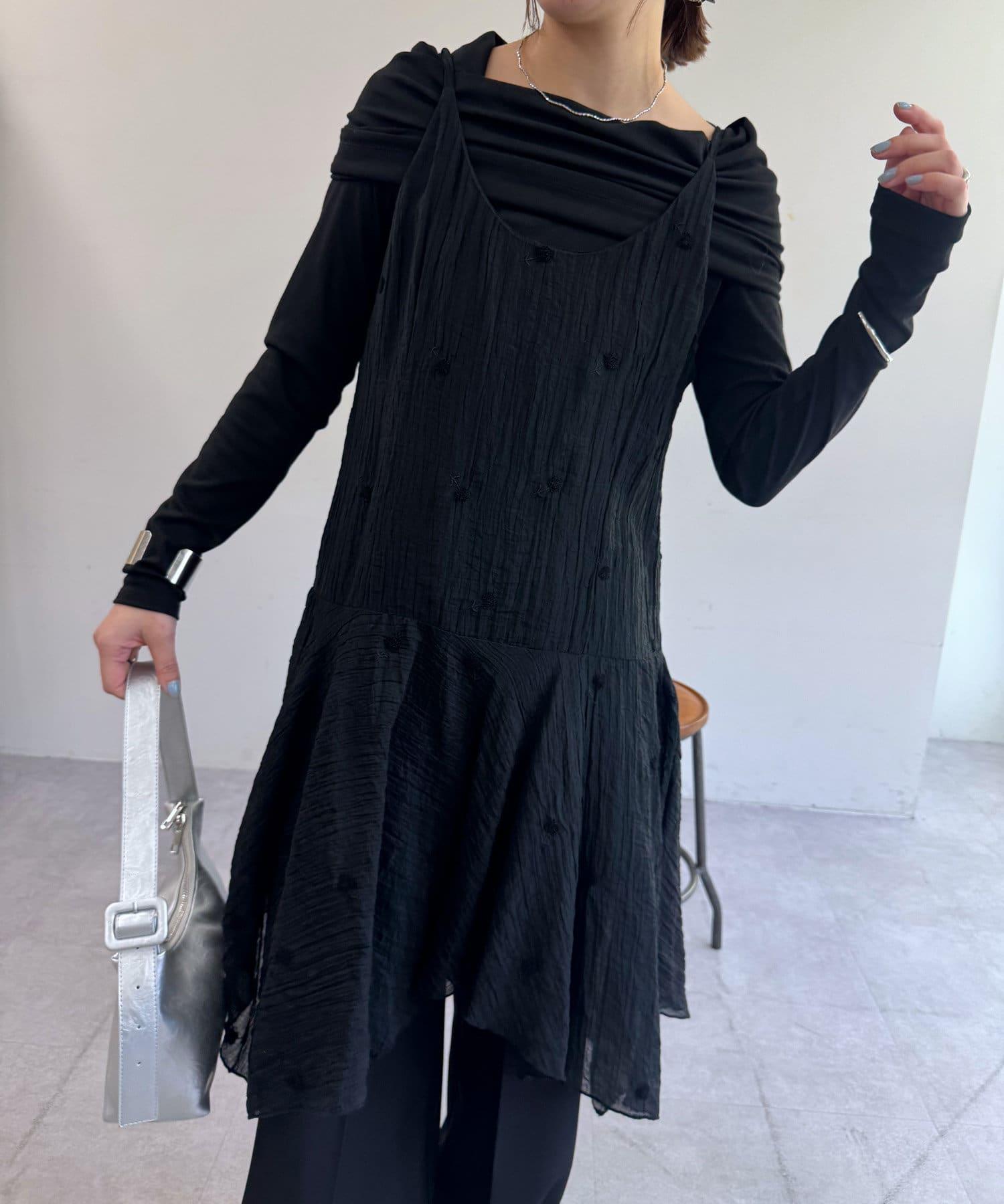 下襬的設計隨著行走而擺動,面料的透明感讓它看起來更加少女。