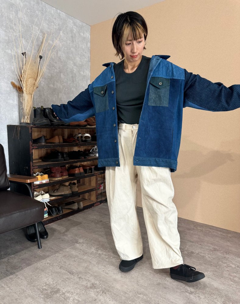 款式170cm[三河棉縫織,不同染色花紋和密度的 組合] 我們將只有UZUiRO才能製作的多種花紋的縫織面料組合在一起♪而且,通過對每個部分進行單獨染色,設計出對比度良好的面料!
