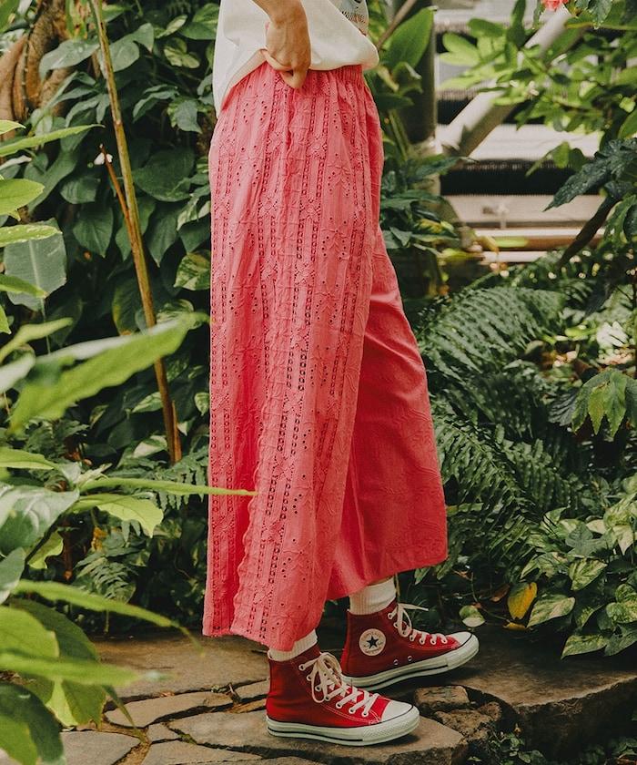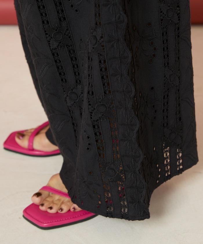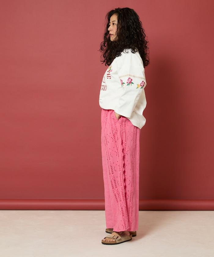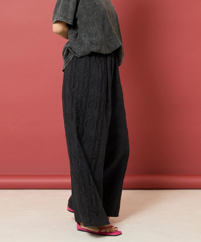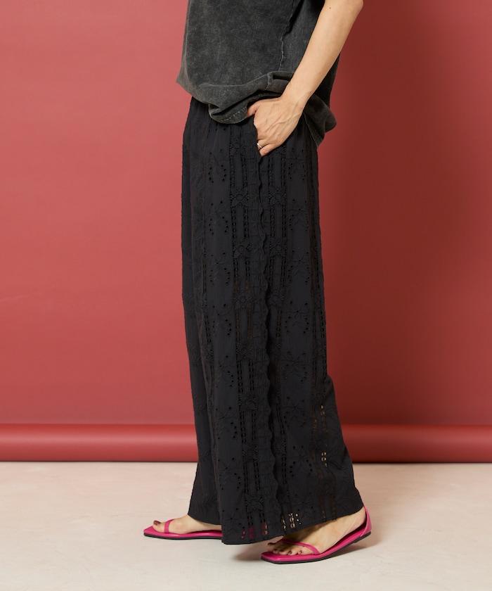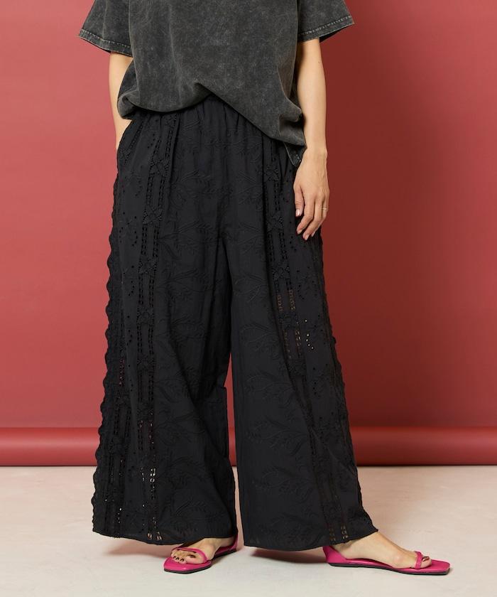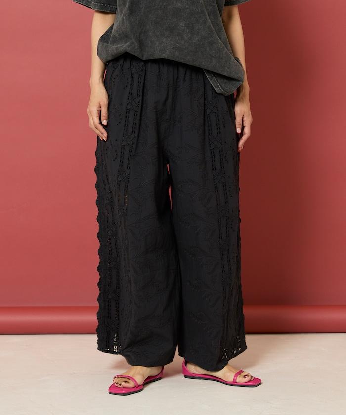 刺繡蕾絲寬鬆褲