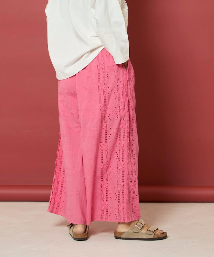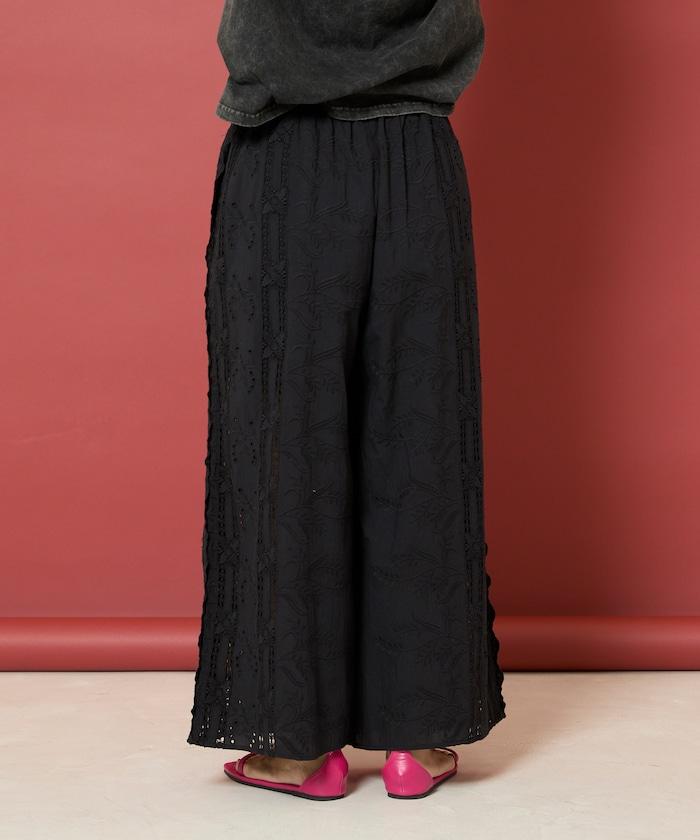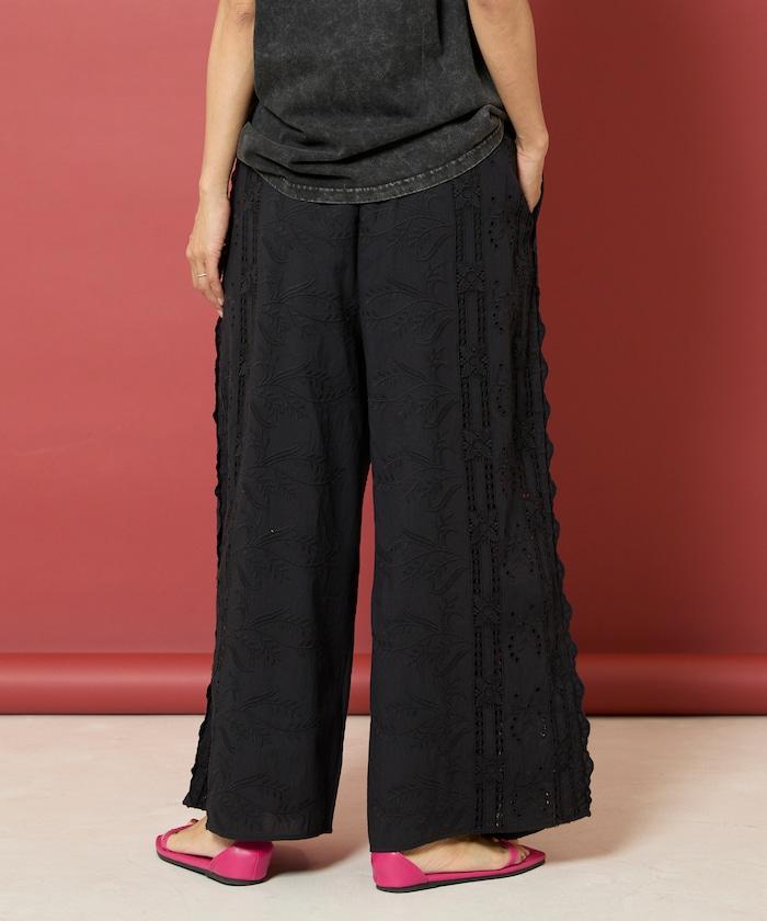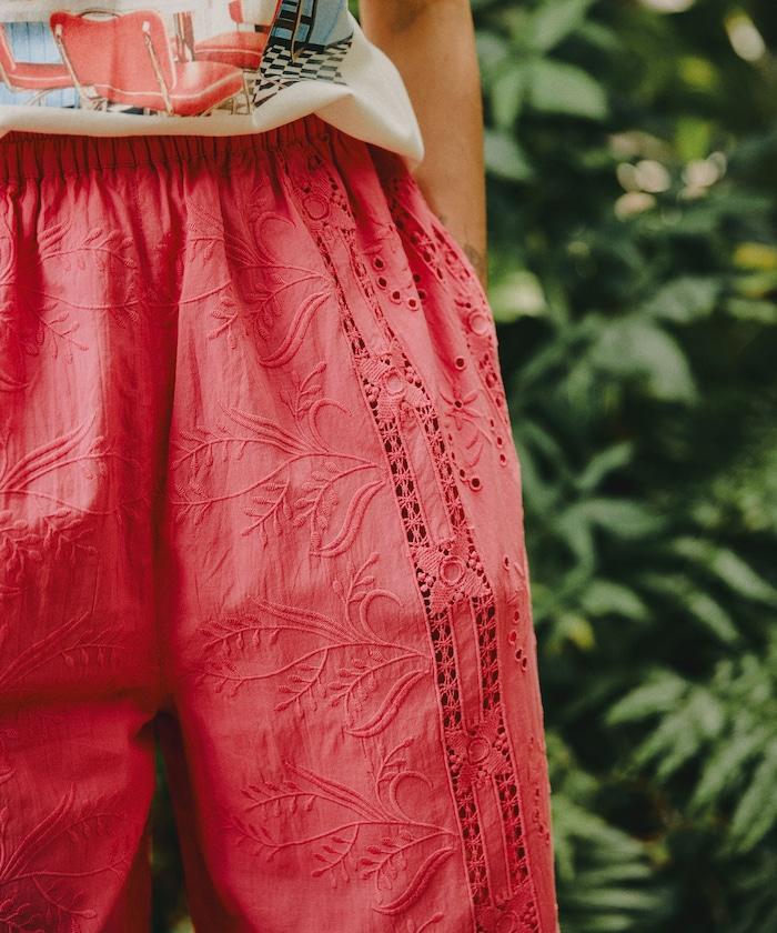 帶有印度鏤空刺繡的寬鬆長褲。