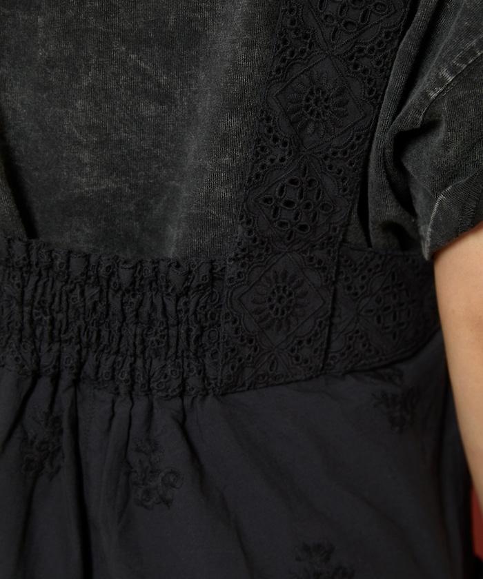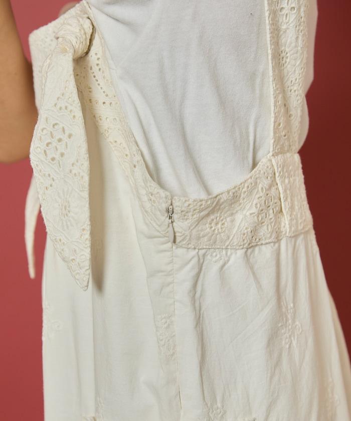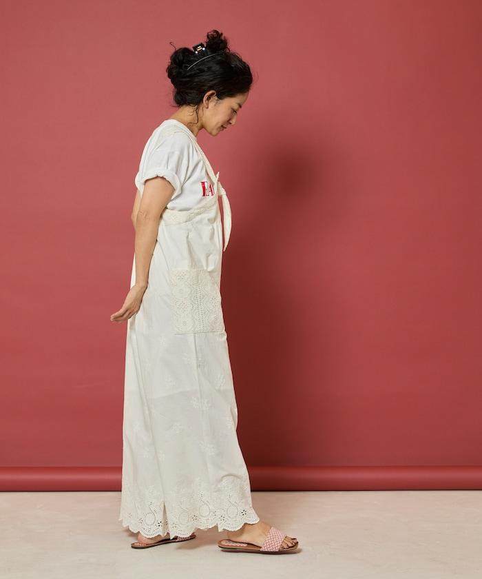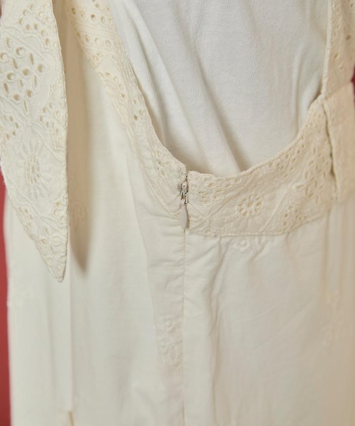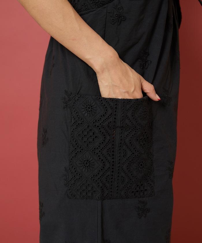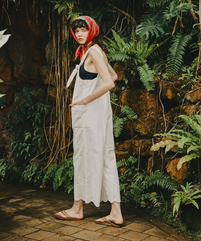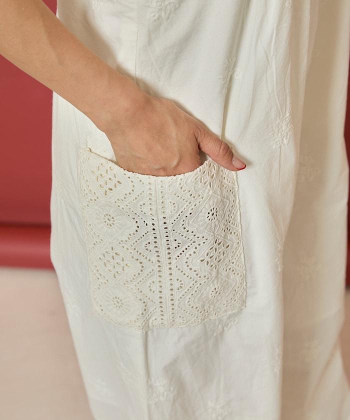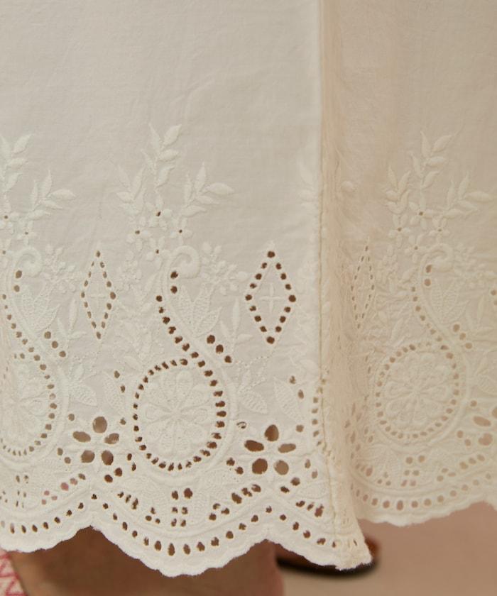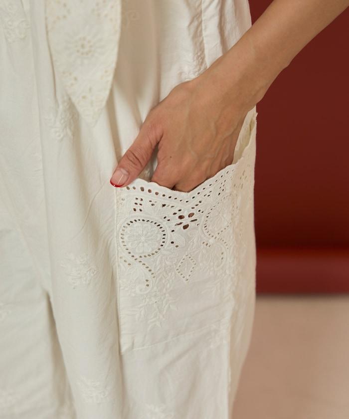 這款充滿夏日氣息的連身裙採用印度 Shifley 刺繡面料製成,融合了兩種不同的刺繡面料。