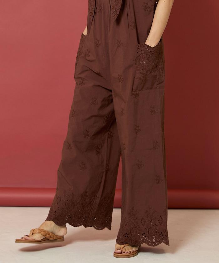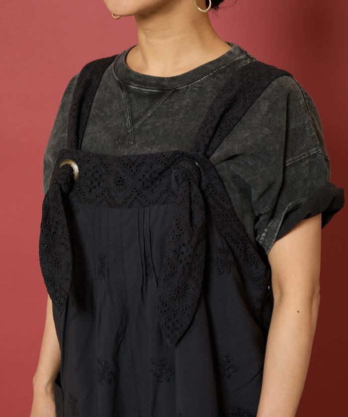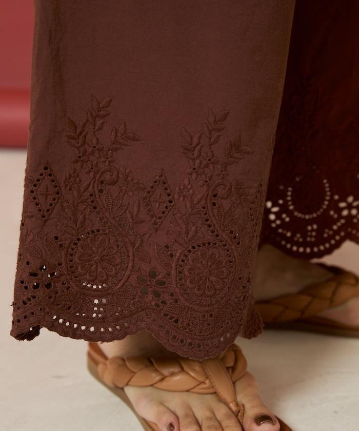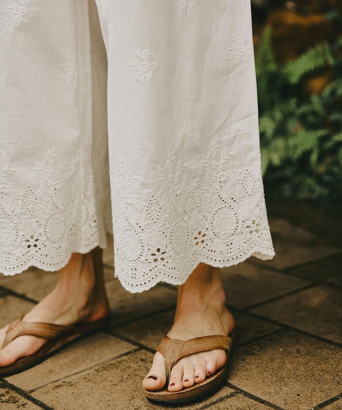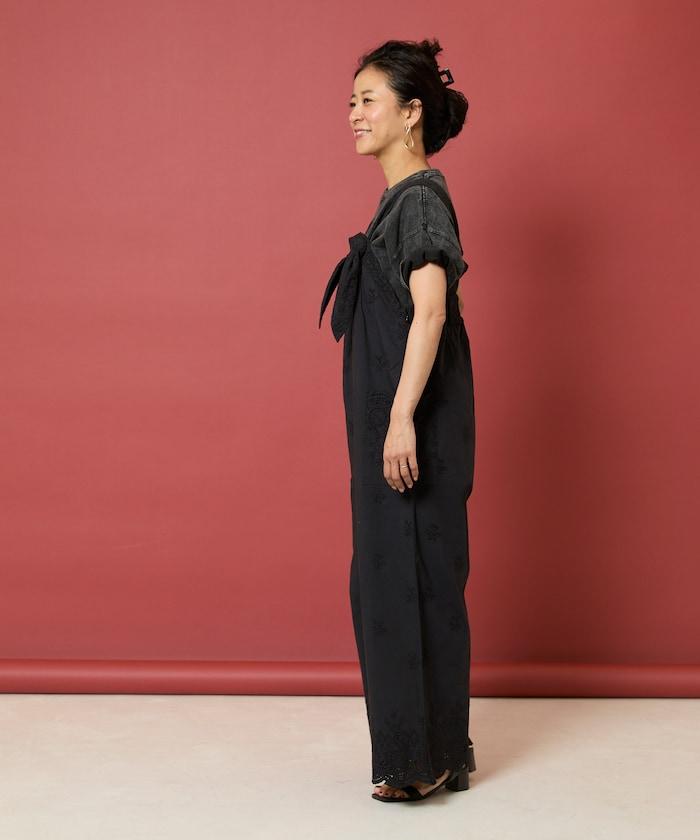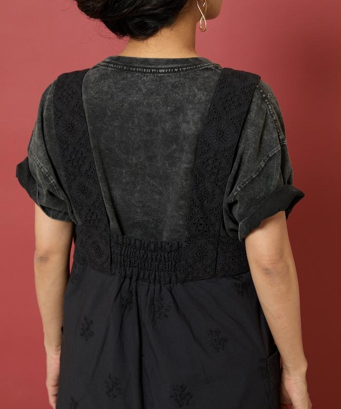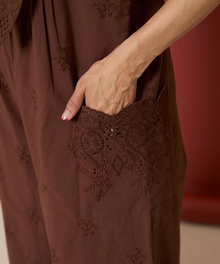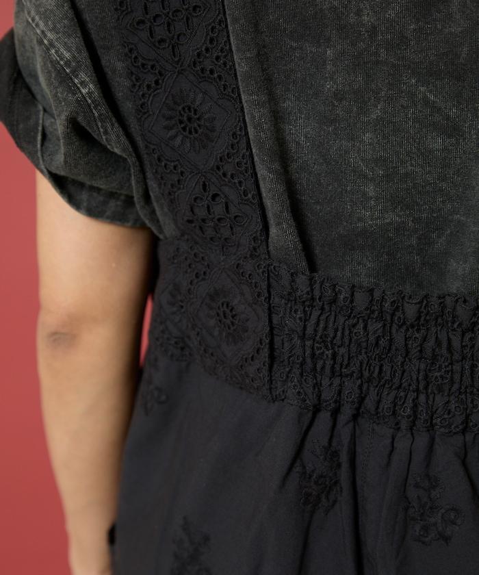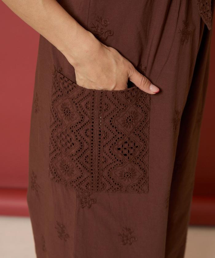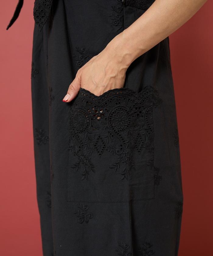 這款充滿夏日氣息的連身裙採用印度 Shifley 刺繡面料製成,融合了兩種不同的刺繡面料。