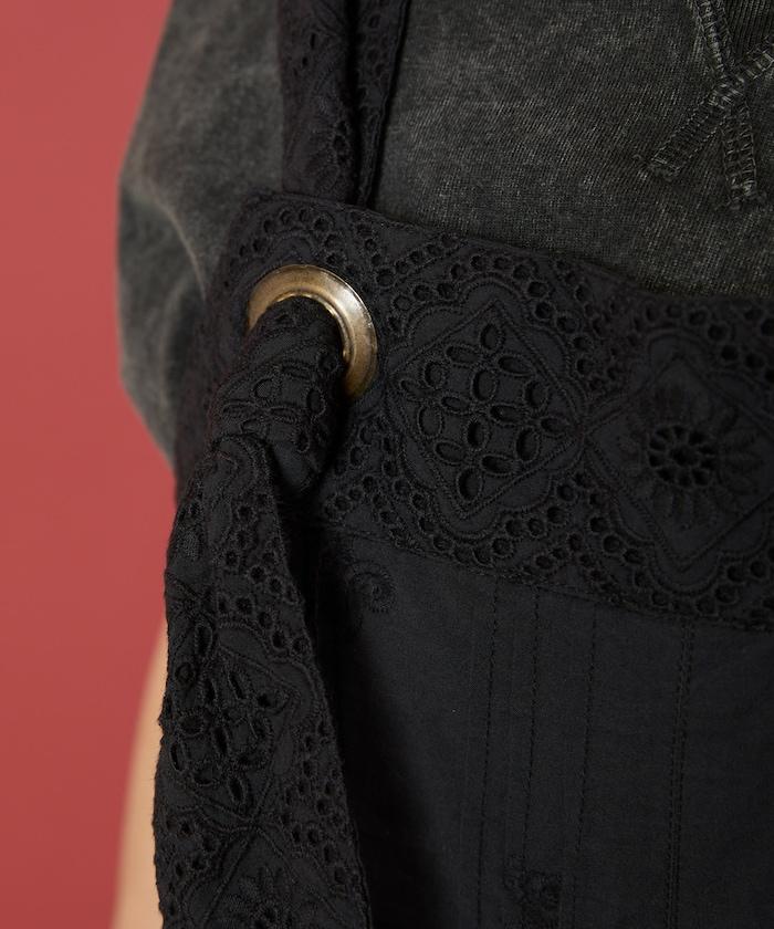 左右兩側各有一個口袋。左右口袋採用了不同的刺繡面料,是一個巧妙可愛的設計點。