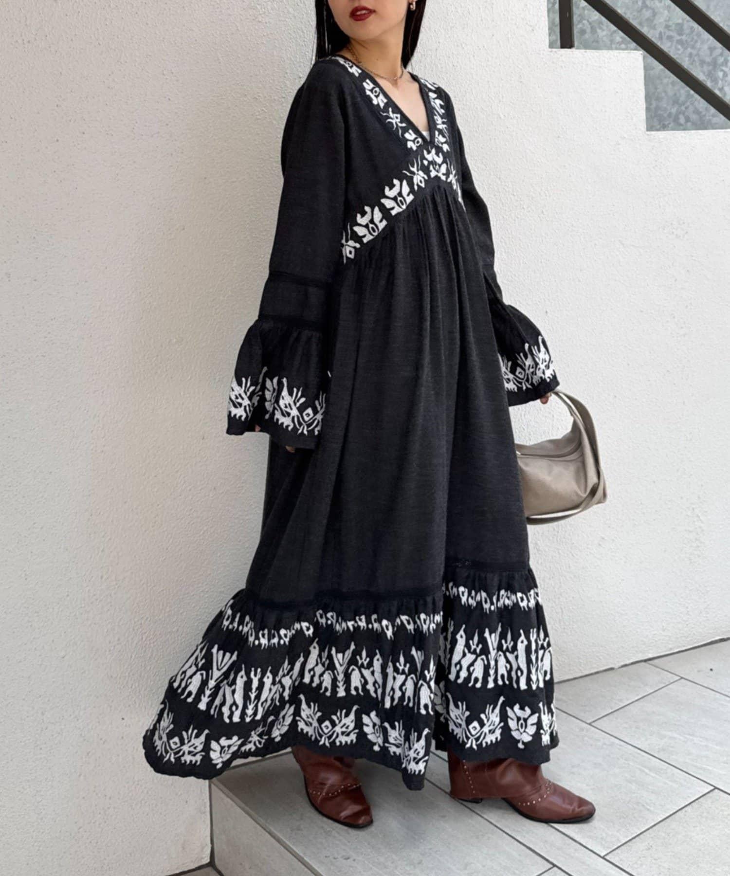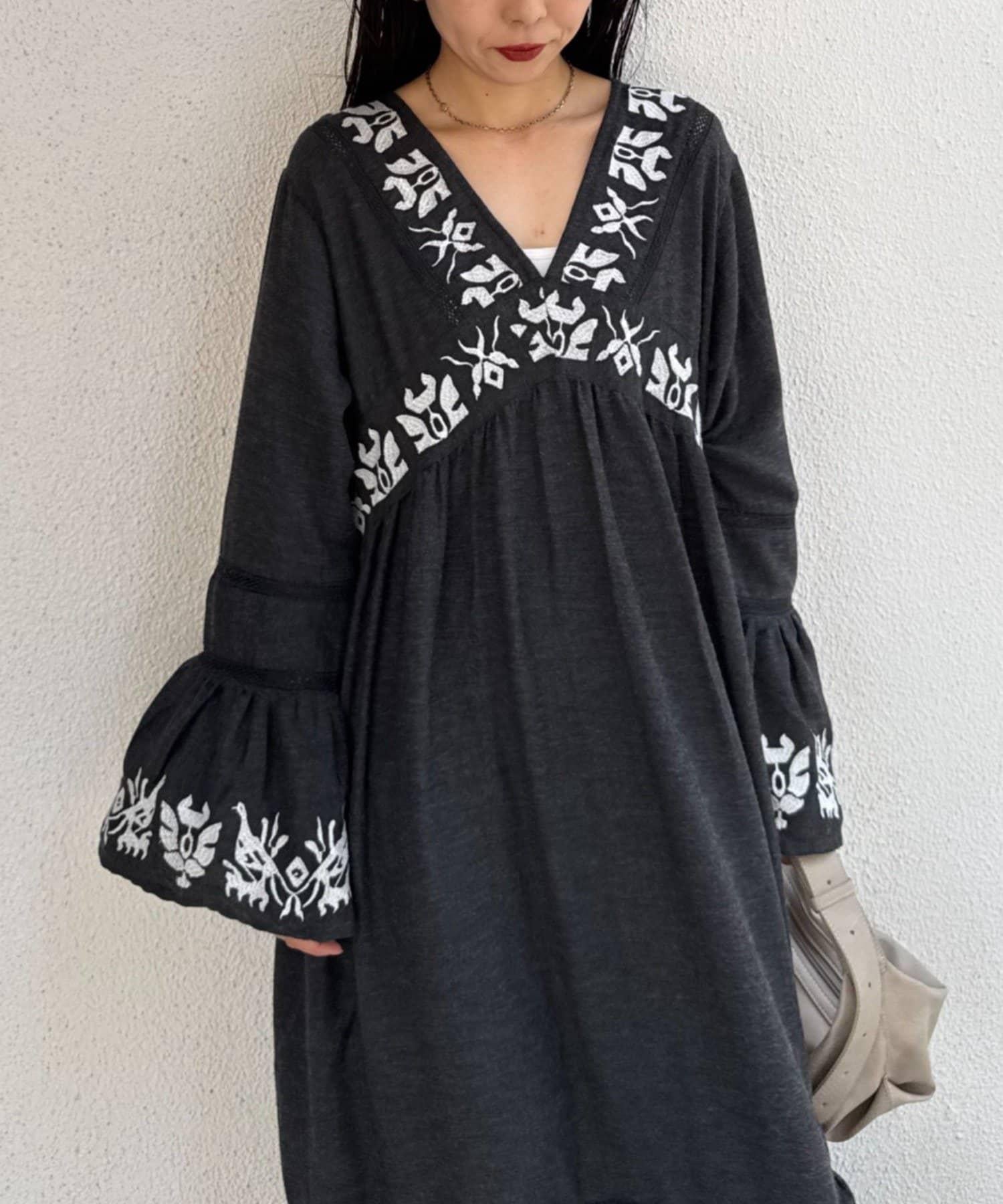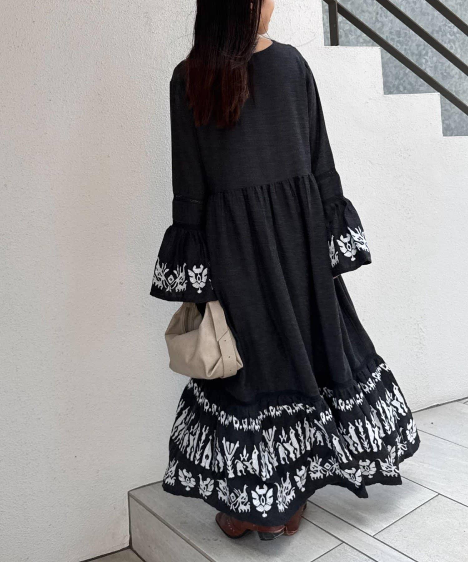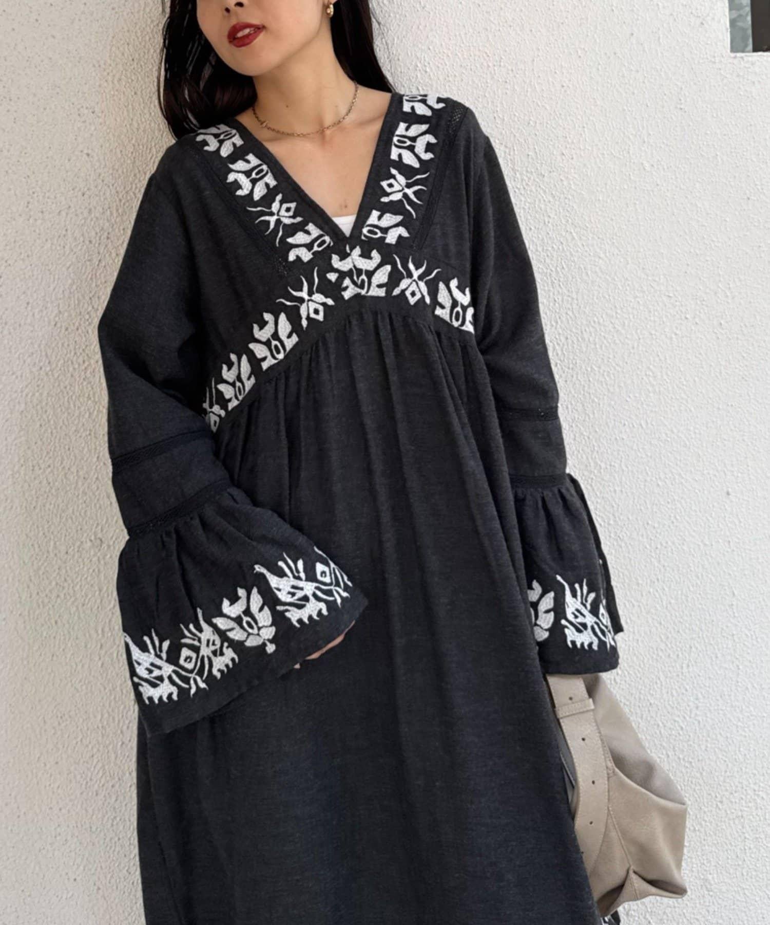 精緻的刺繡和喇叭袖給人華麗的印象,這款連衣裙具有出色的存在感。