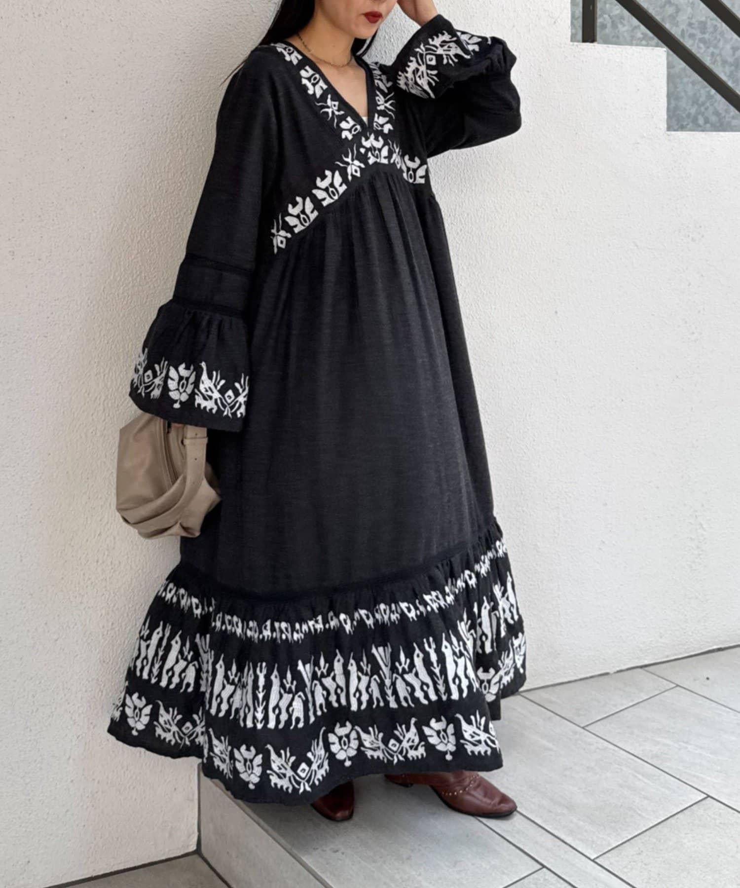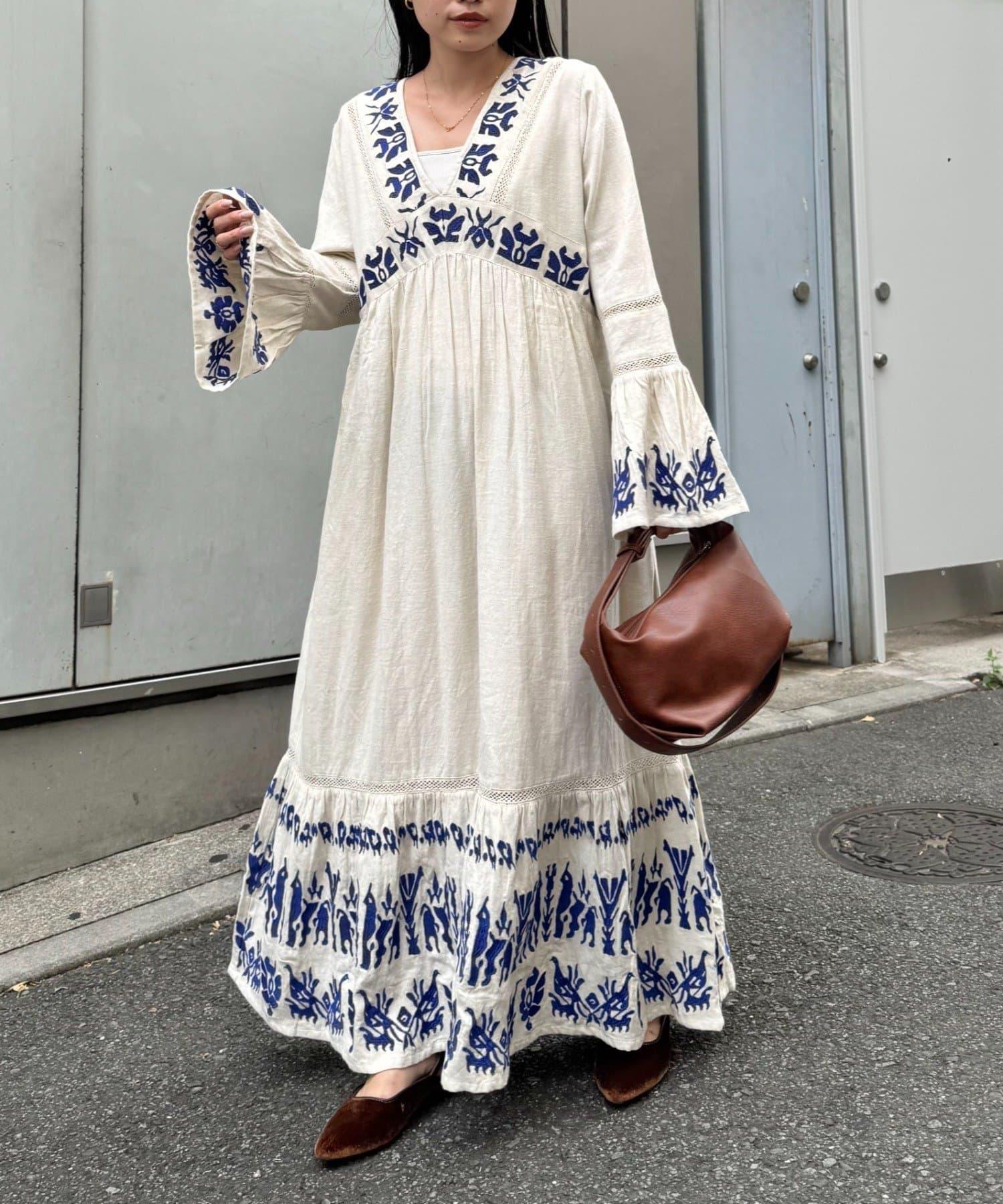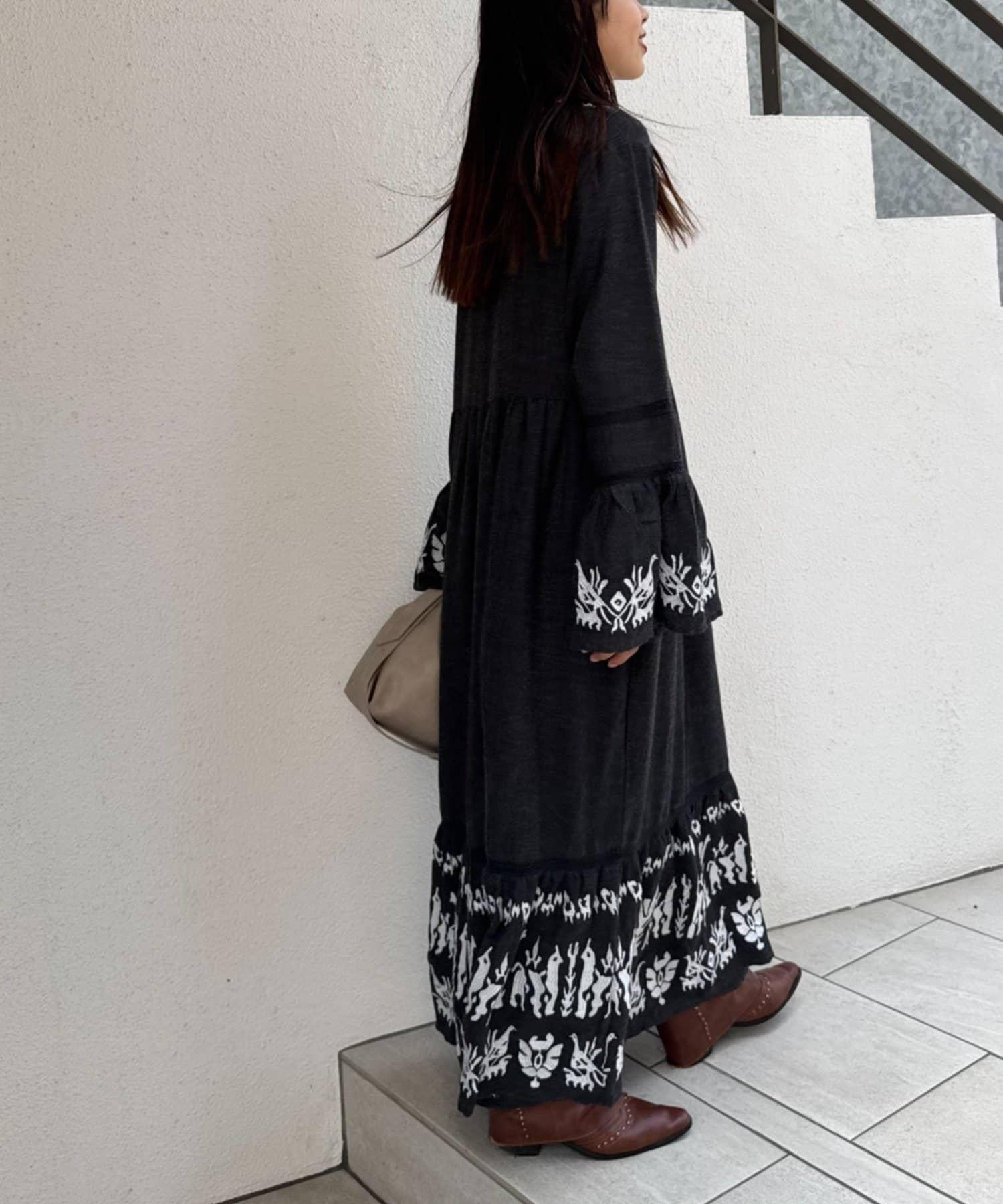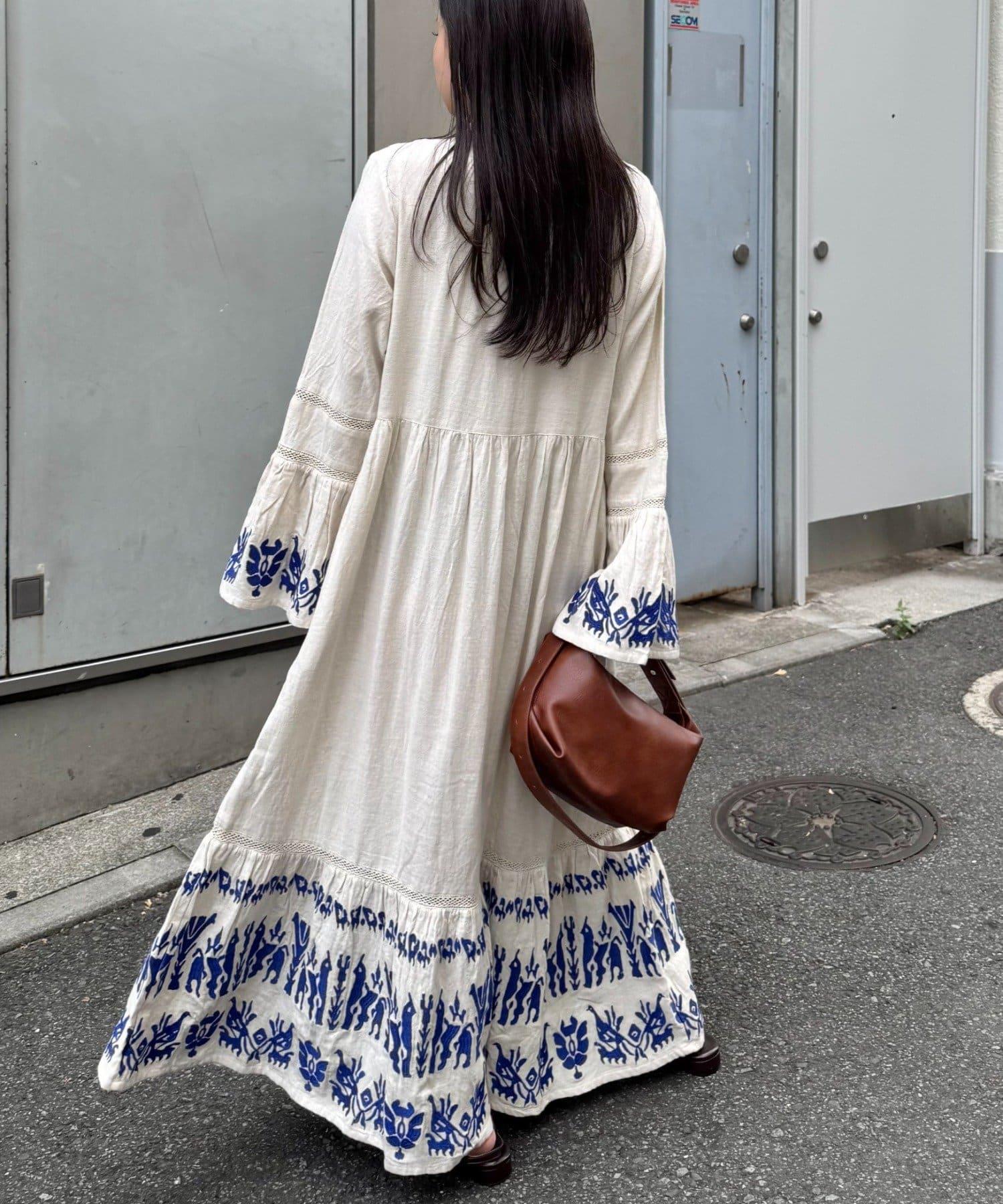 精緻的刺繡和喇叭袖給人華麗的印象,這款連衣裙具有出色的存在感。