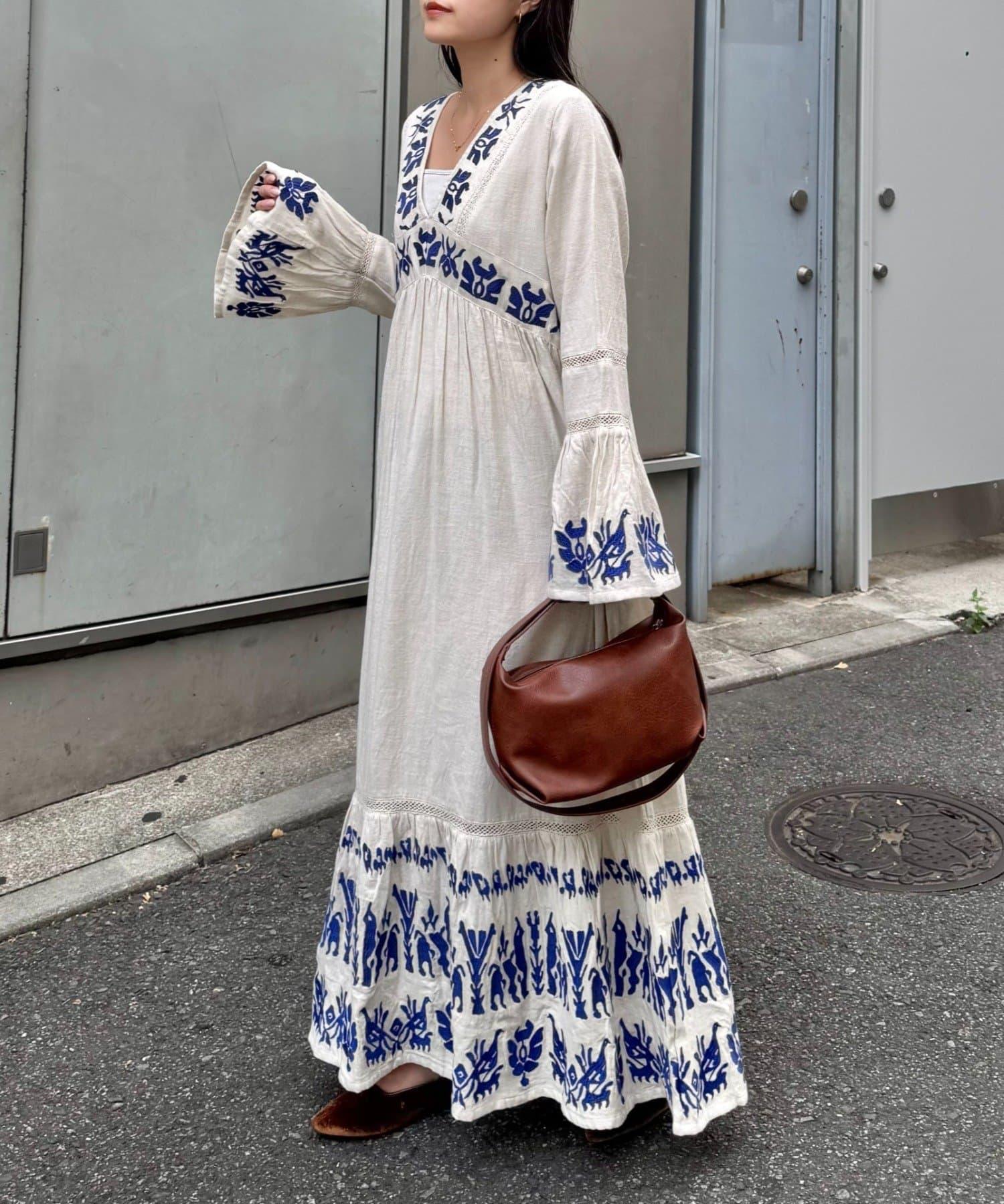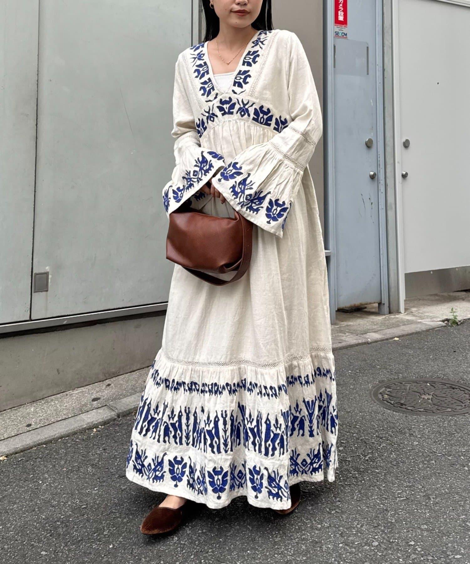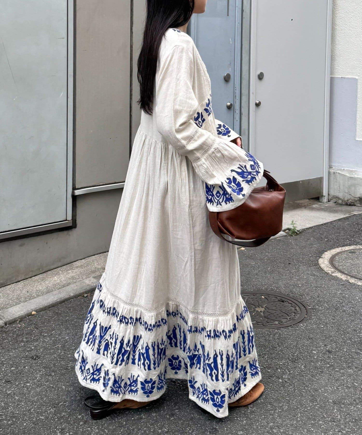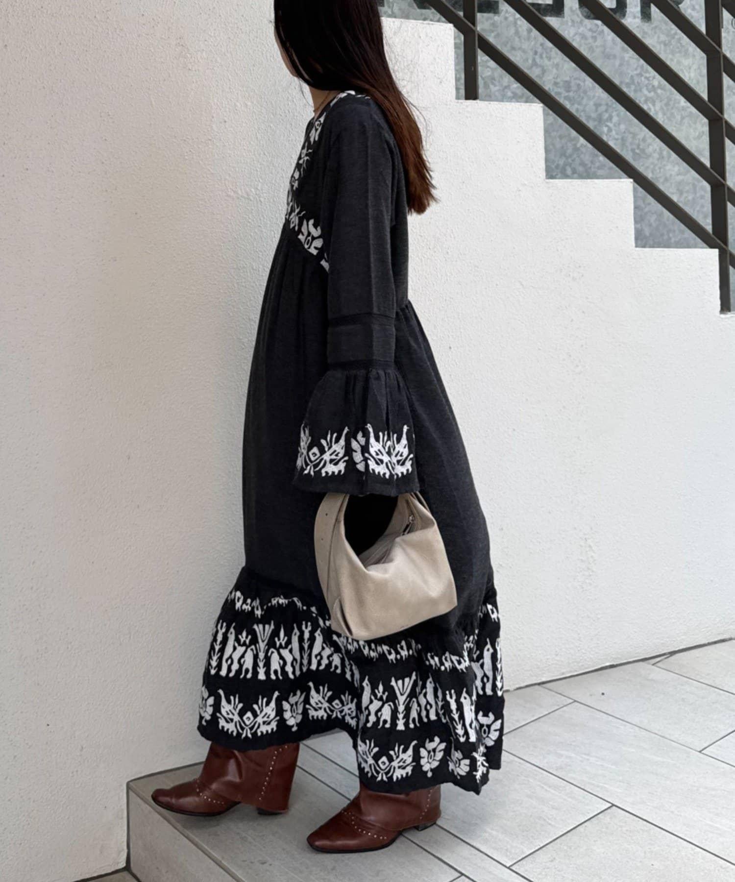 精緻的刺繡和喇叭袖給人華麗的印象,這款連衣裙具有出色的存在感。
