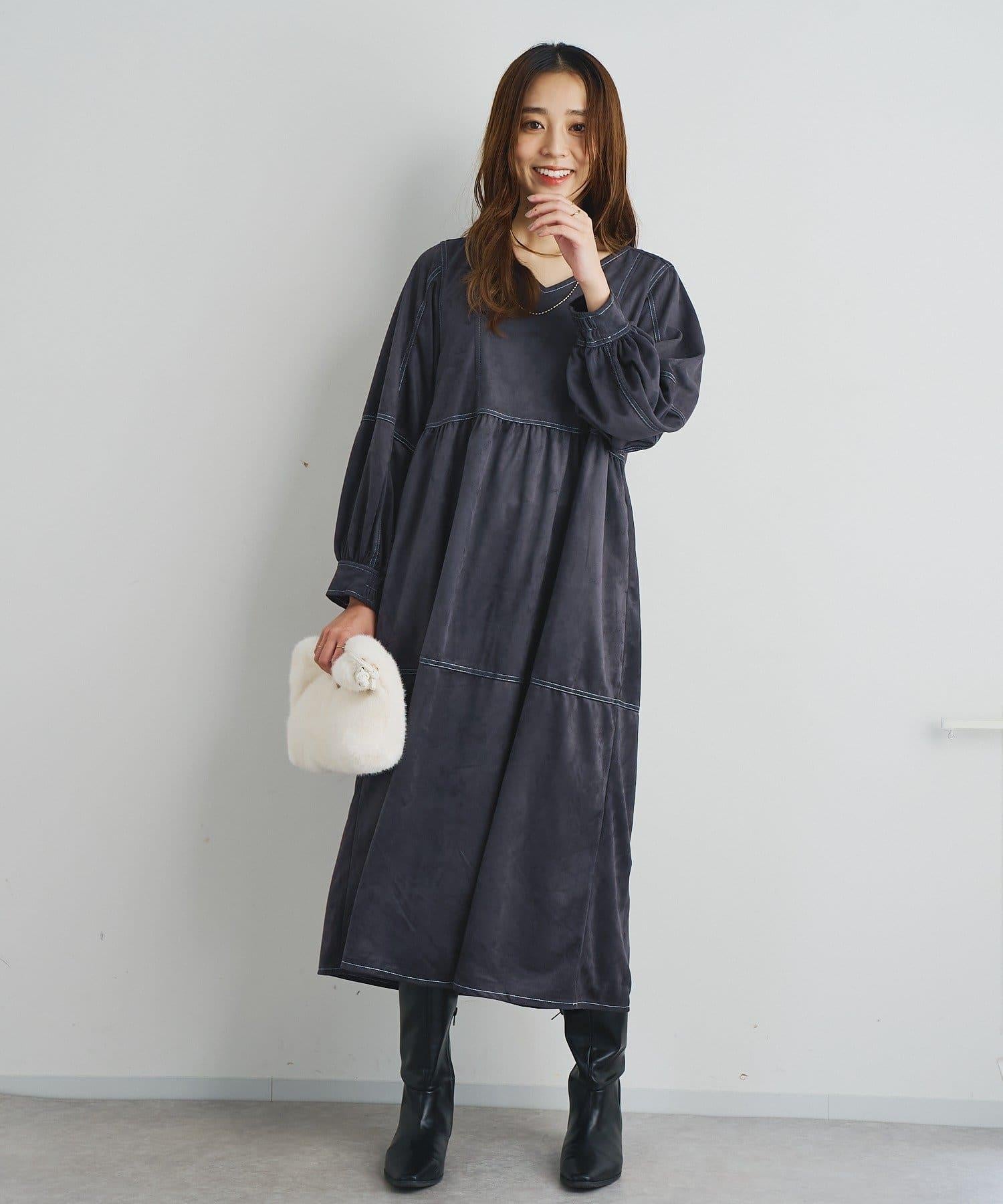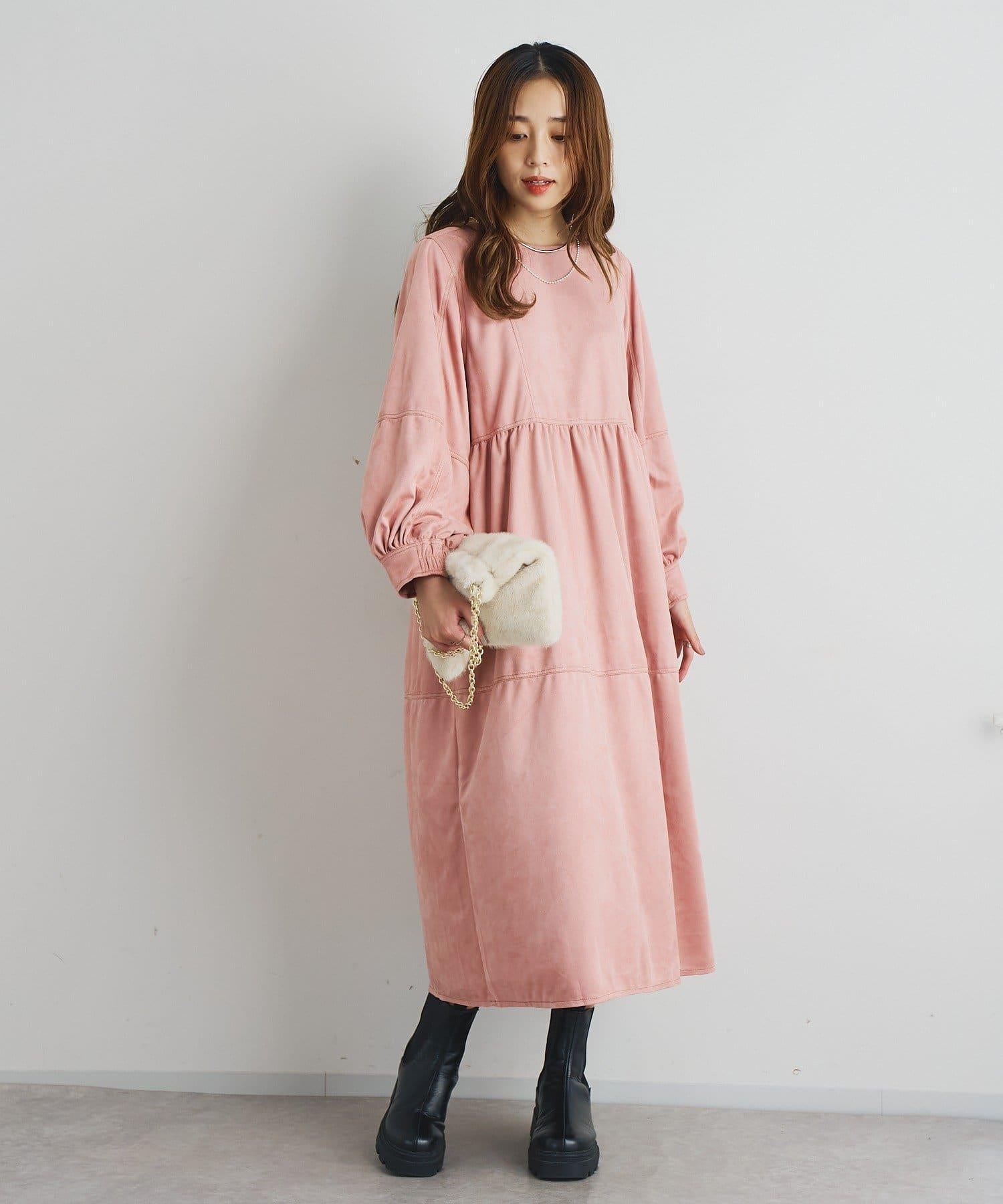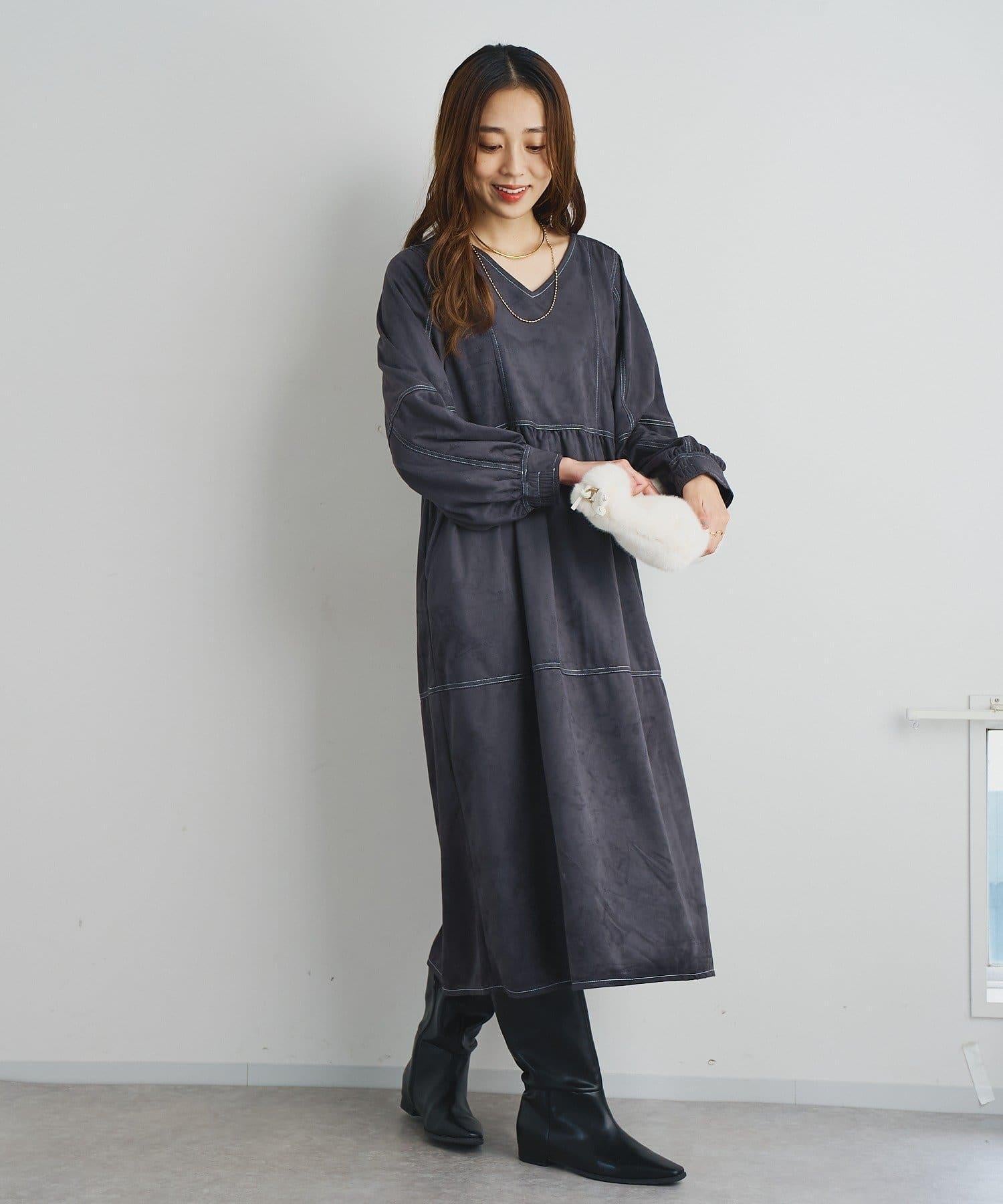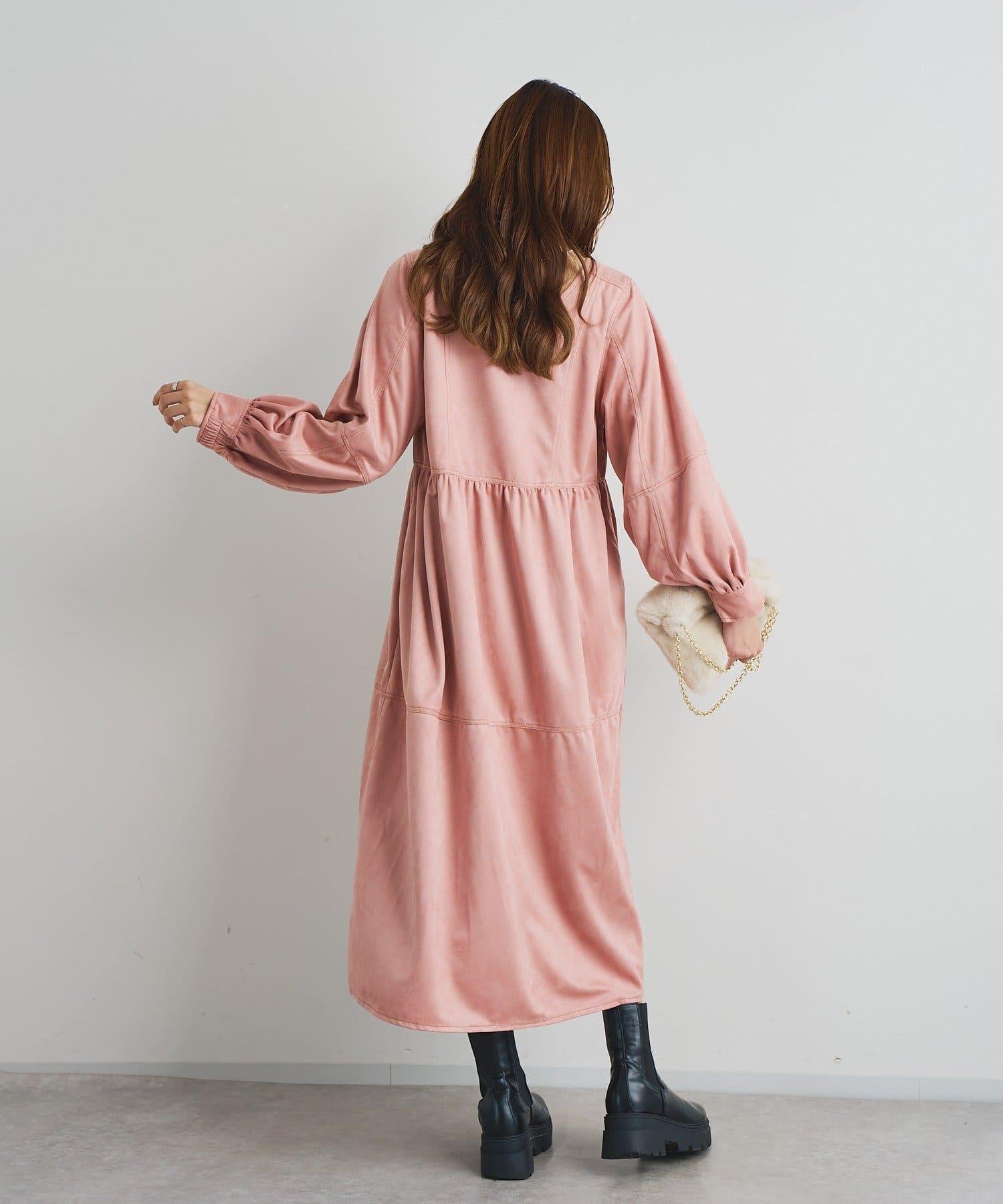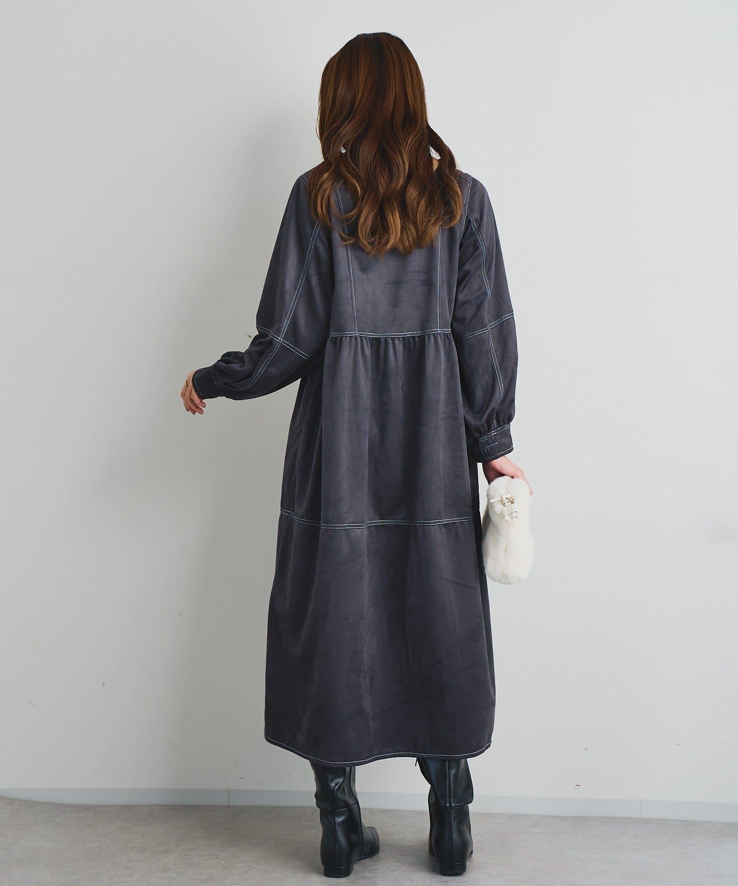 前後兩穿仿桃皮絨拼接連衣裙