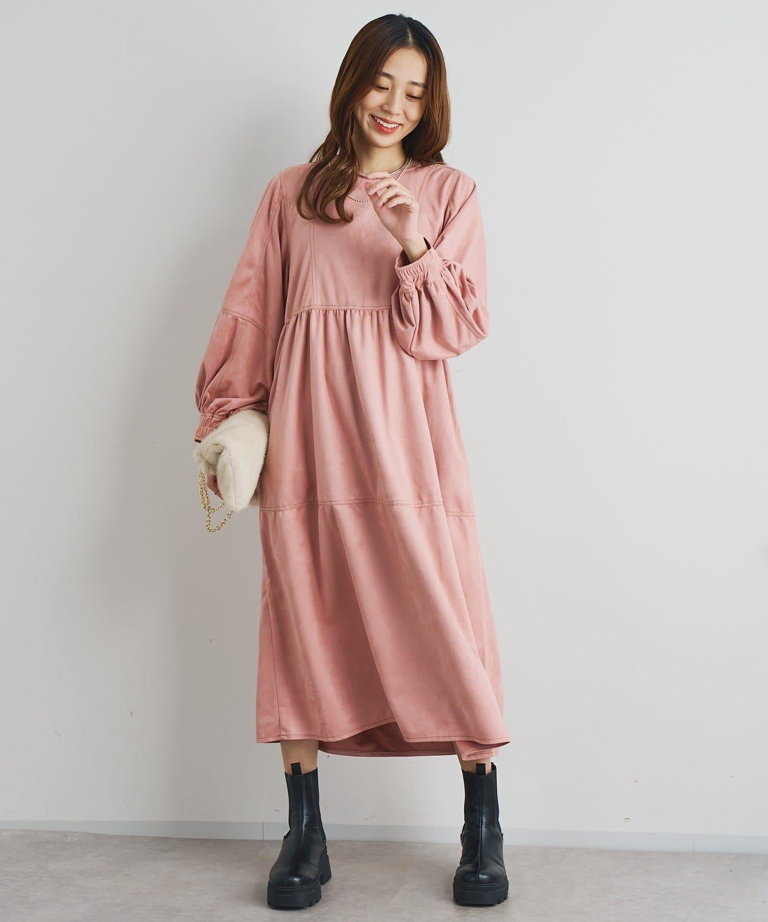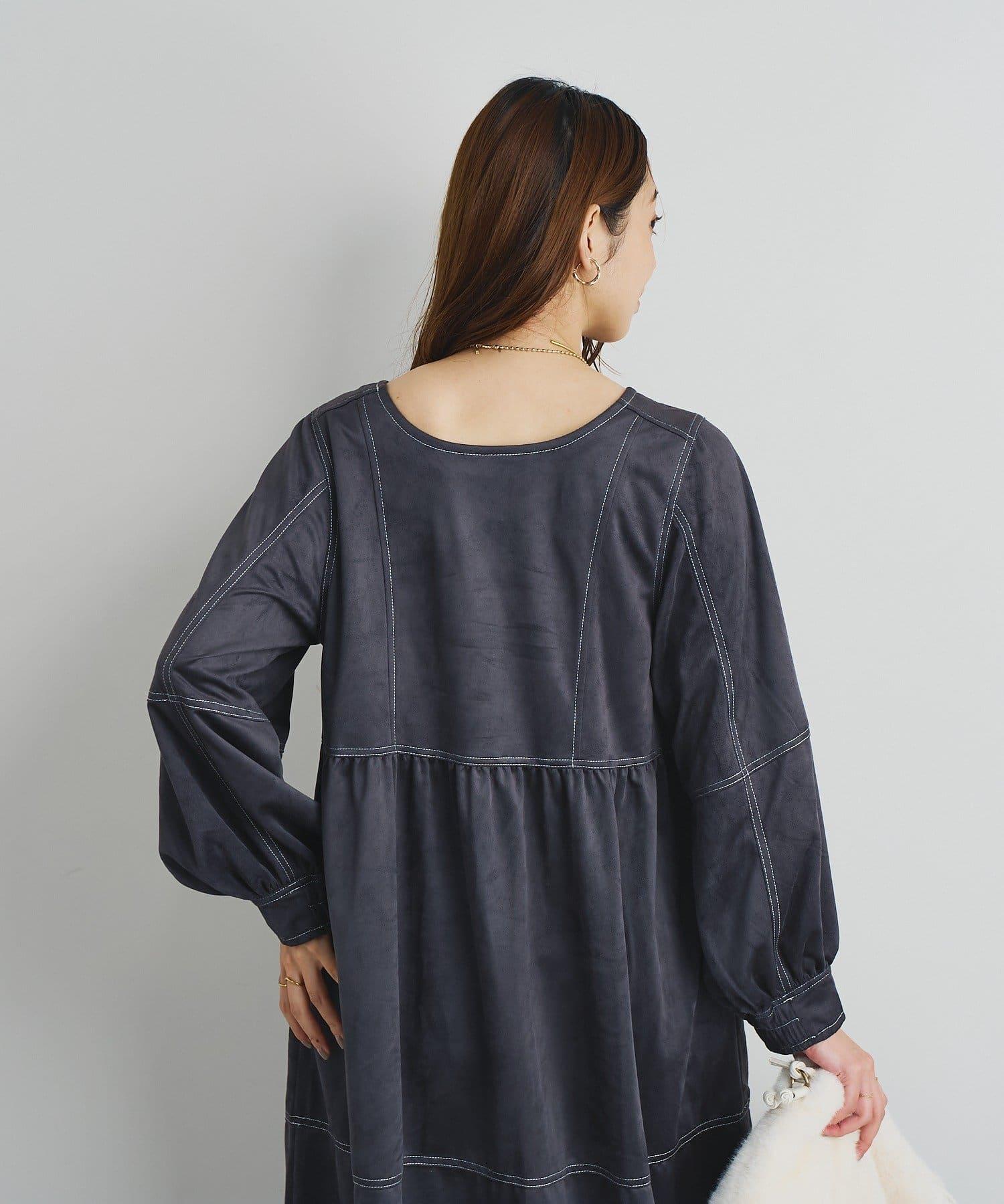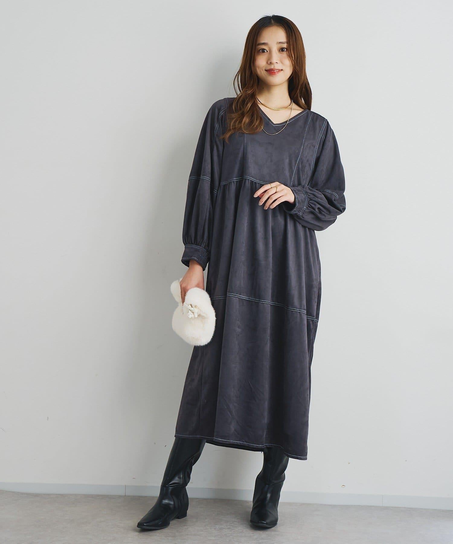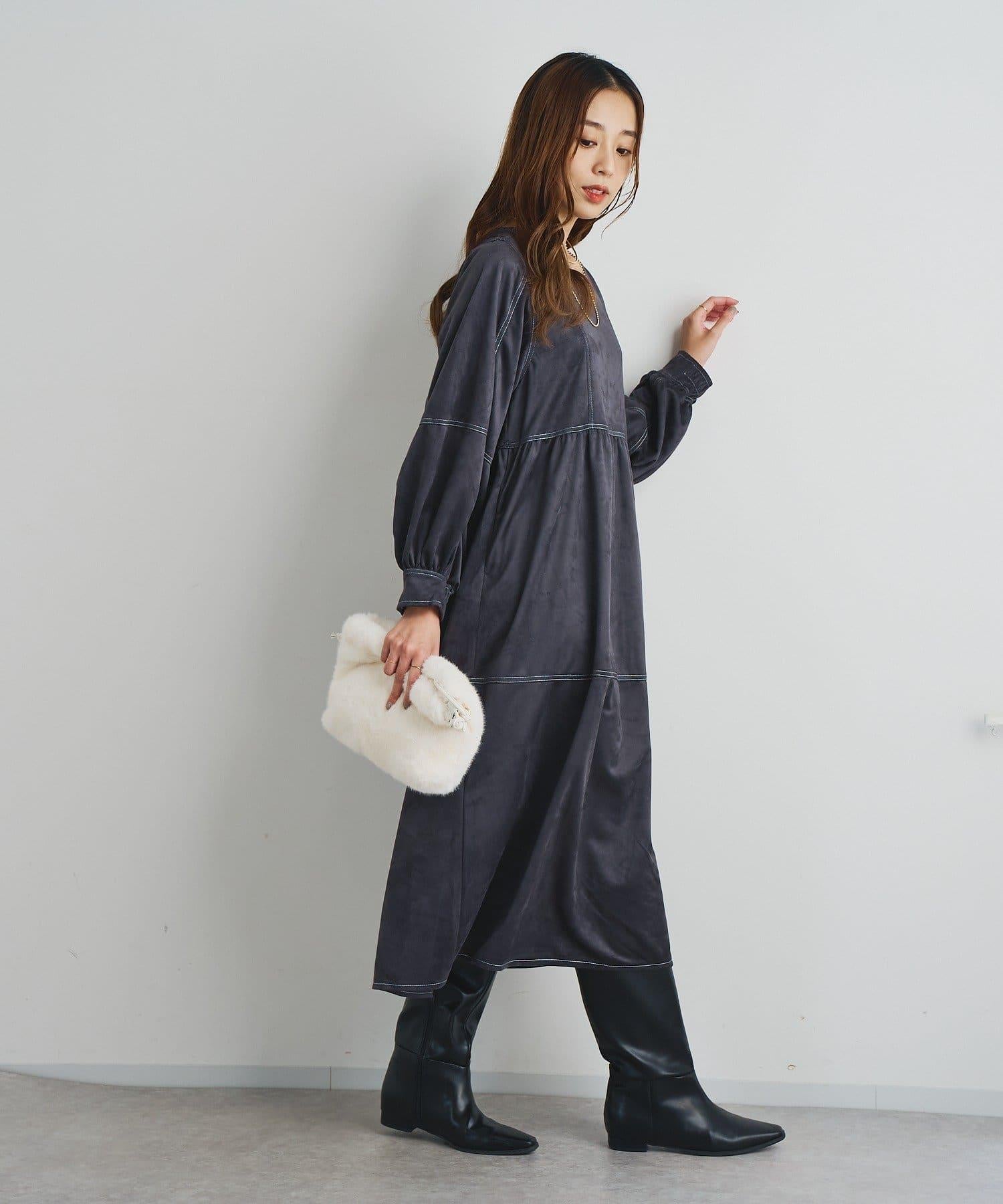 前後兩穿仿桃皮絨拼接連衣裙