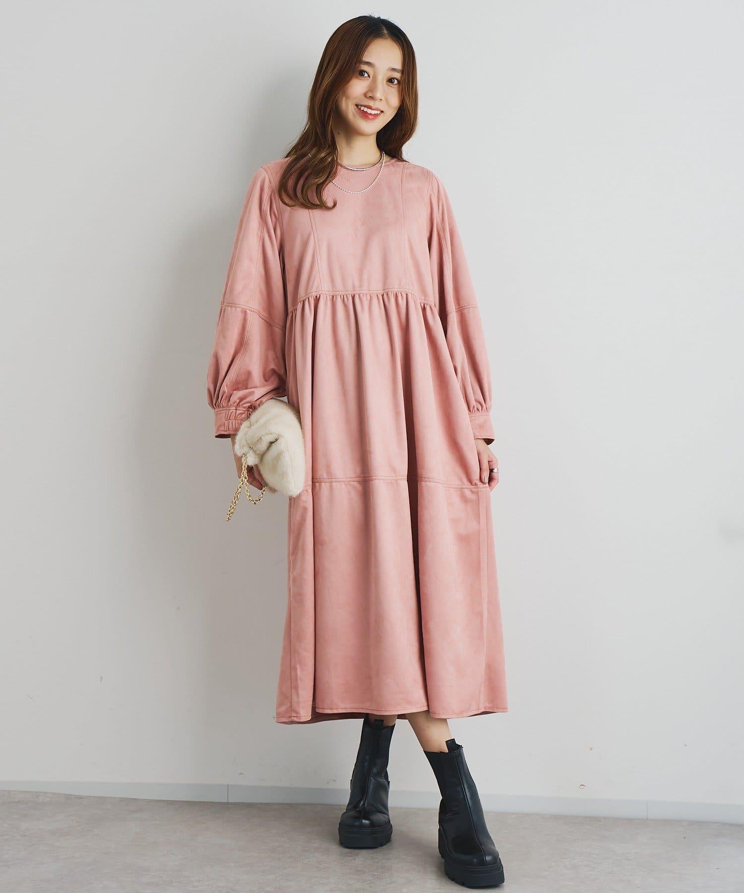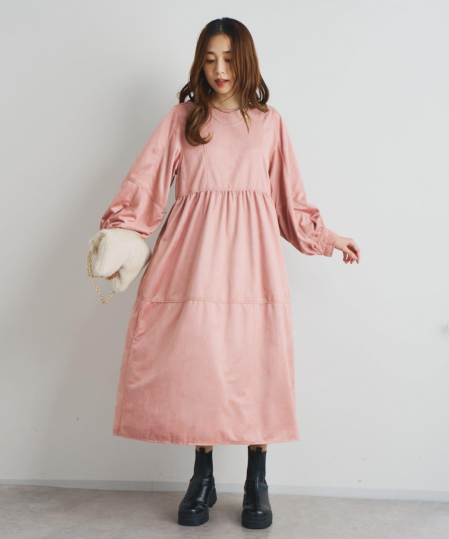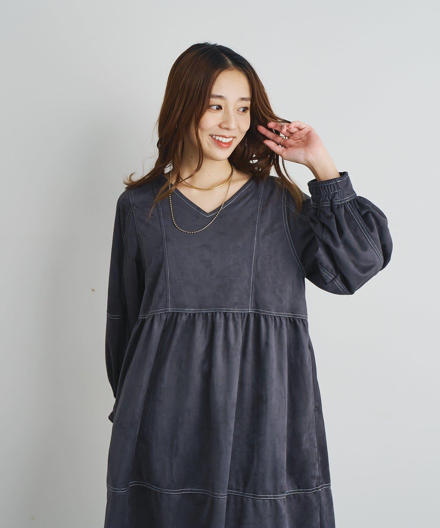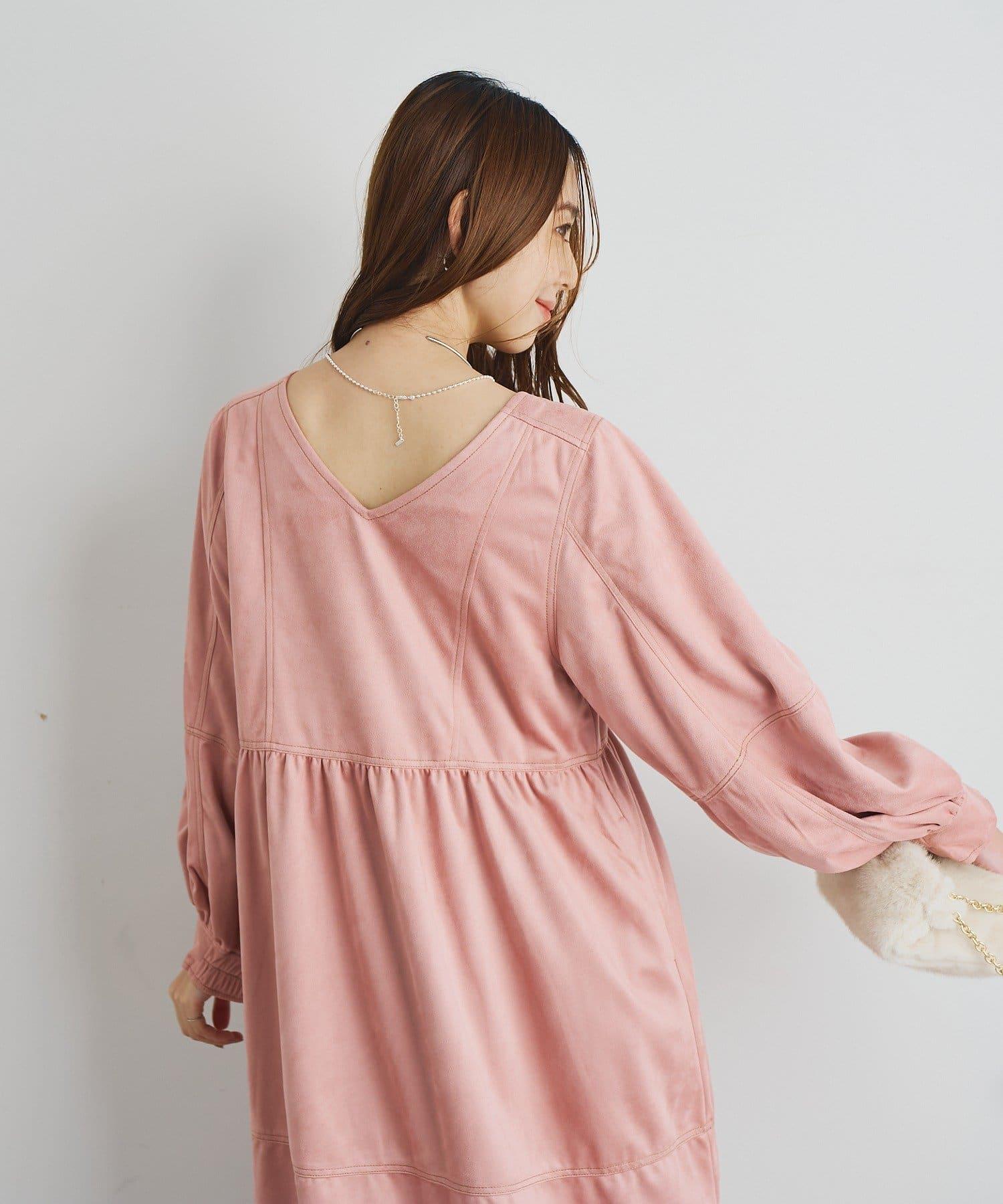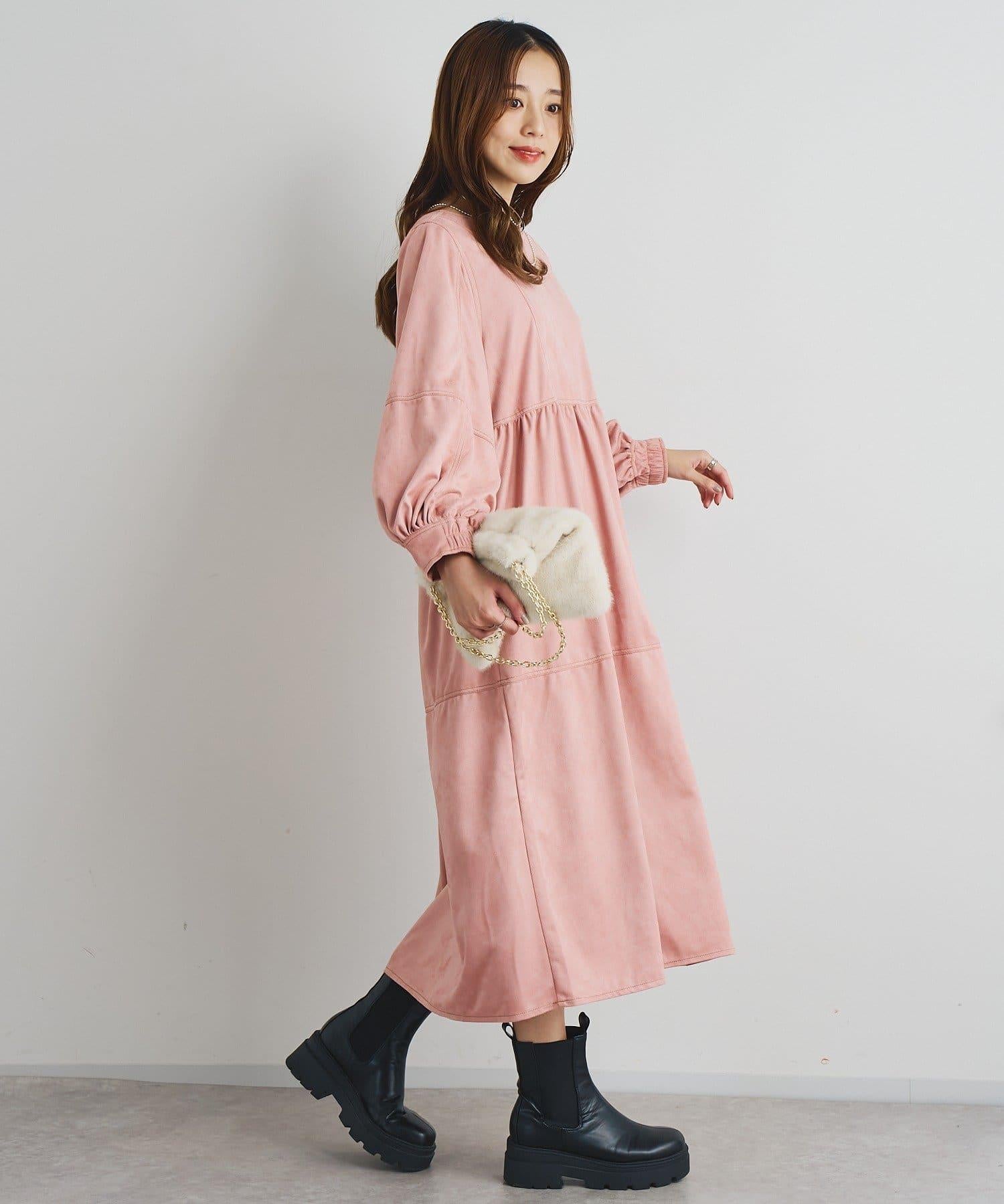 前後兩穿仿桃皮絨拼接連衣裙