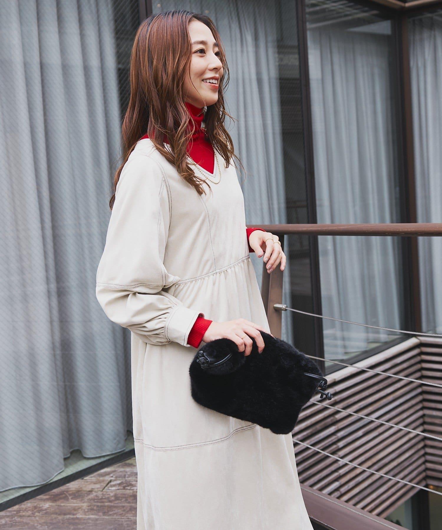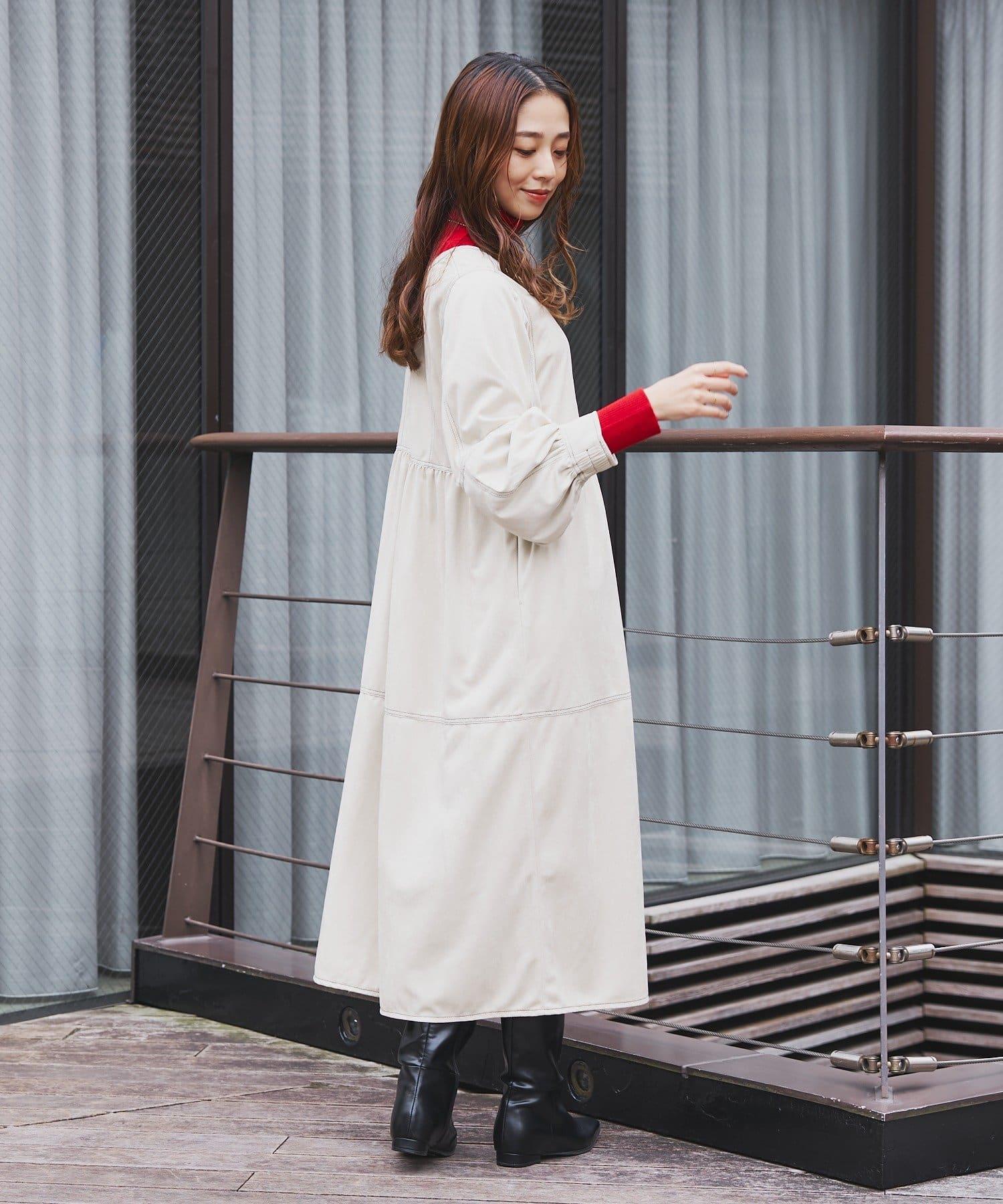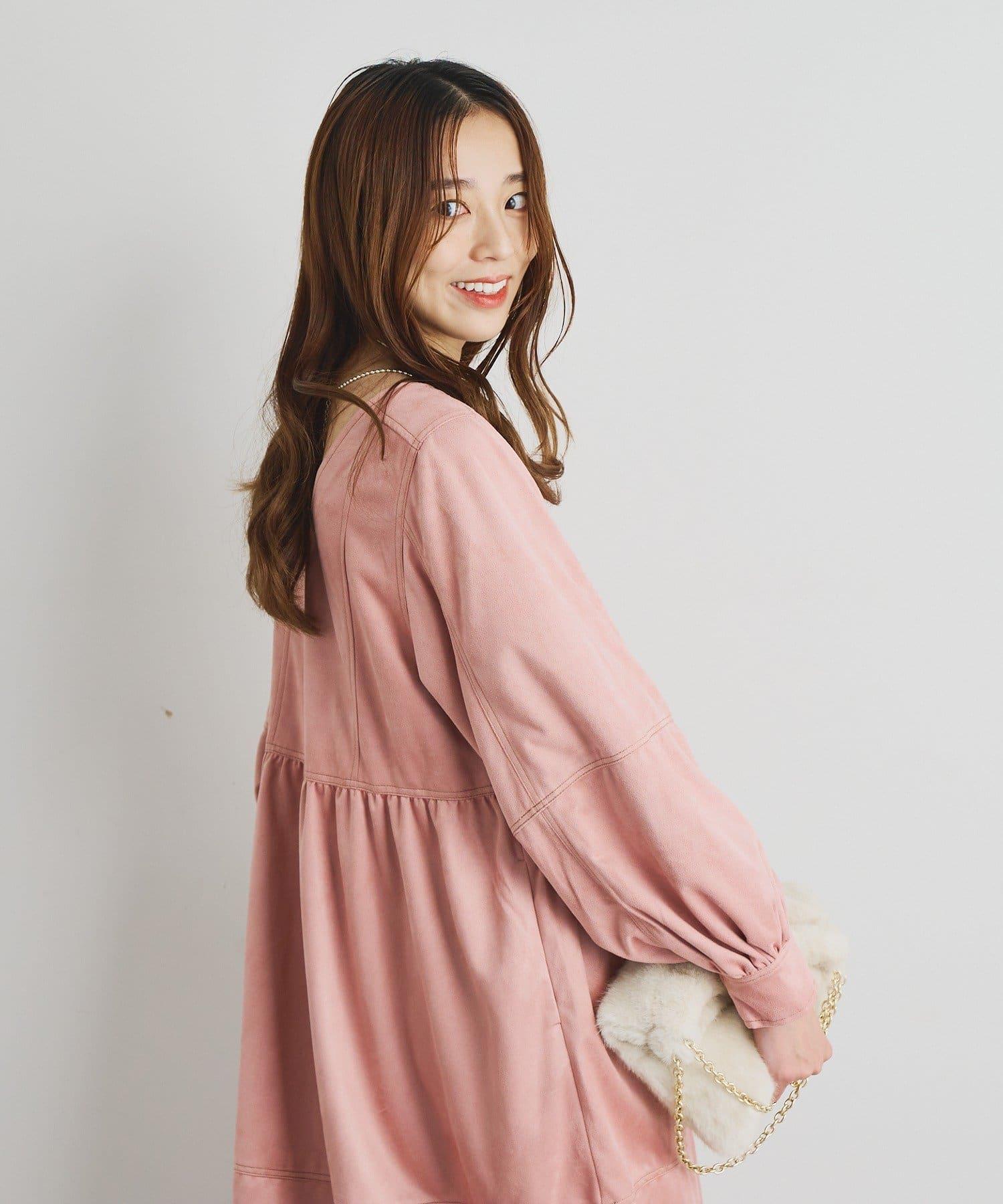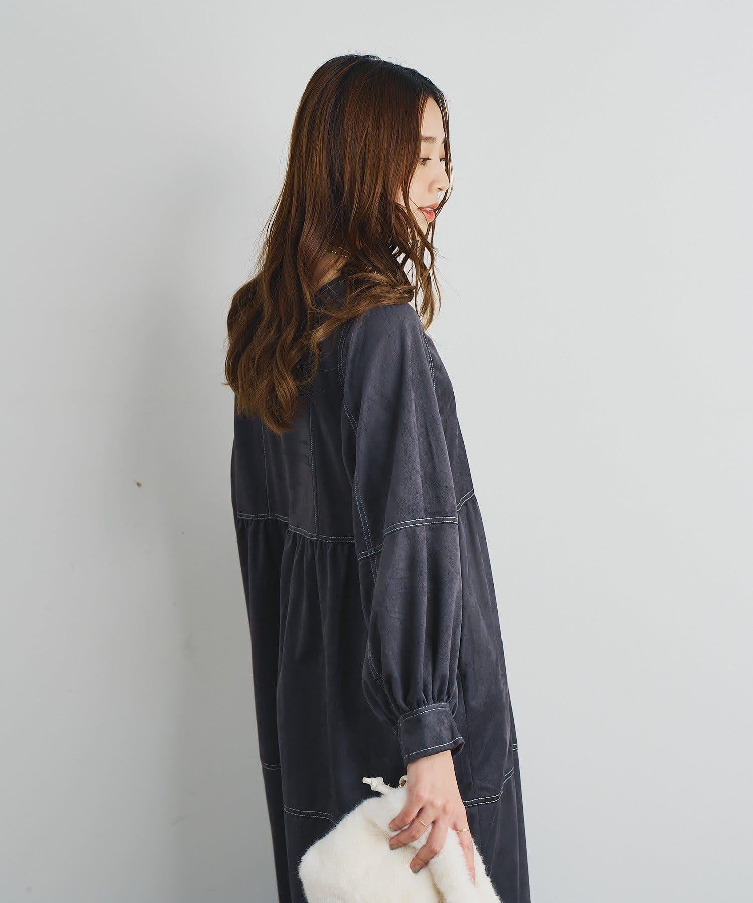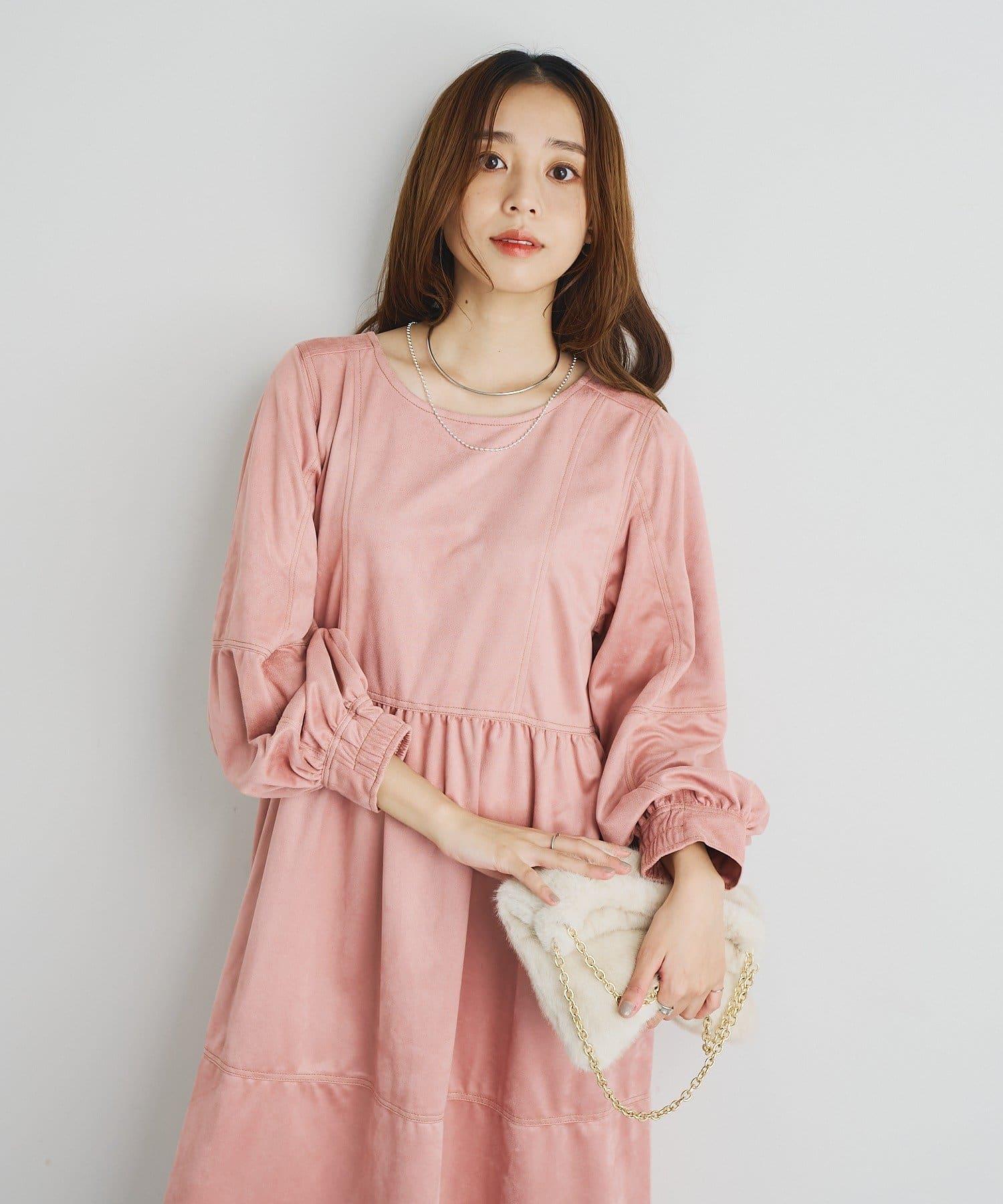 前後兩穿仿桃皮絨拼接連衣裙