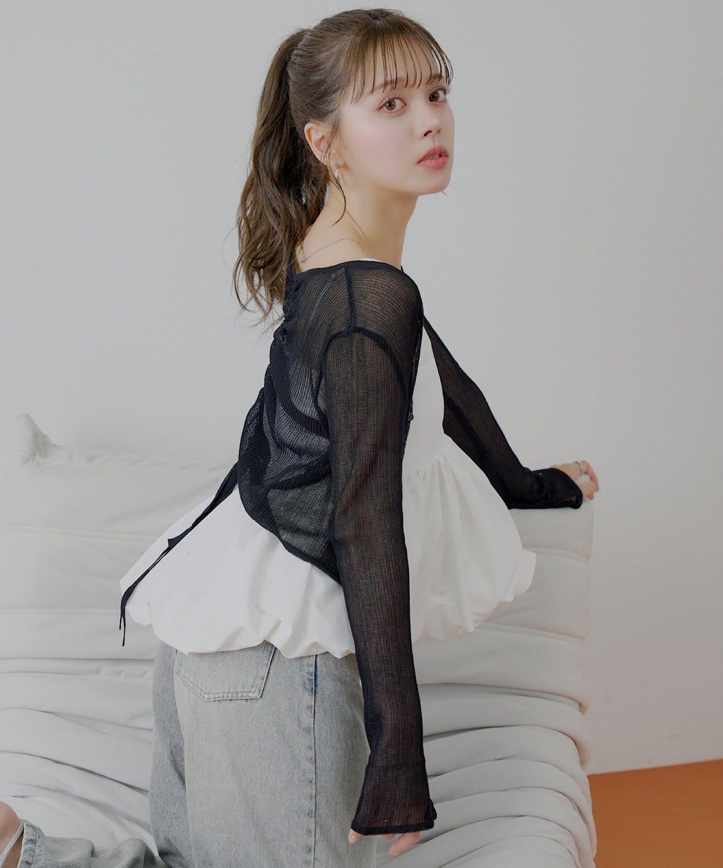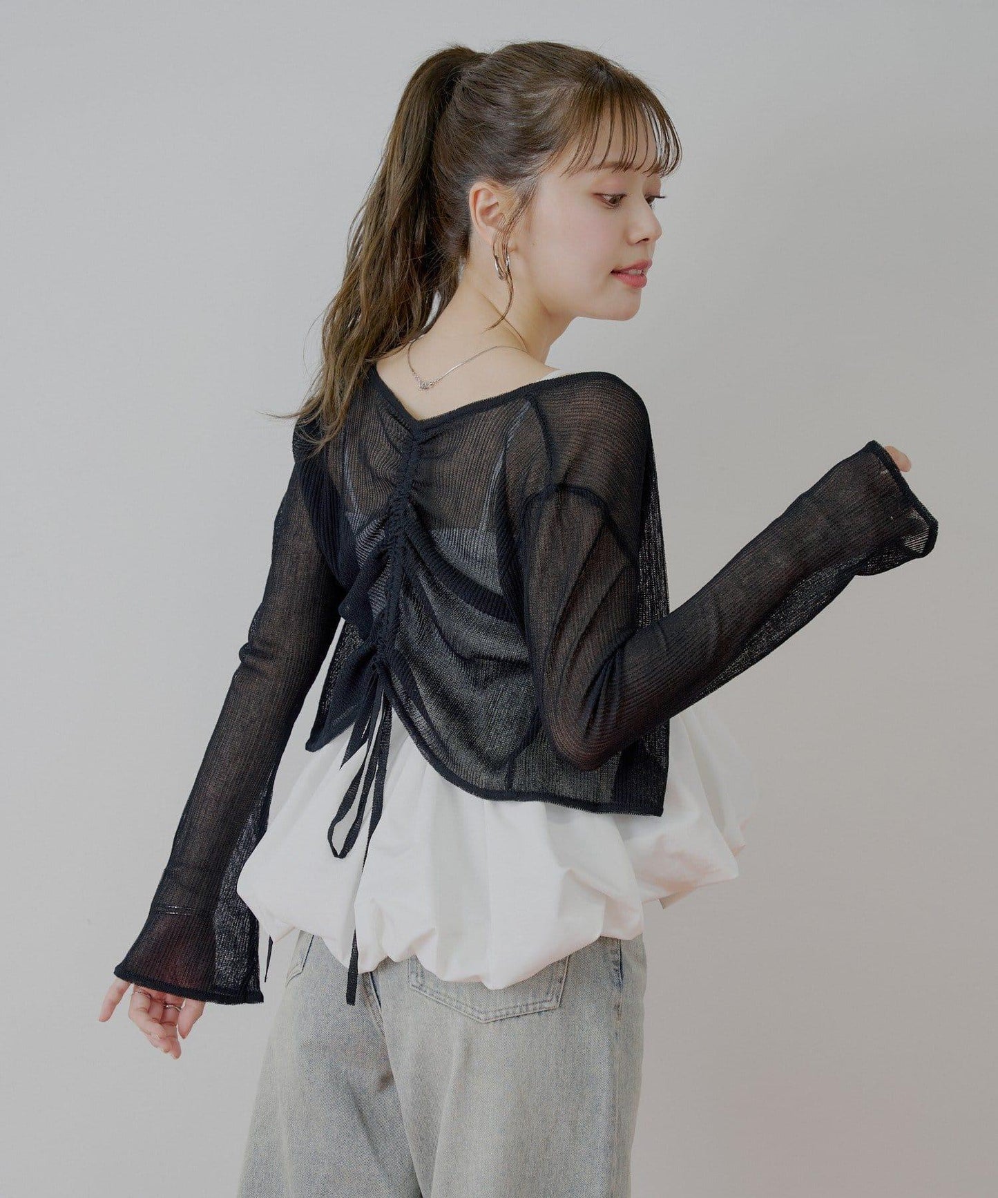 前後兩穿抽繩透視開衫