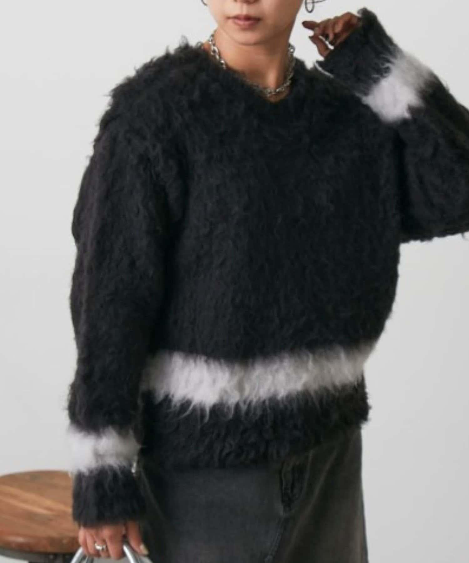這款雙向套頭衫採用毛茸茸的面料,配色設計看起來非常優雅。