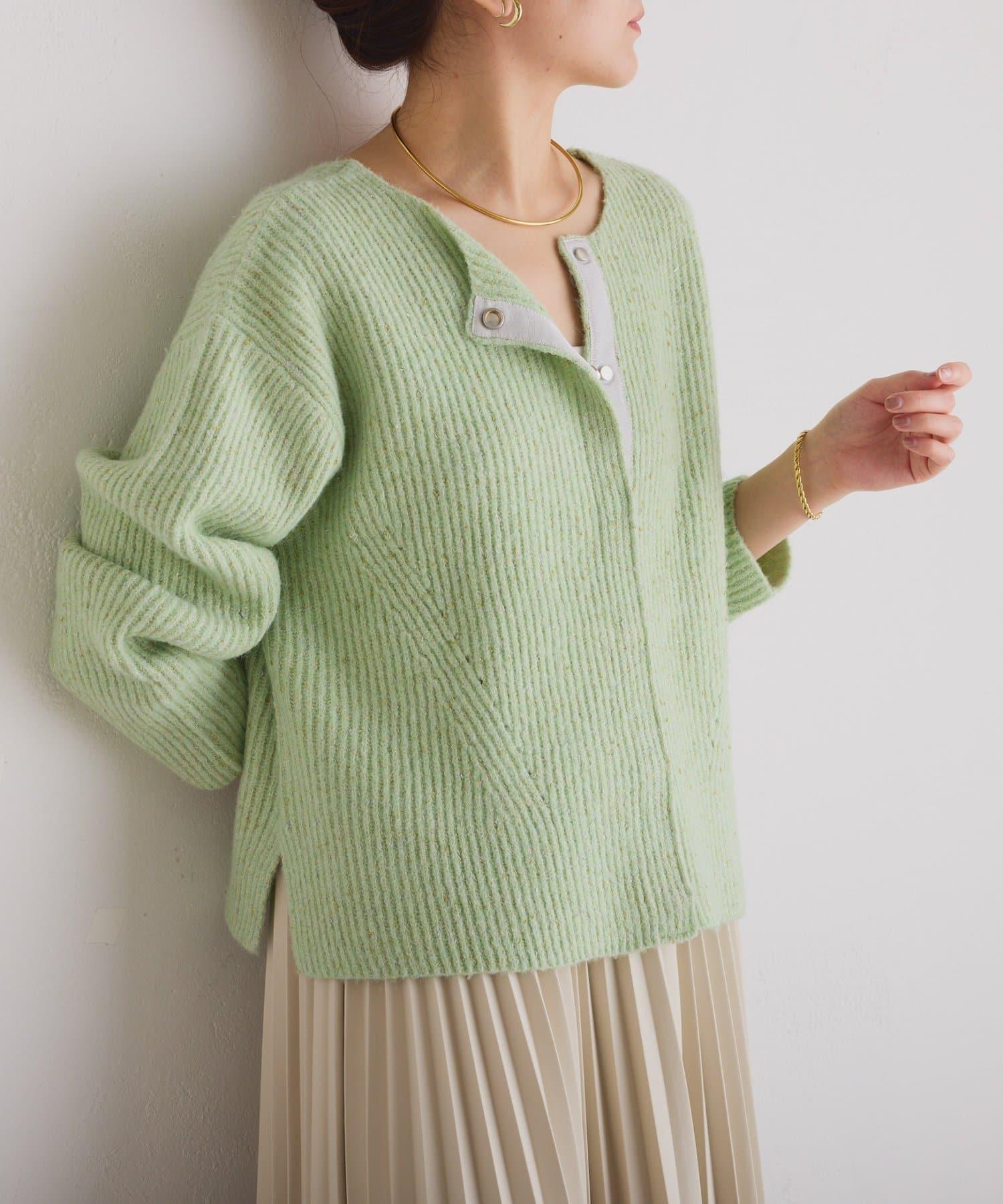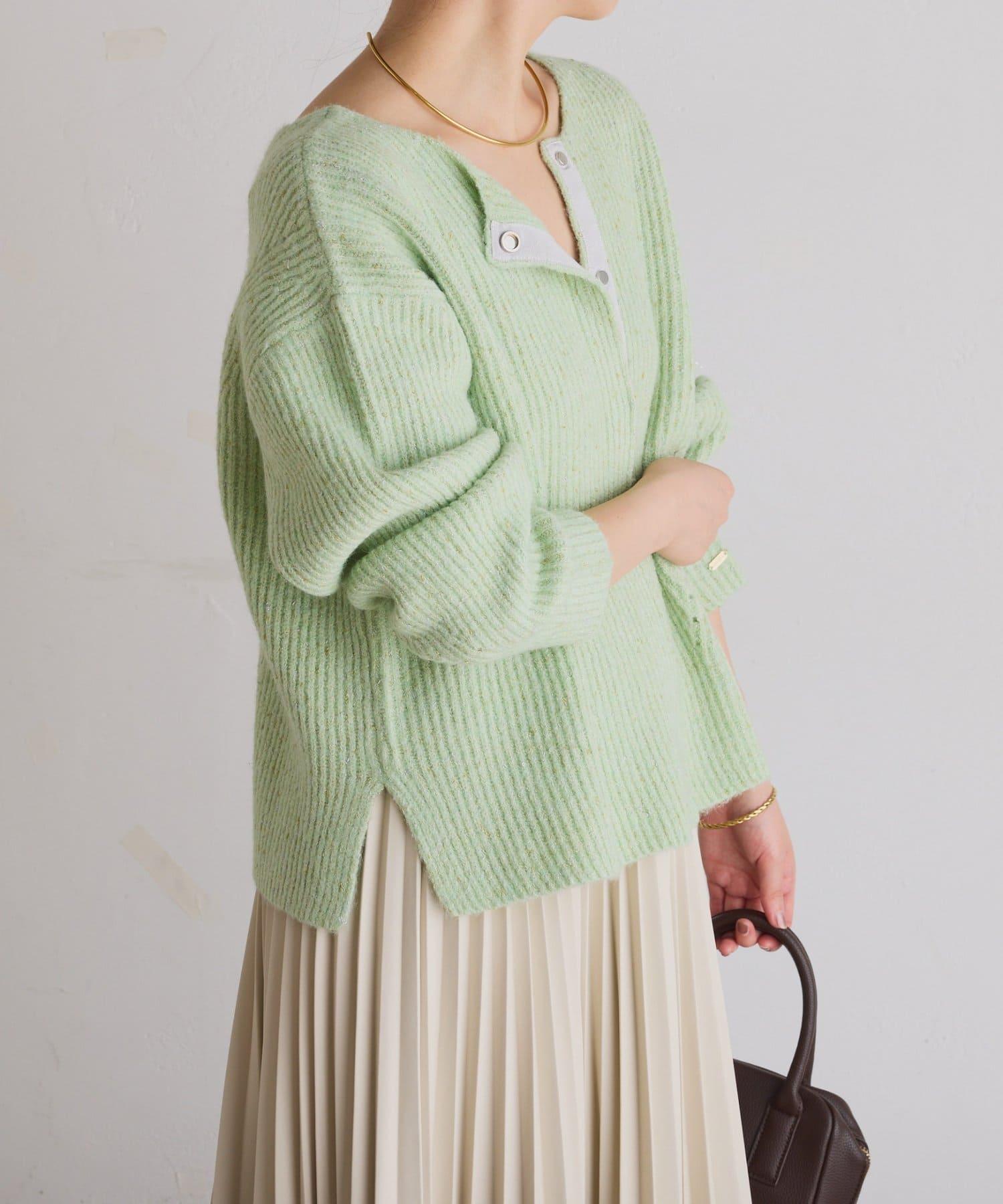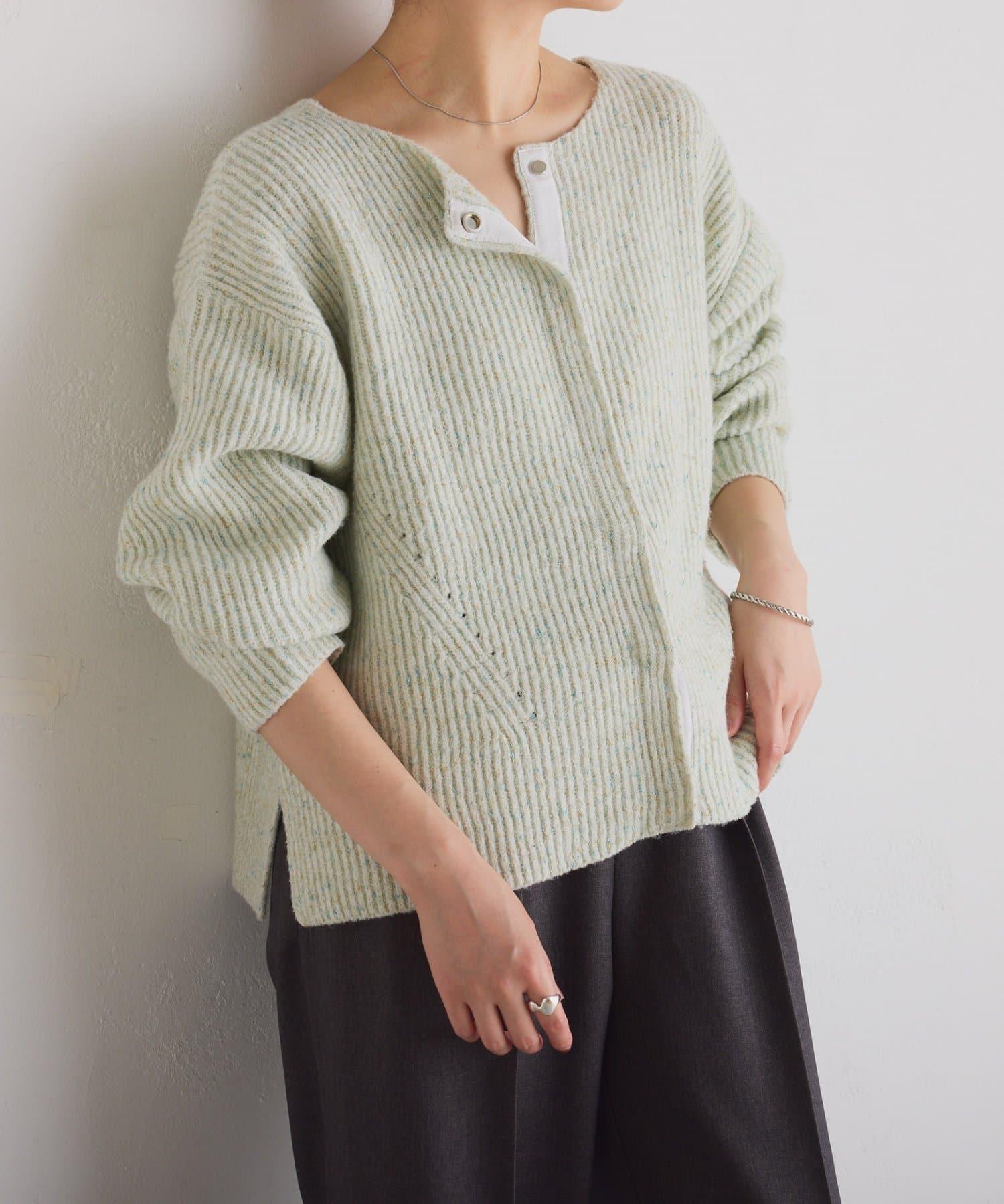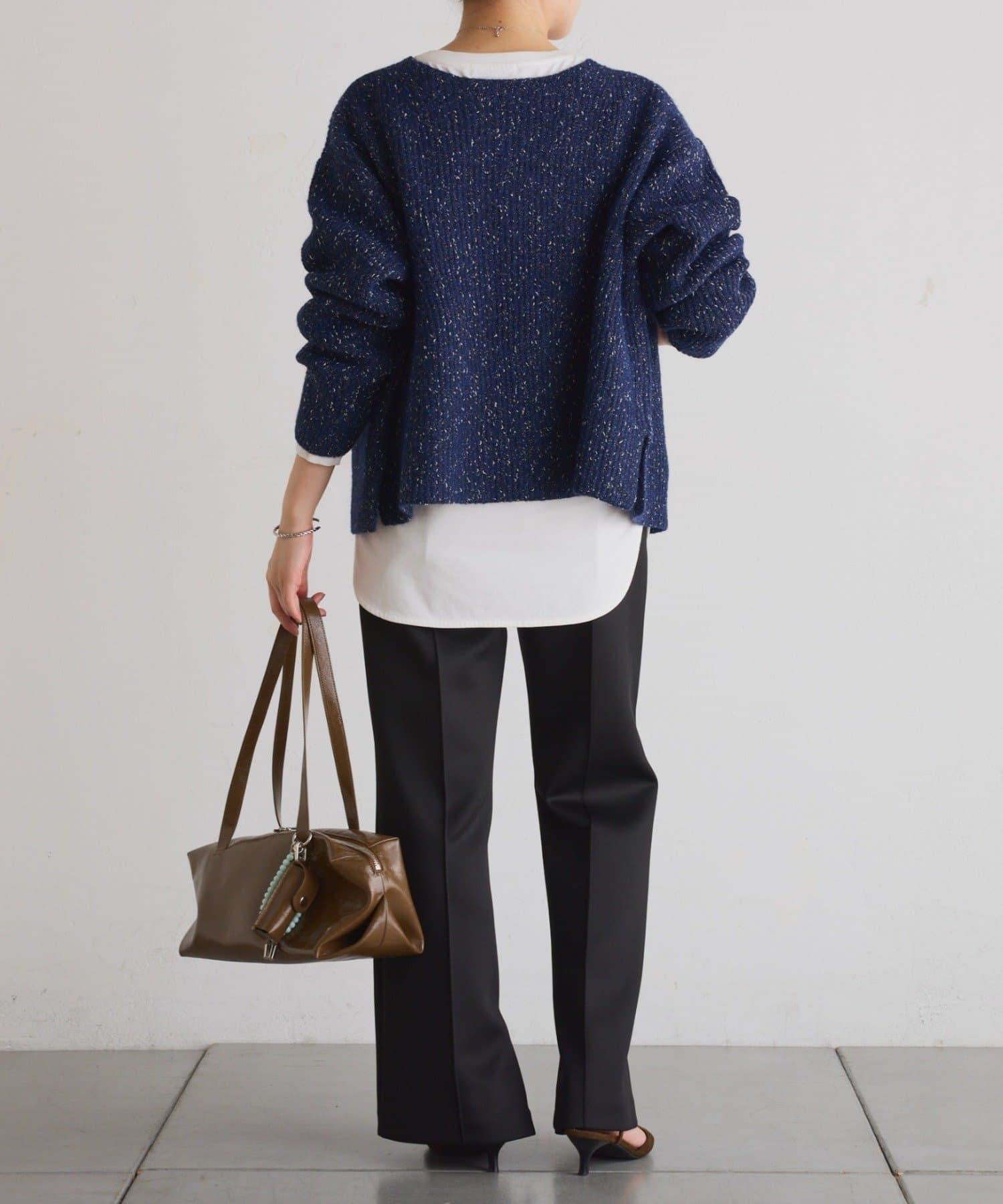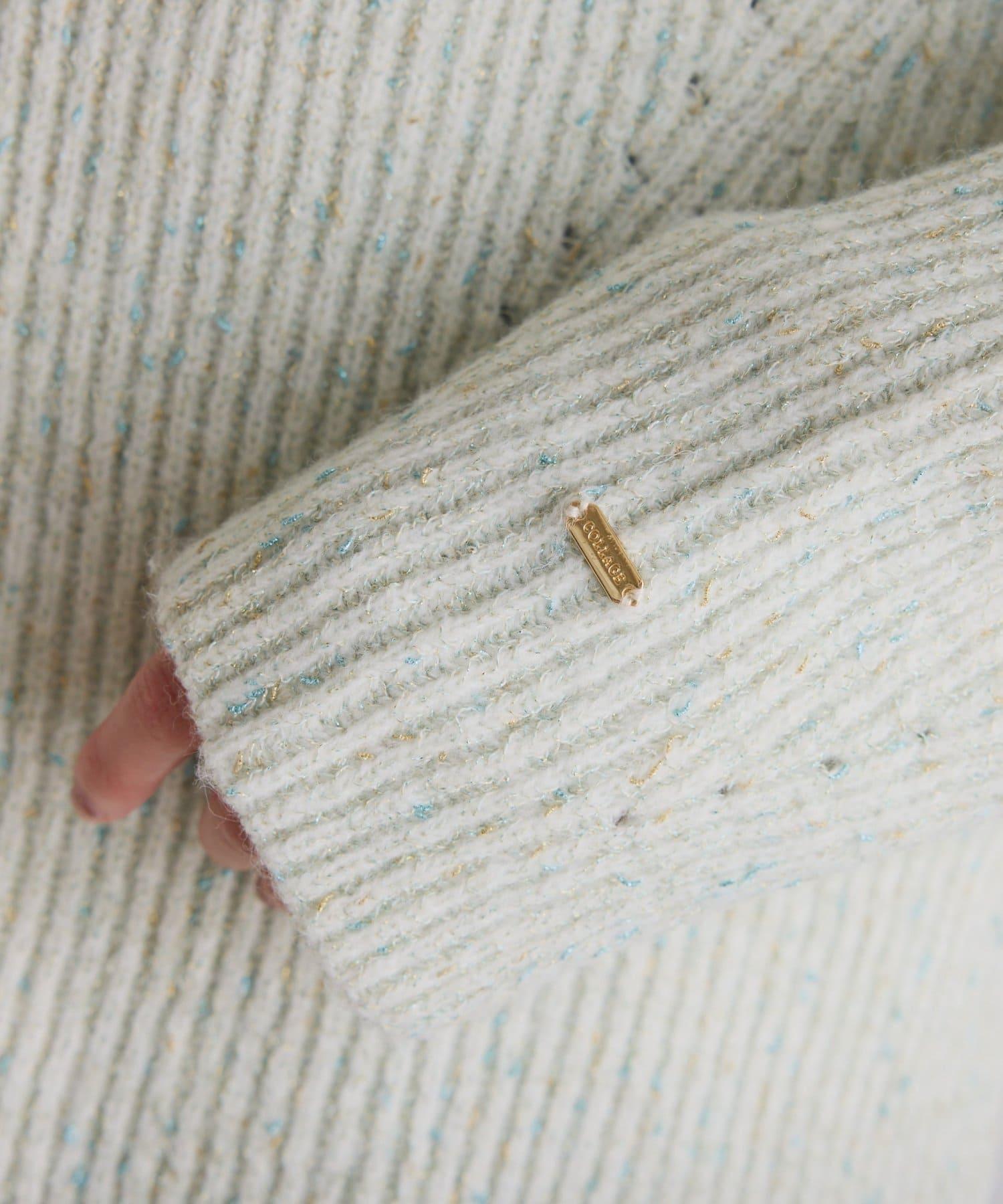 這款針織衫採用了閃亮的針織工藝,並在針織衫上加入了交錯在一起的薄片編結,使針織衫看起來更具表現力。