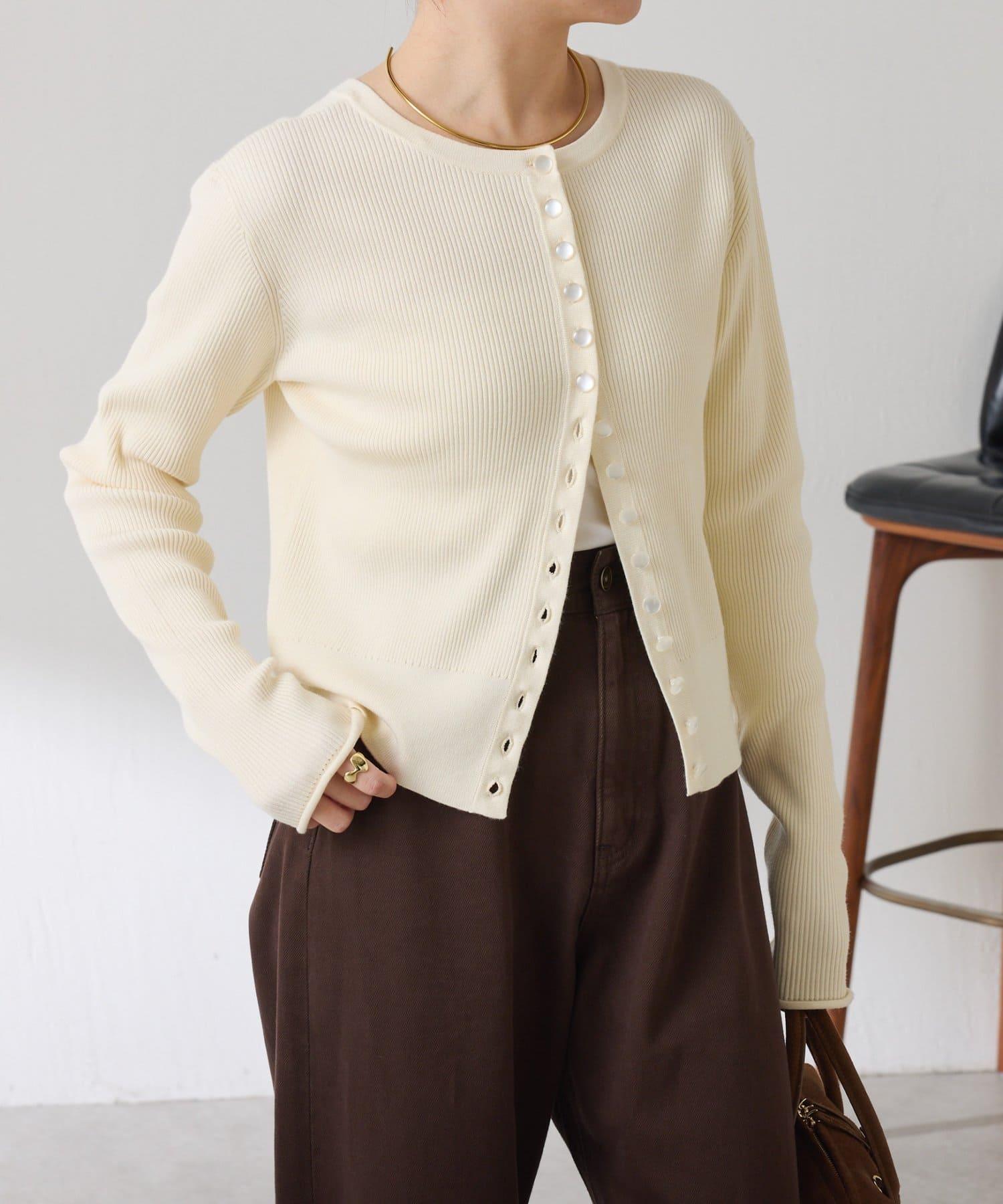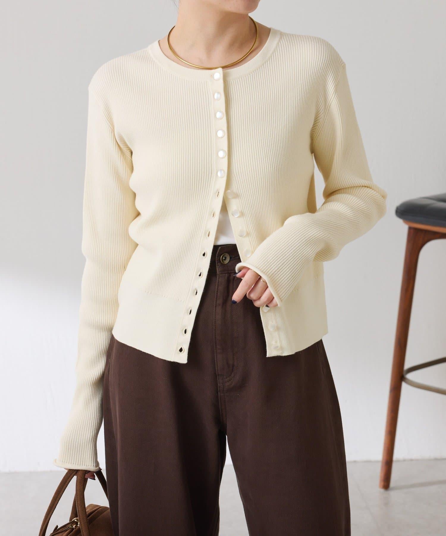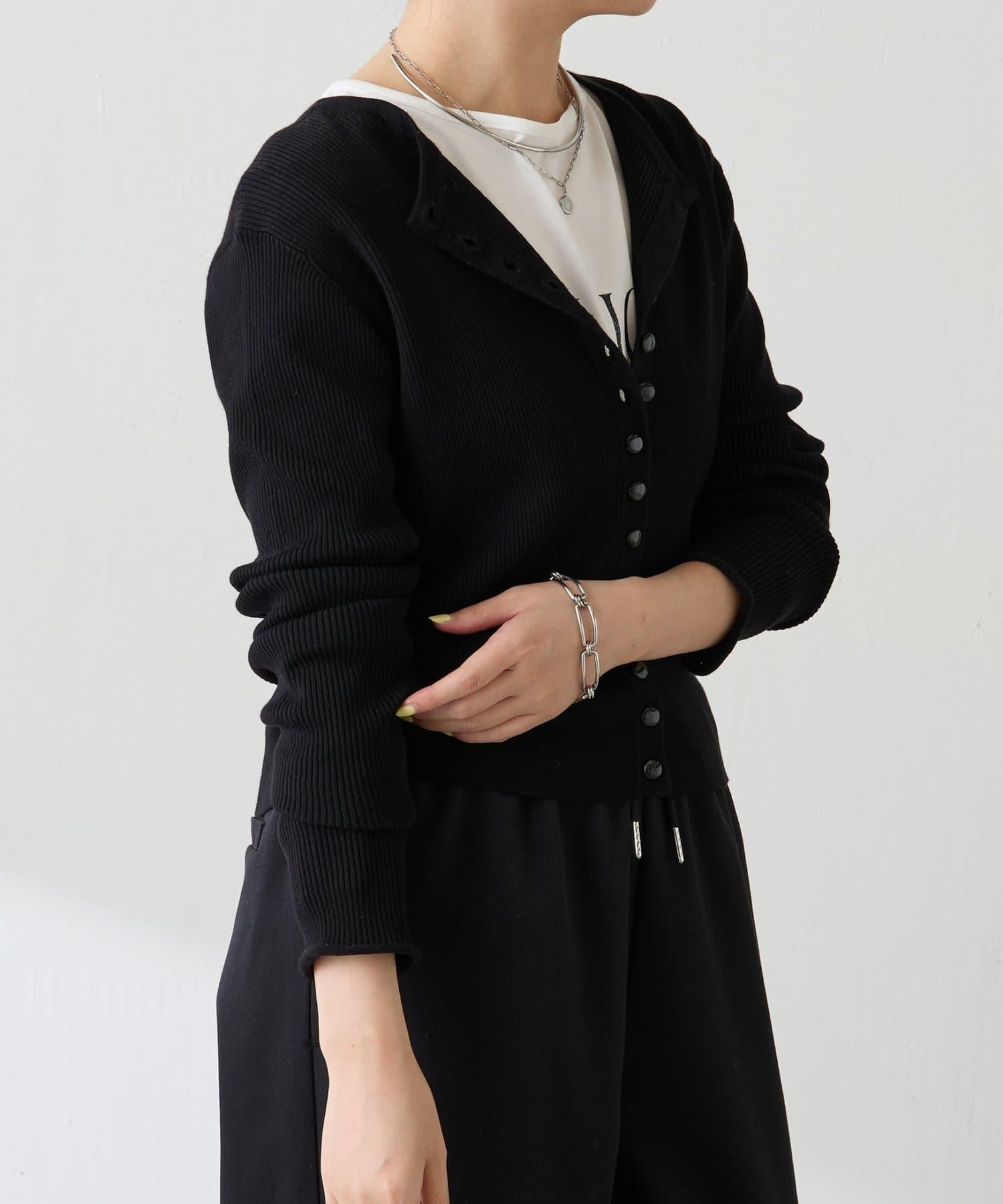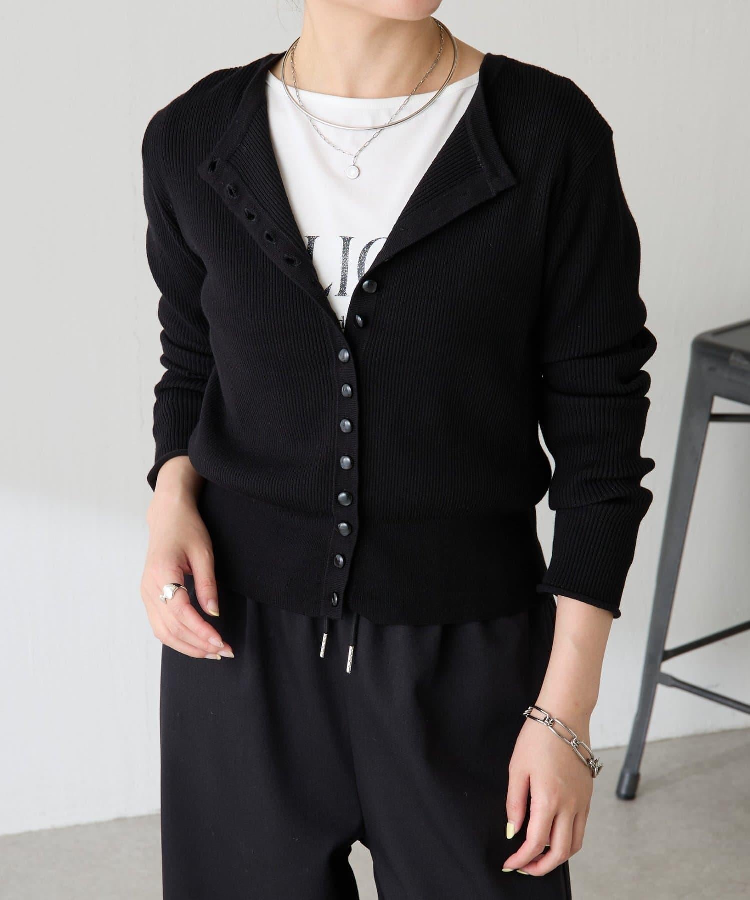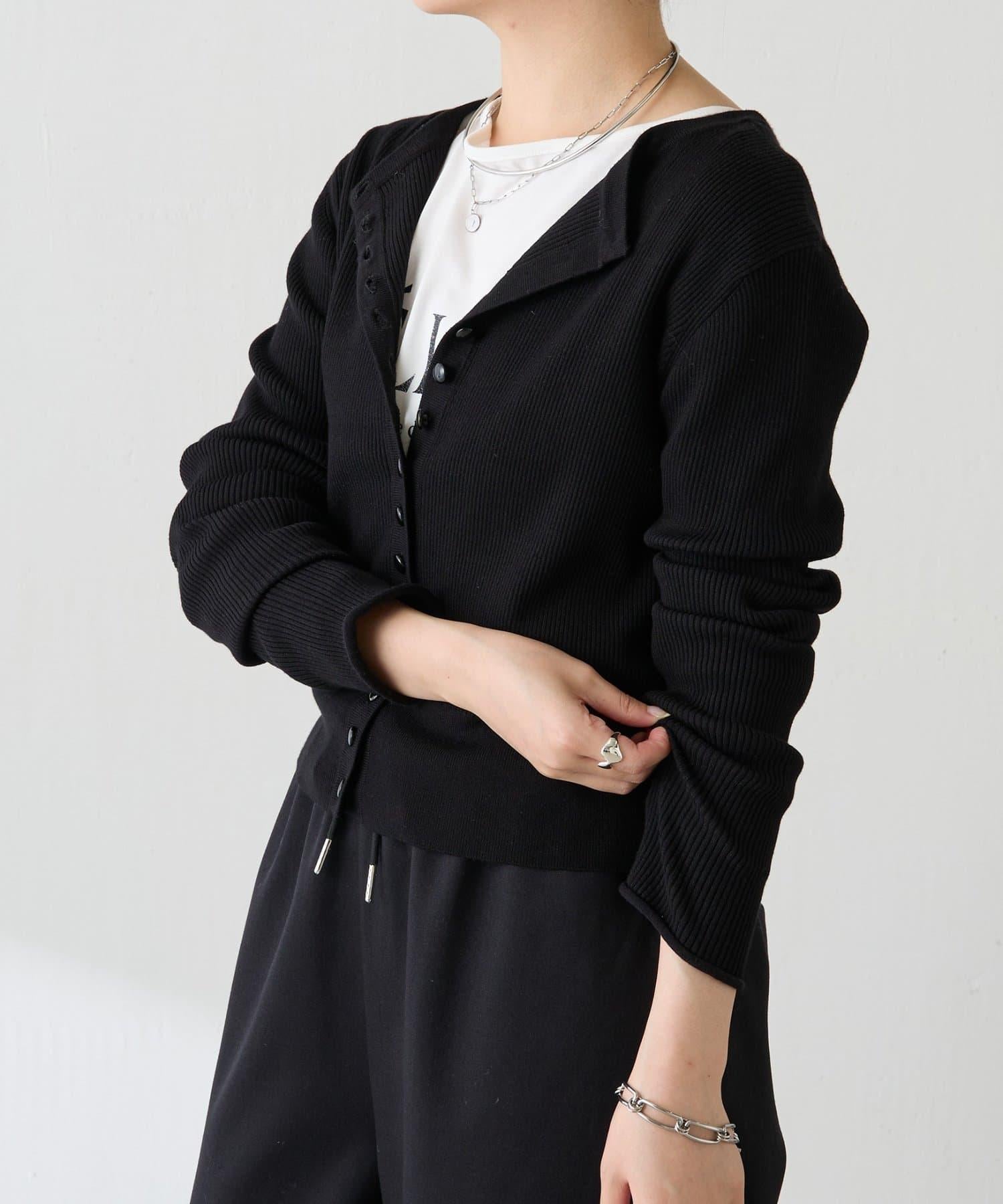 這款開襟羊毛衫可以雙面穿著,因此您可以根據場合改變穿著方式。