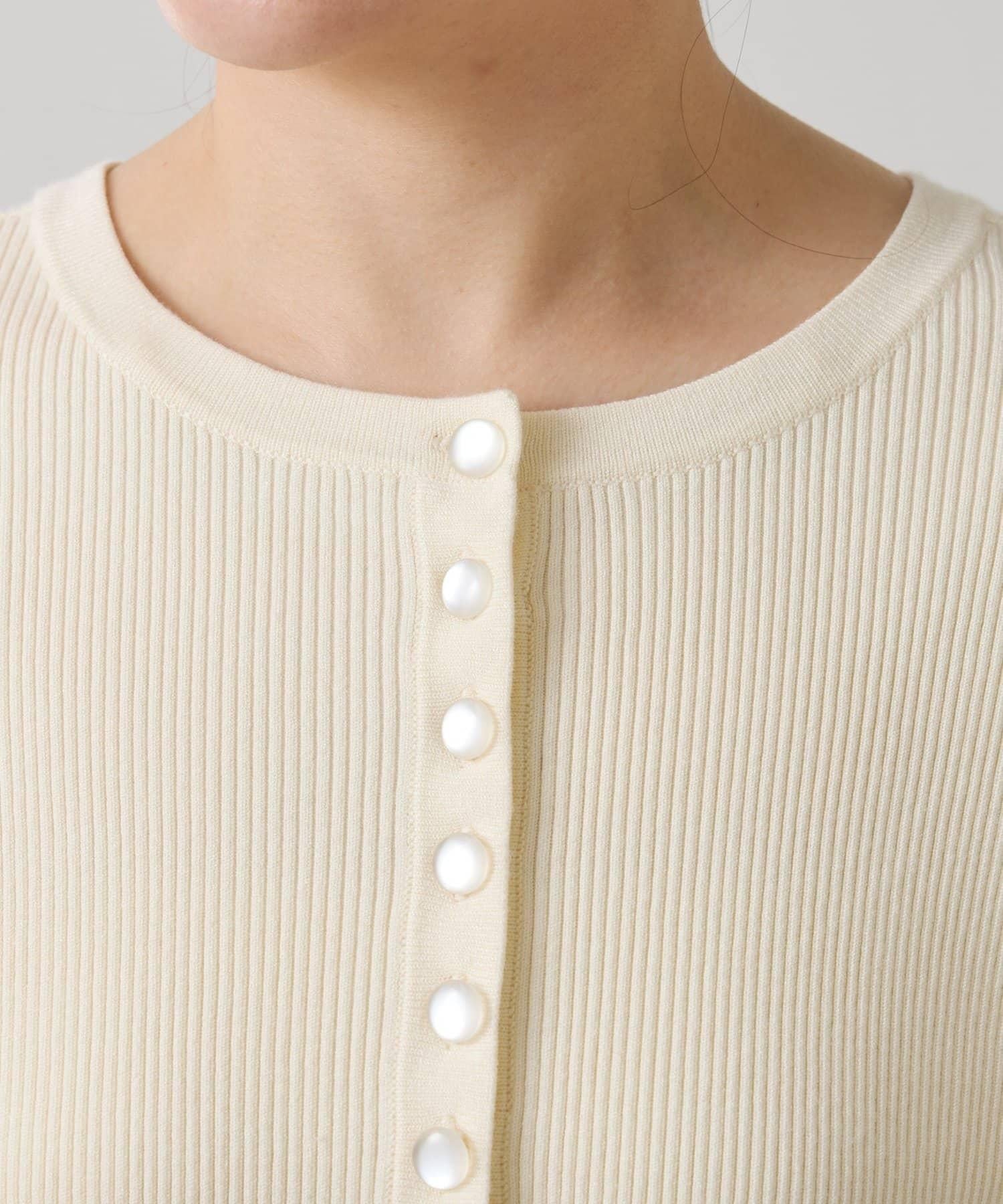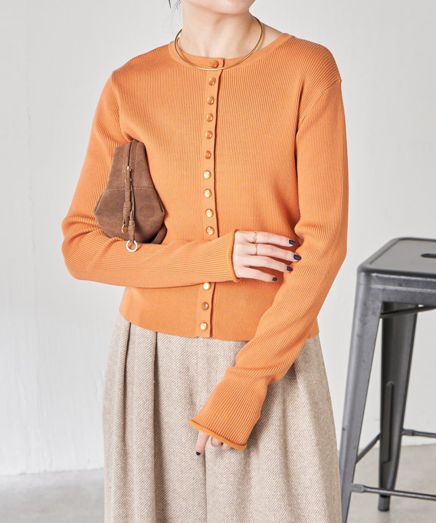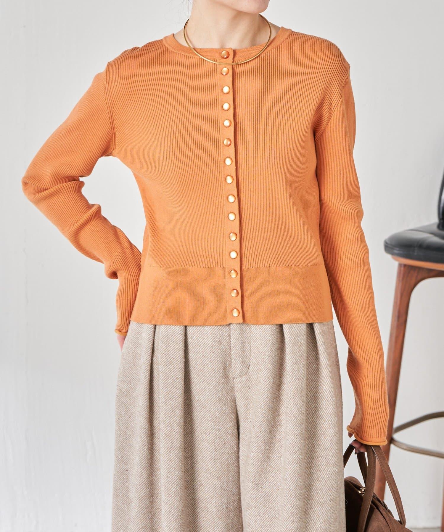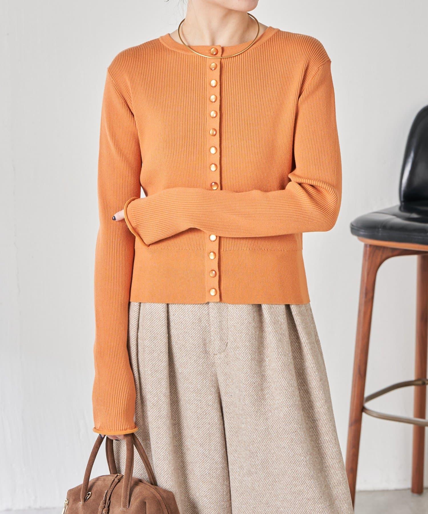 這款開襟羊毛衫的紐扣閃亮優雅。