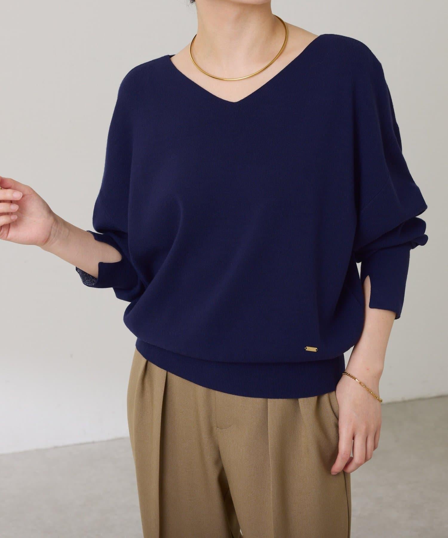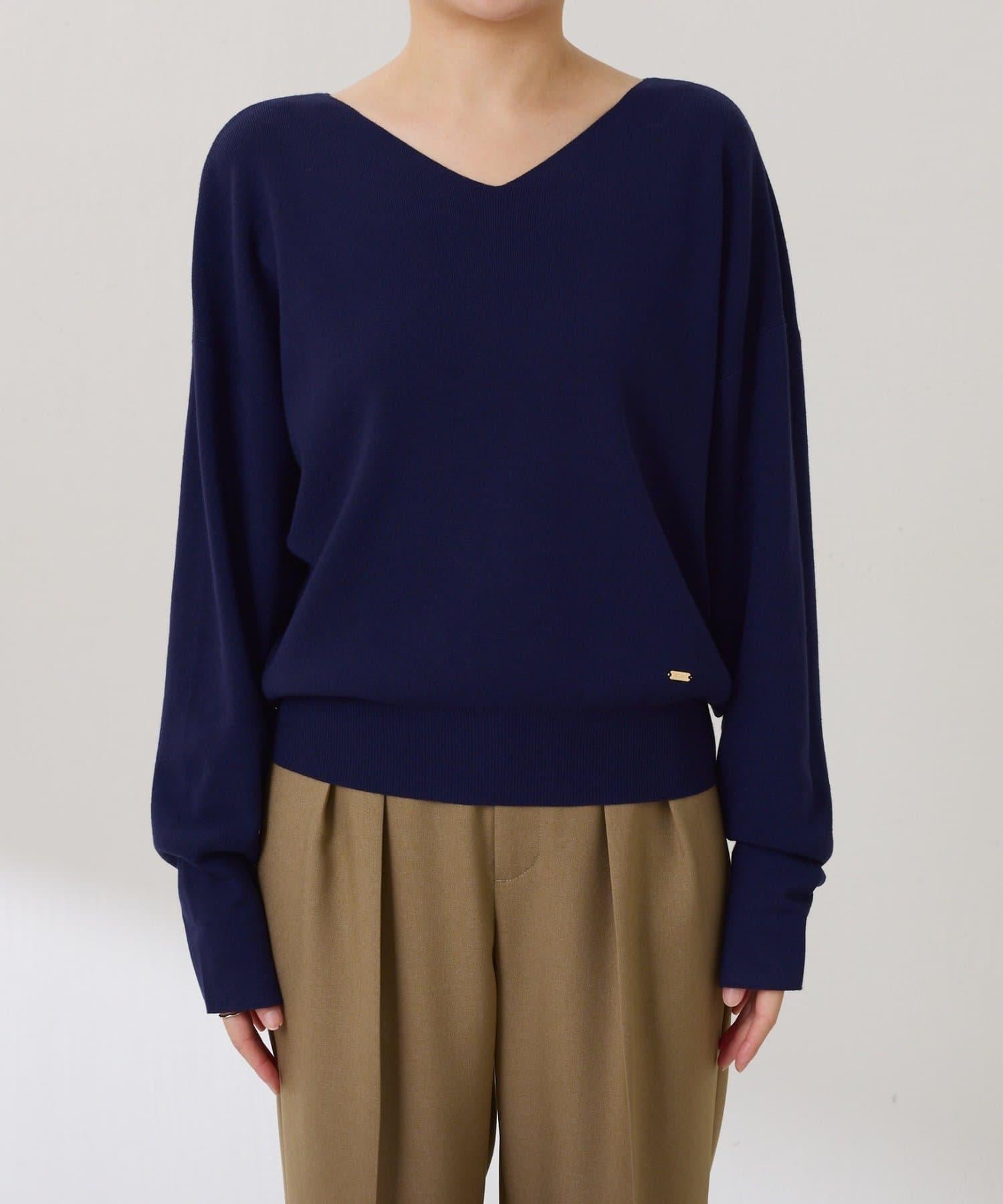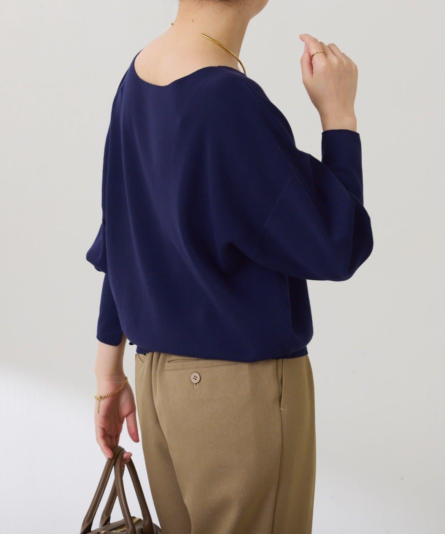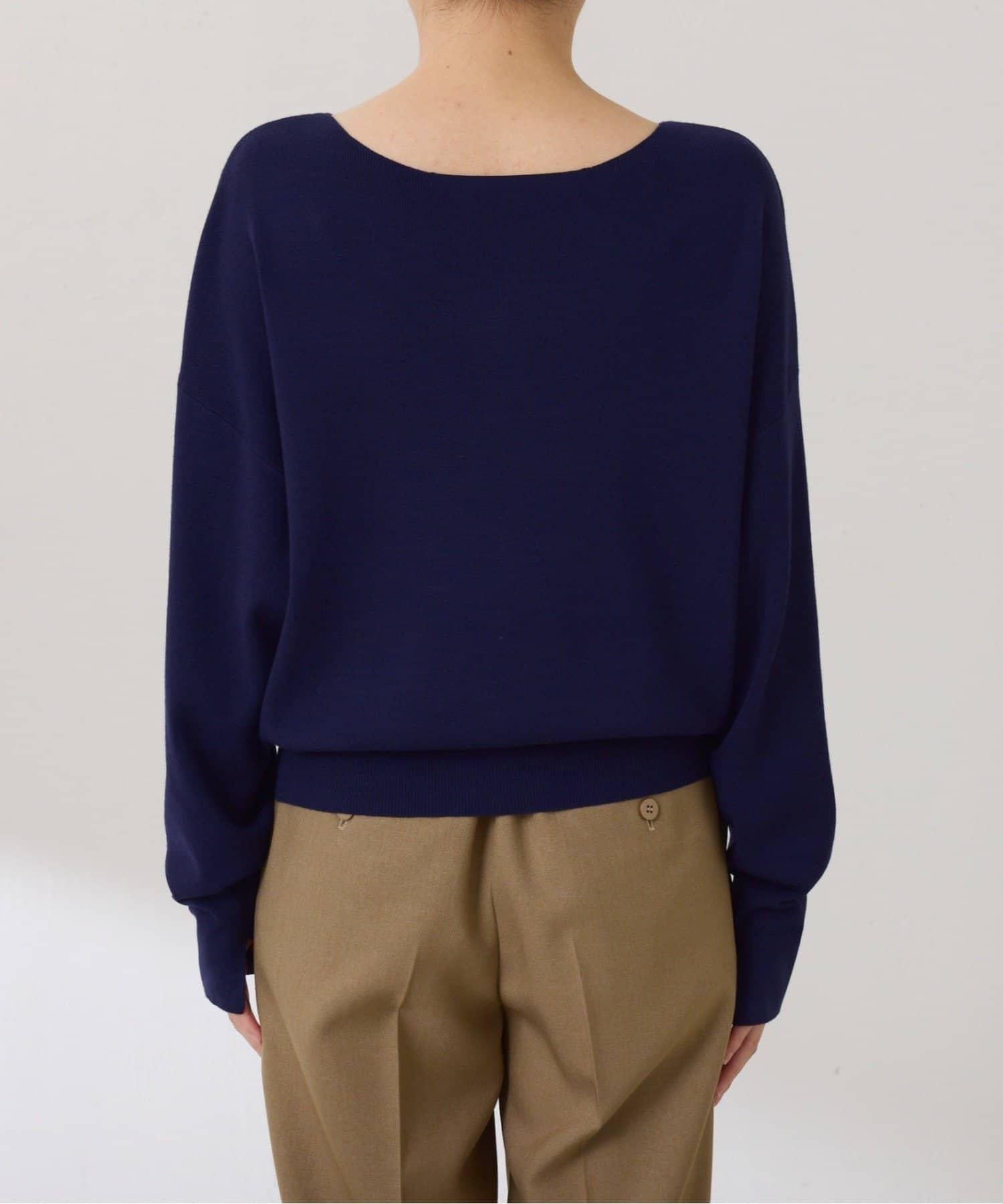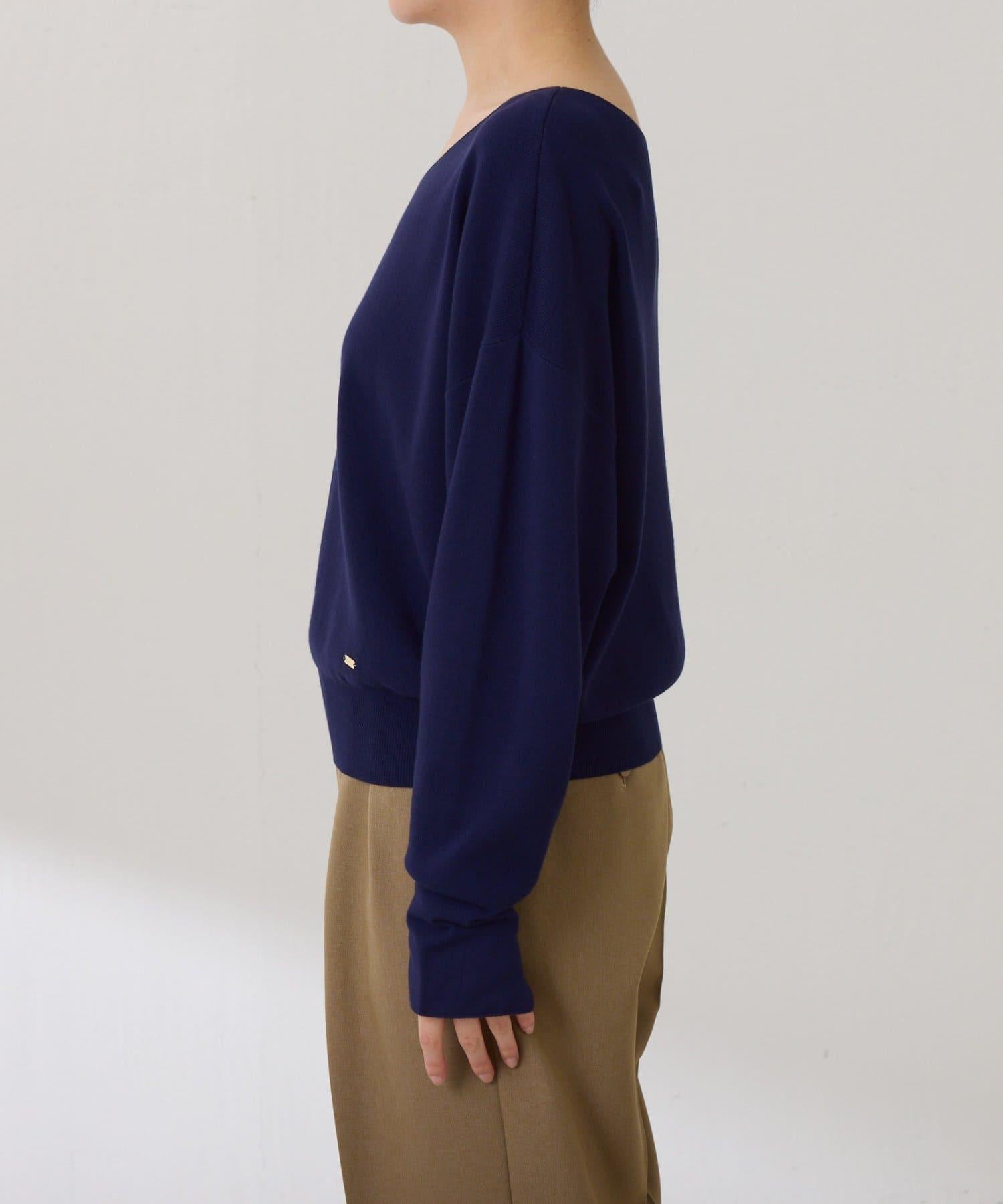 雙向前後設計的多爾曼針織衫,領口為淺 V 和船領。