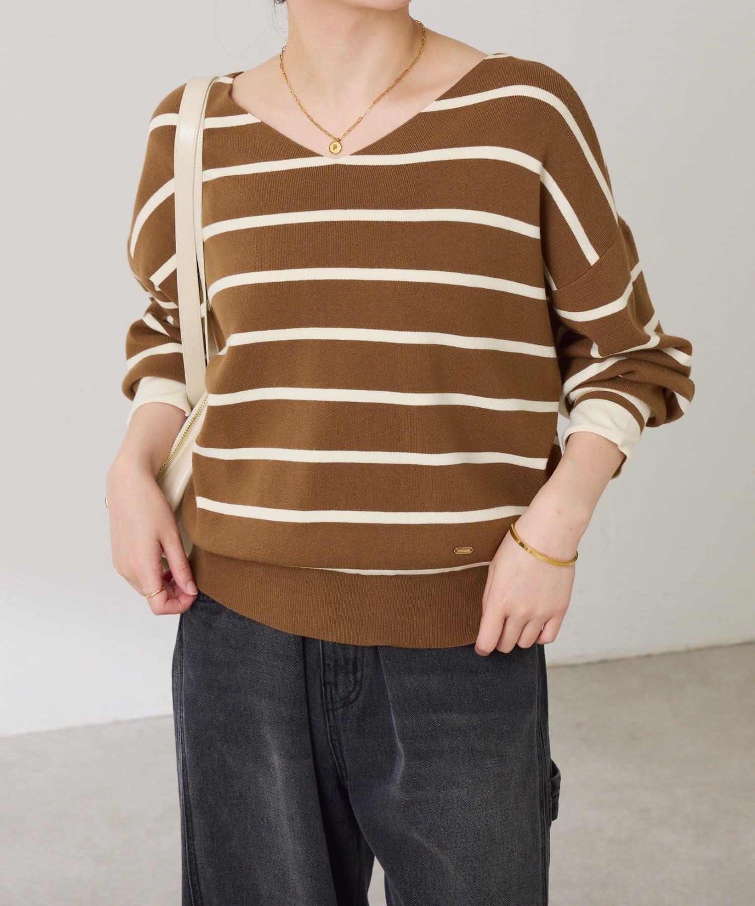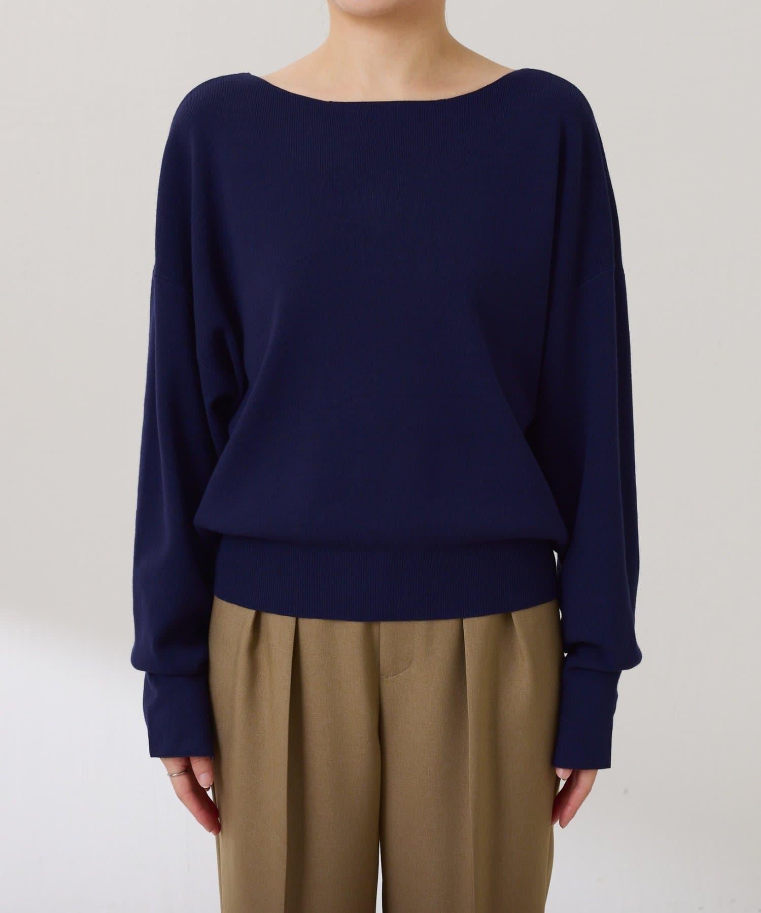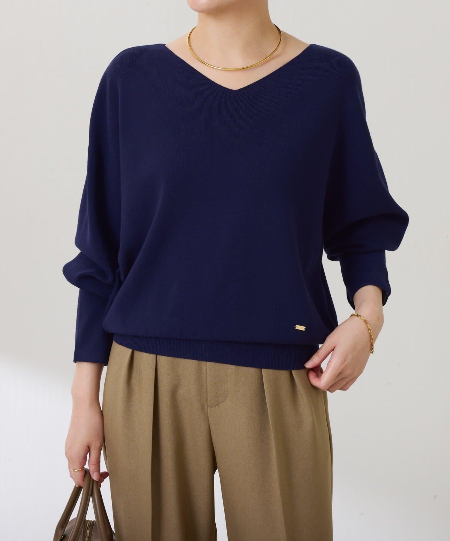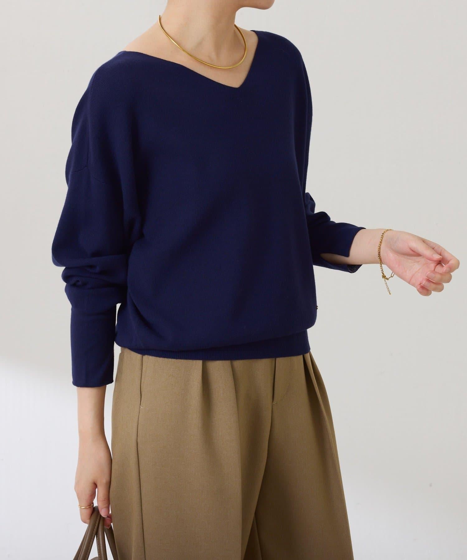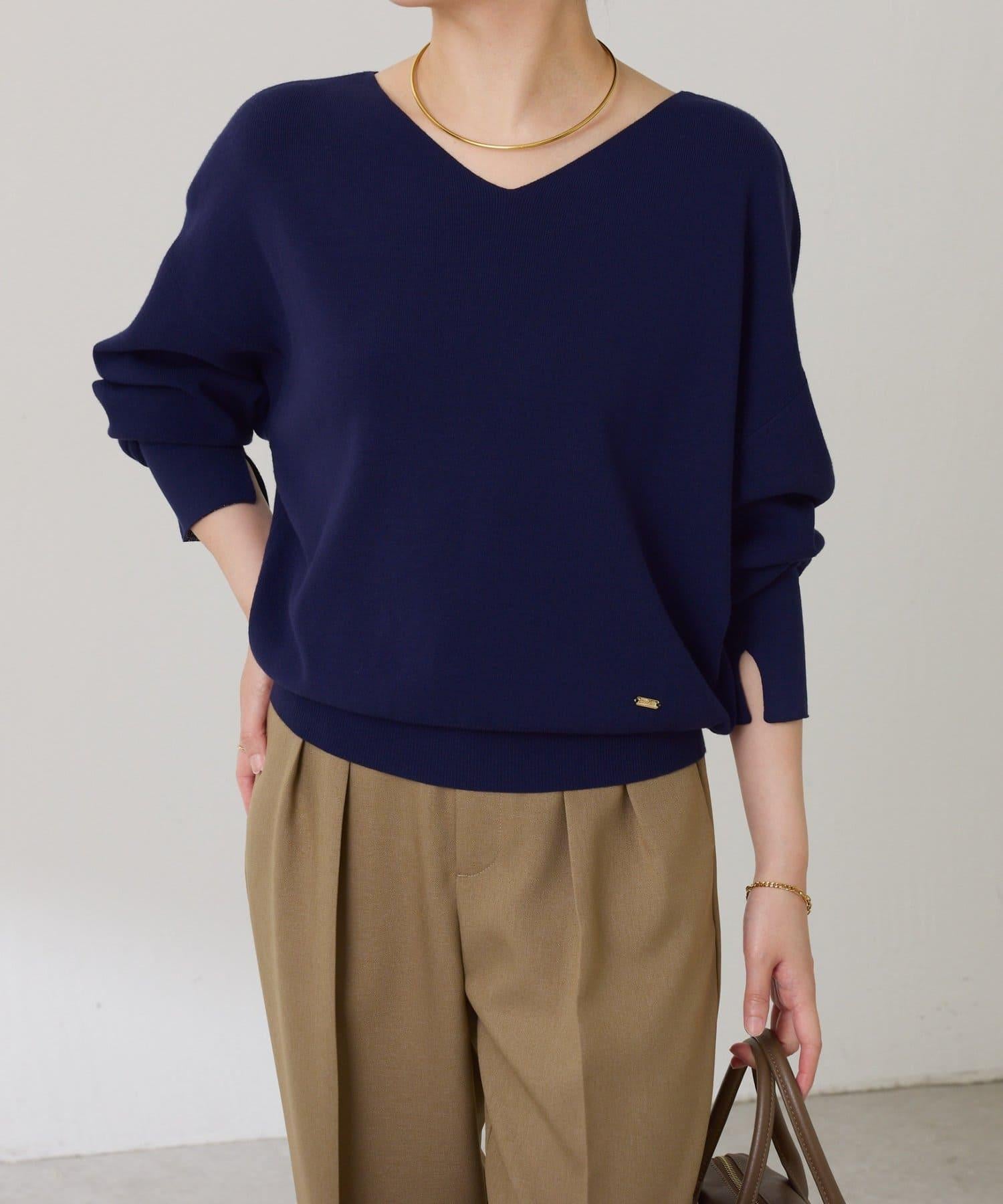 雙向前後設計的多爾曼針織衫,領口為淺 V 和船領。