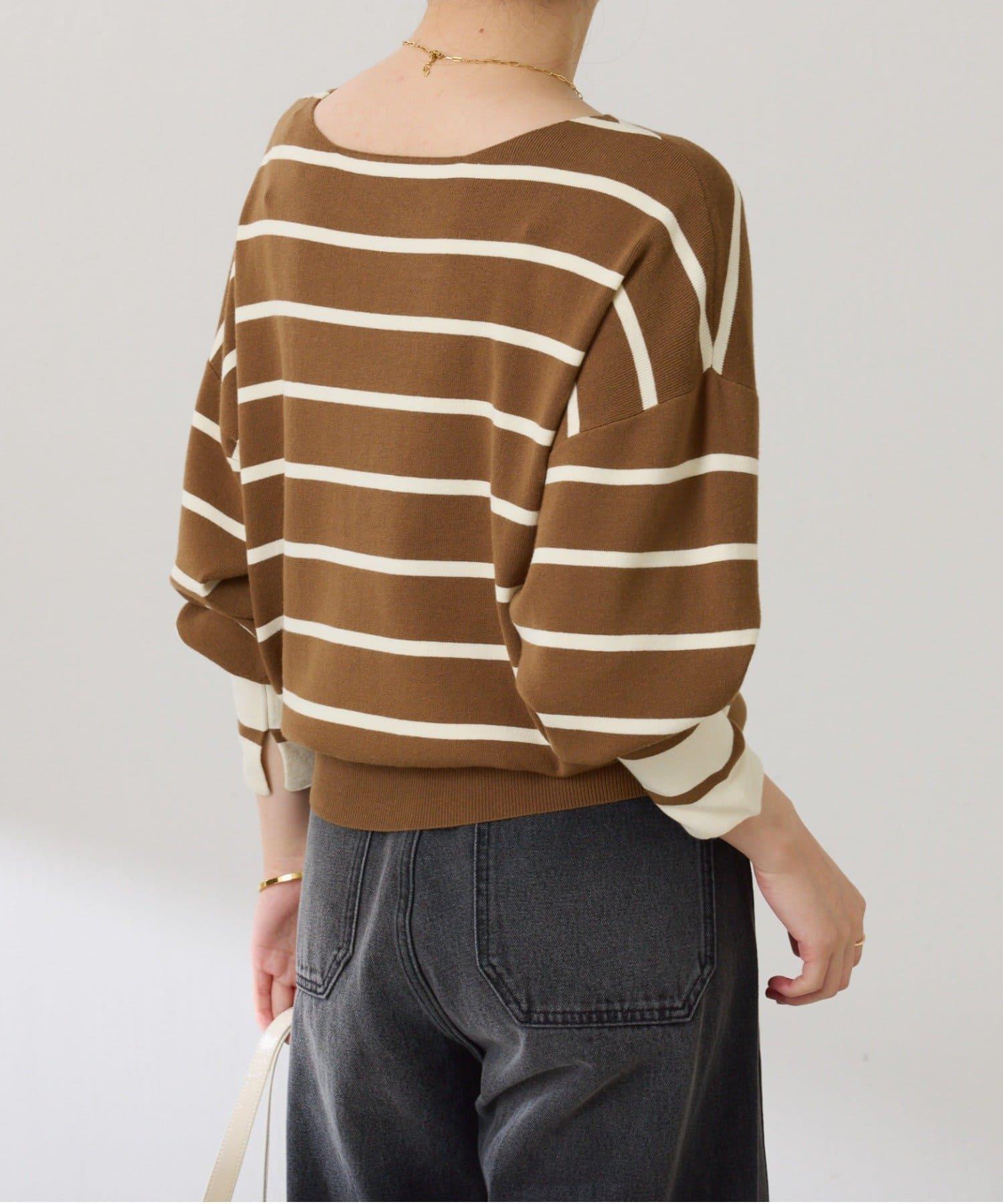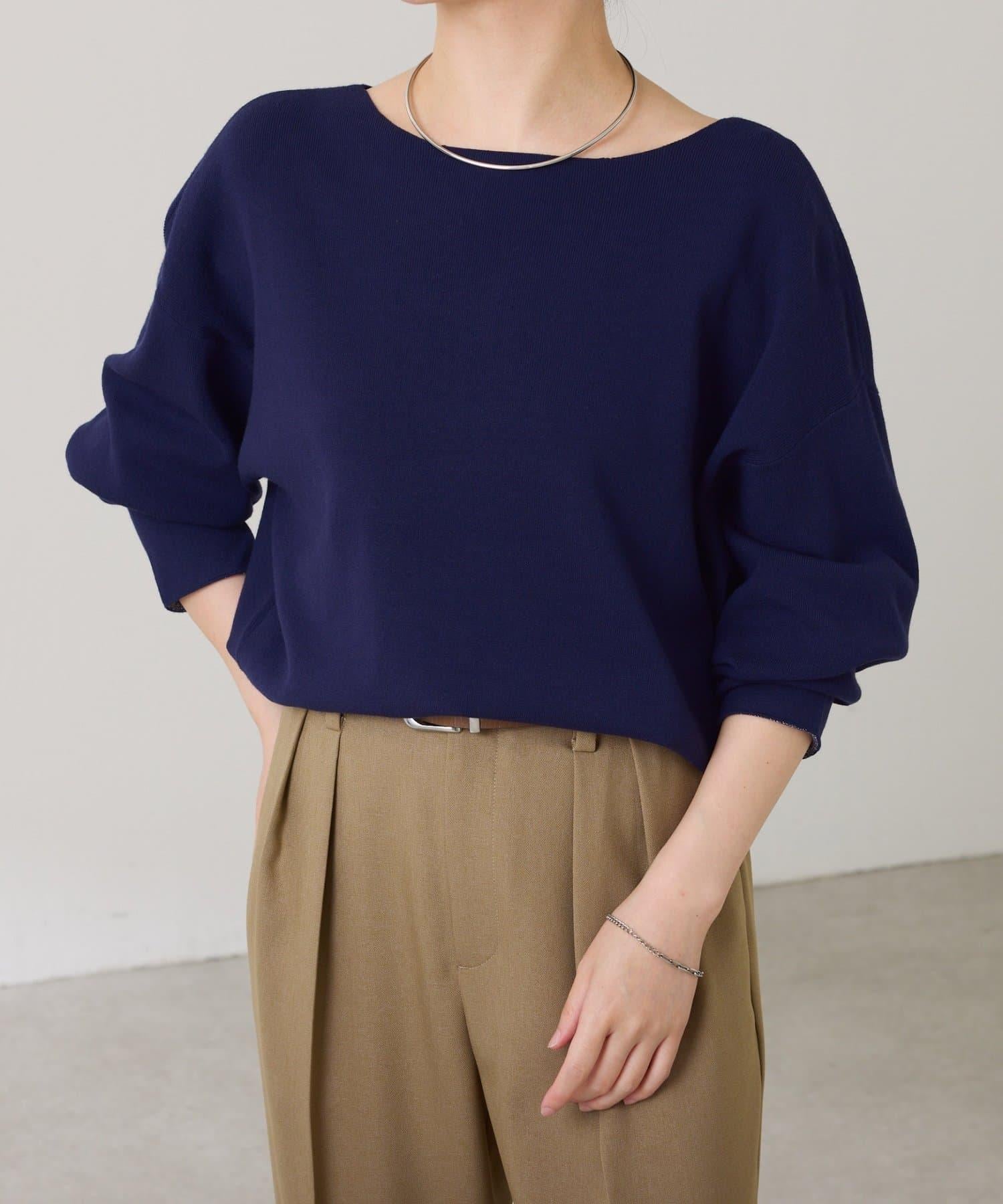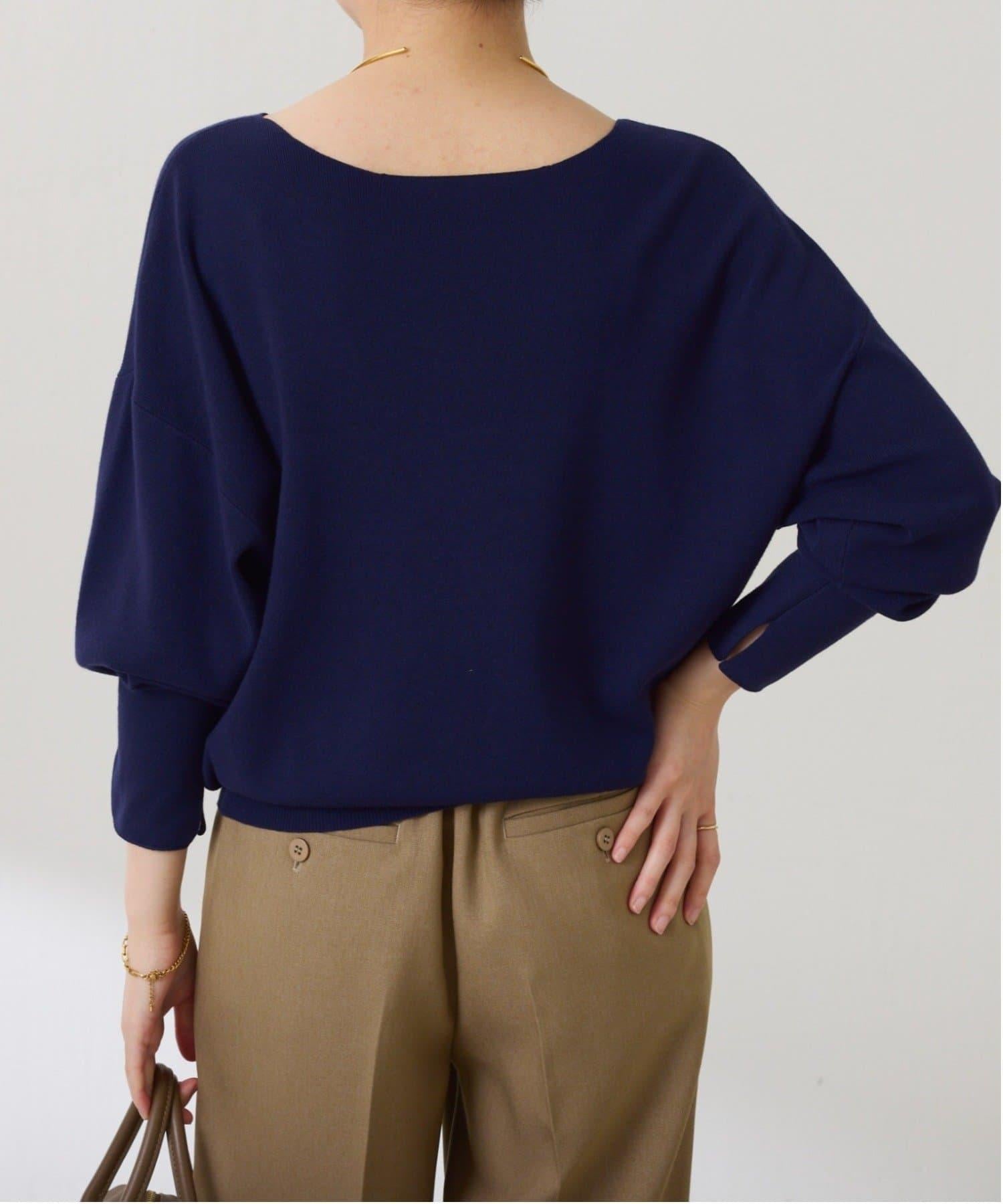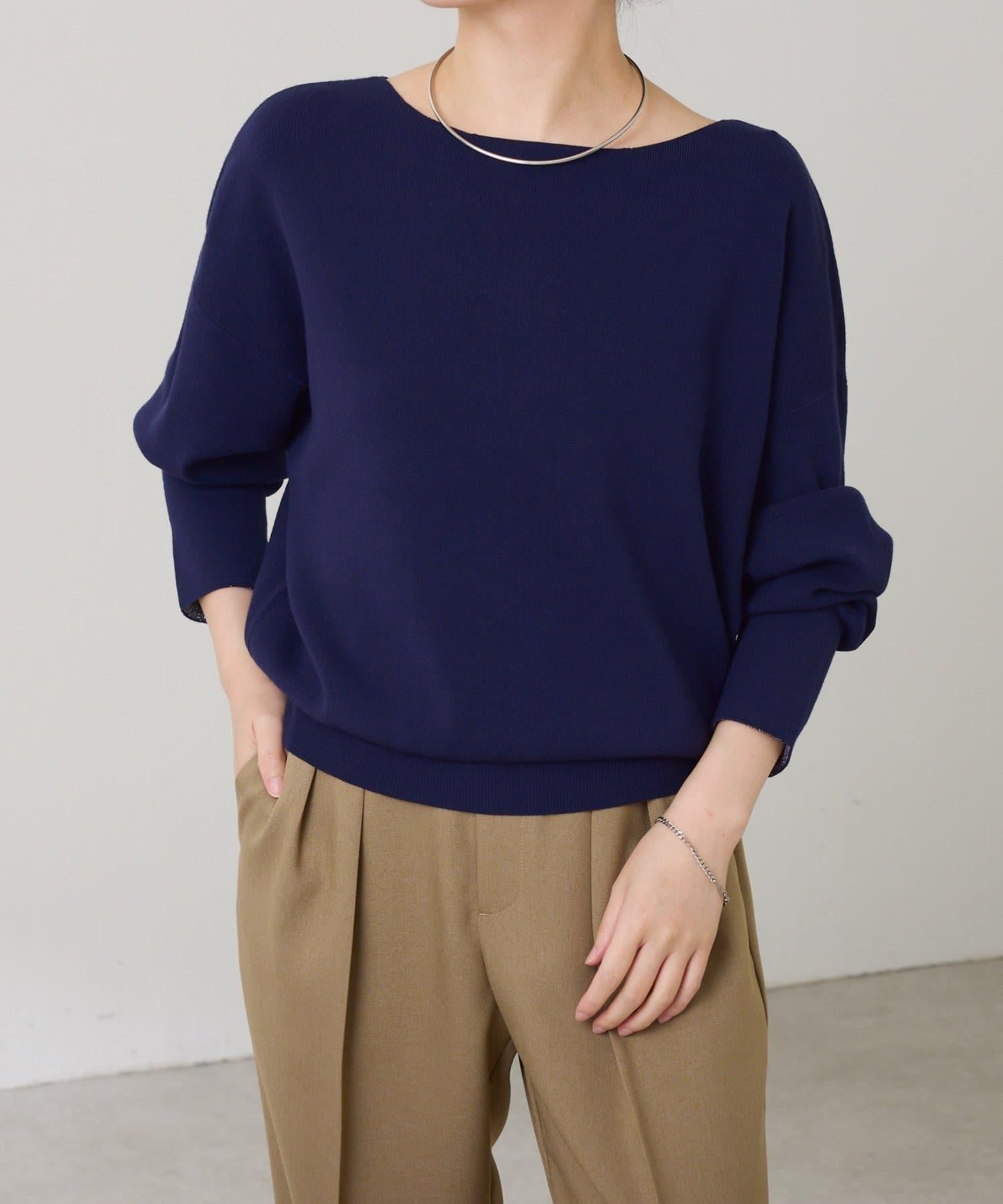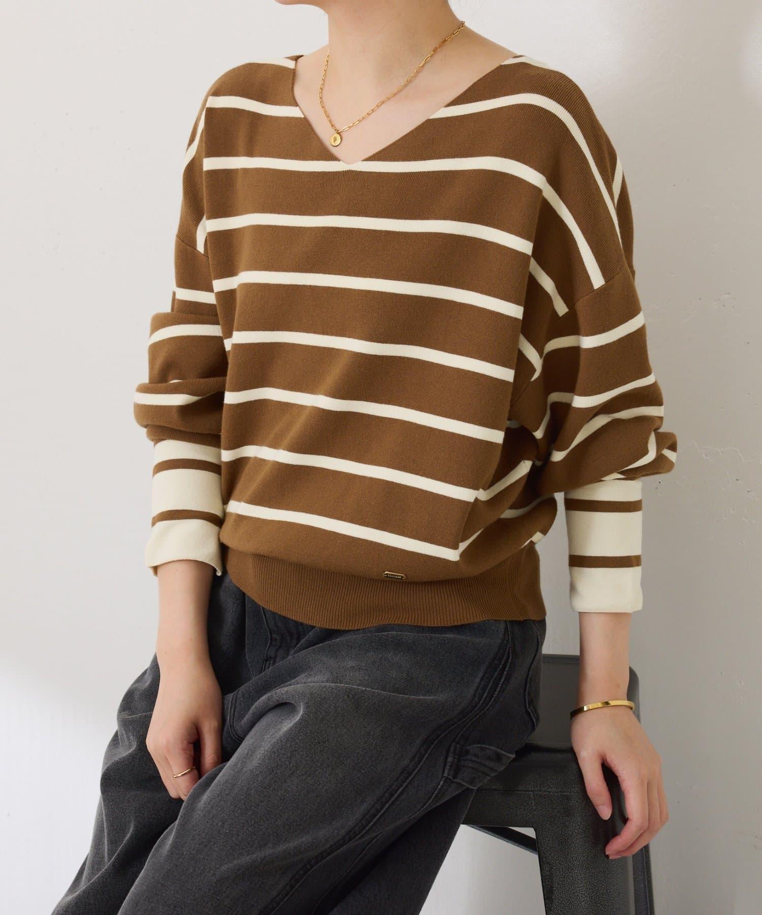 雙向前後設計的多爾曼針織衫,領口為淺 V 和船領。