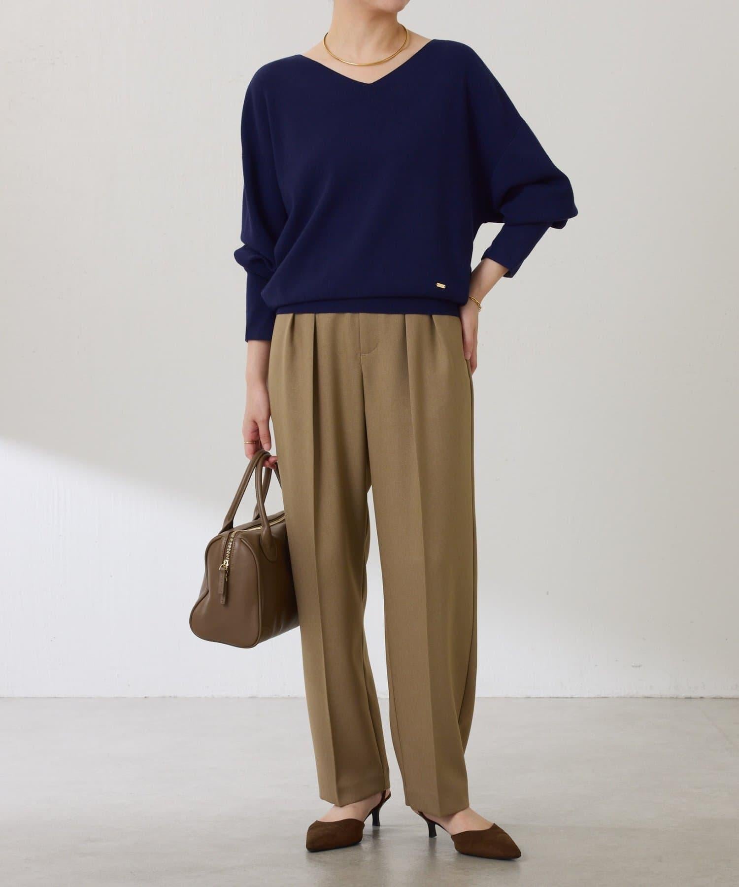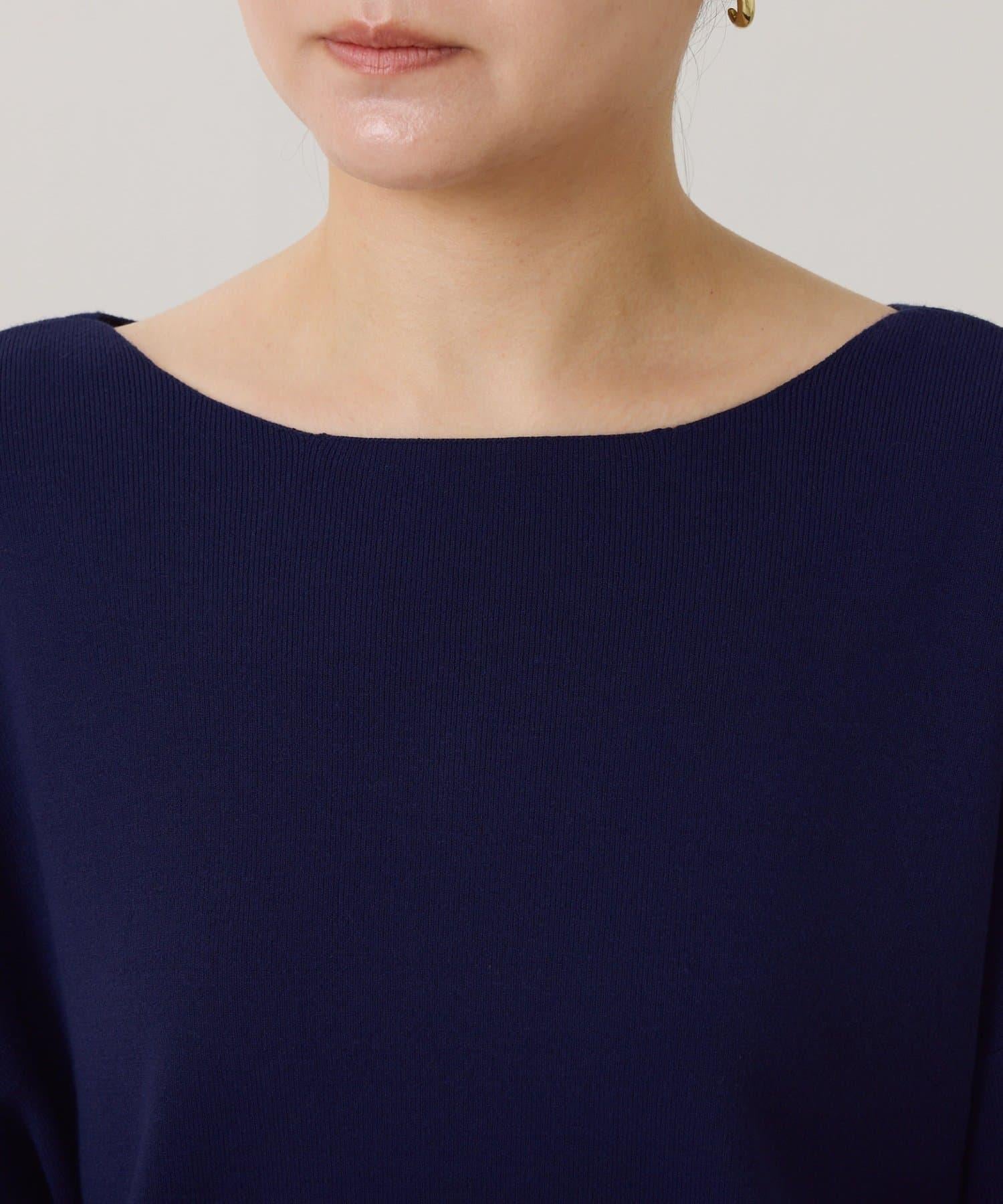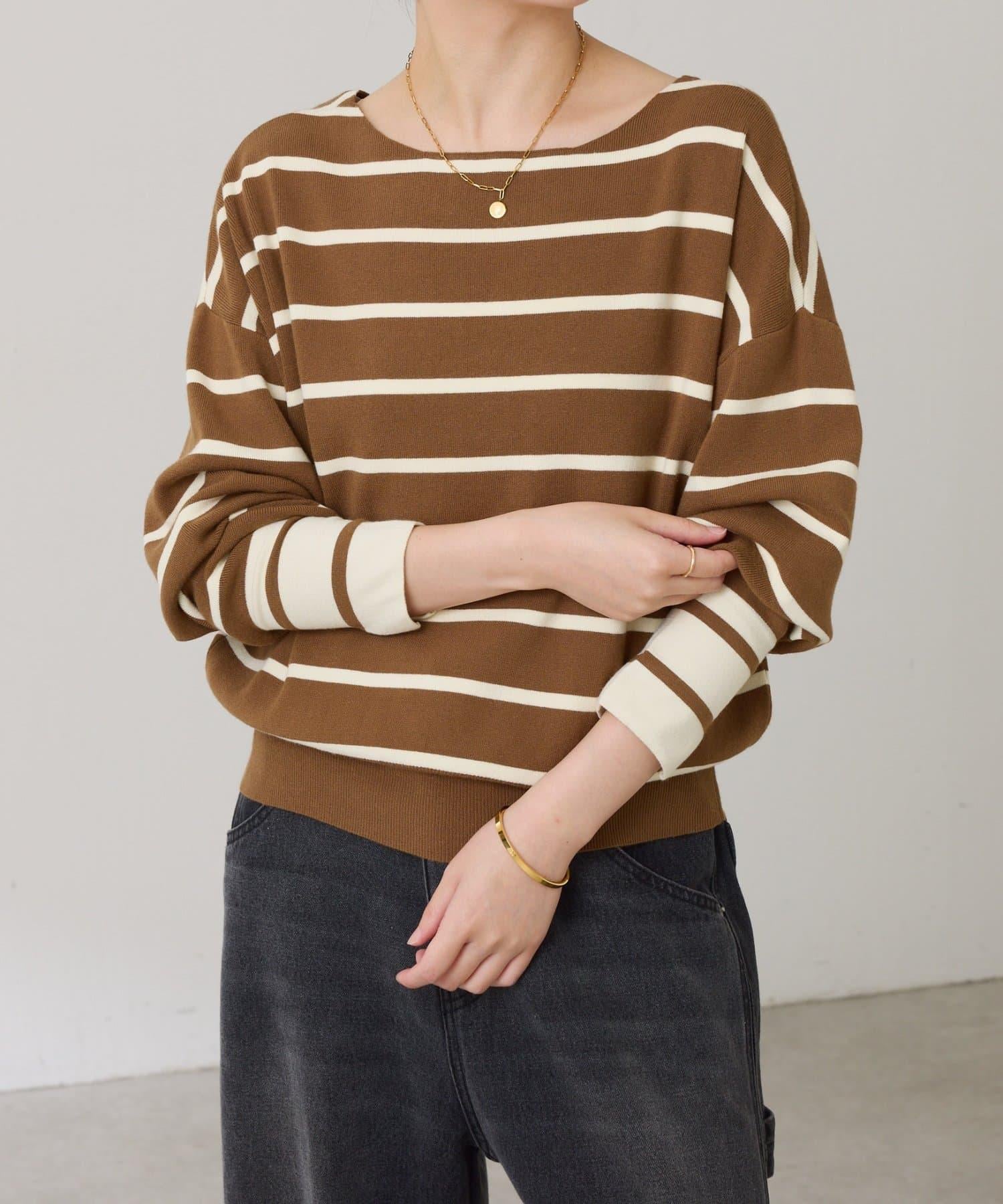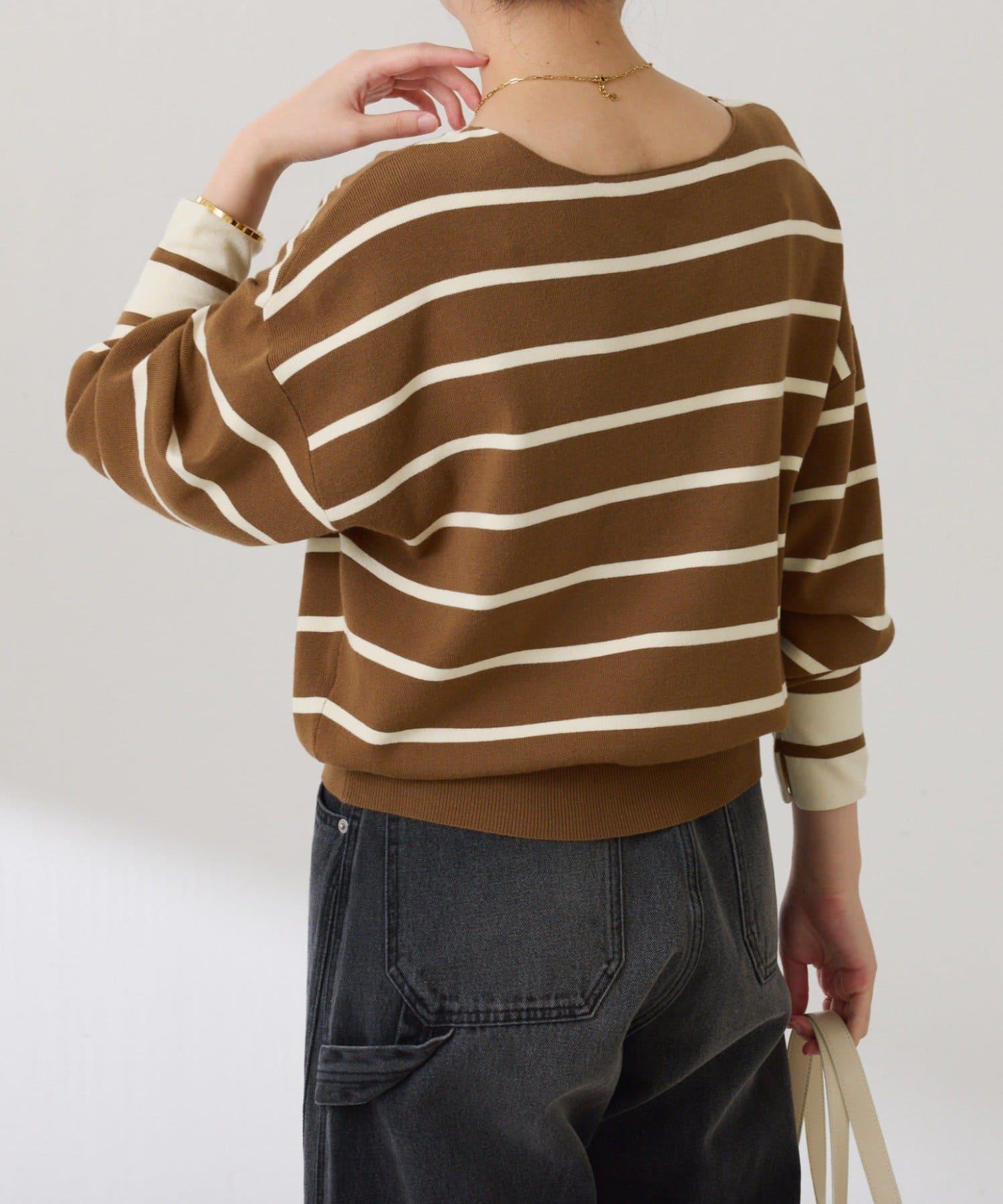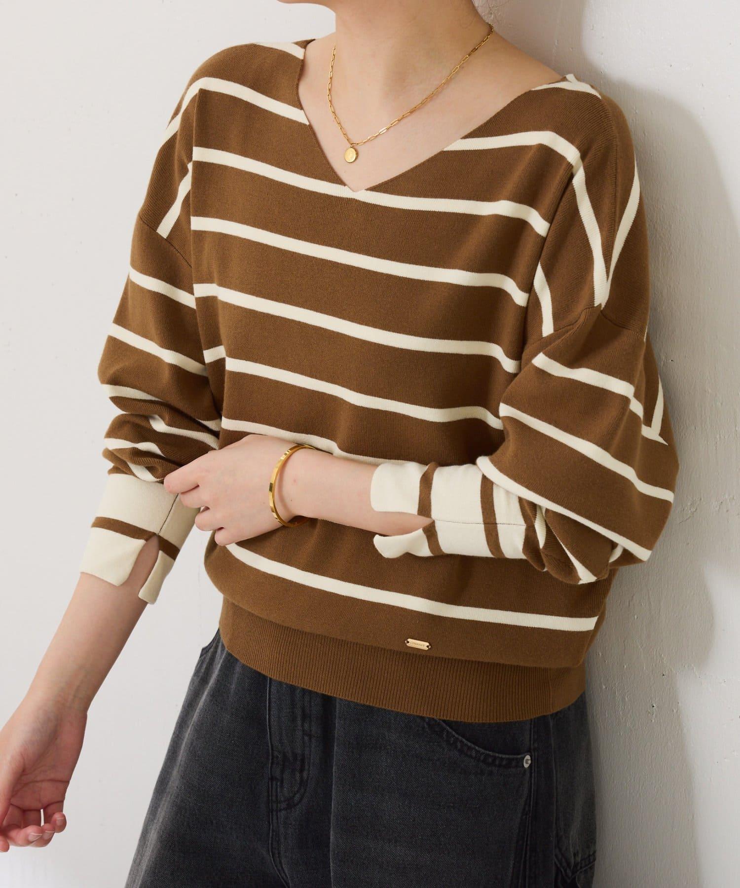 雙向前後設計的多爾曼針織衫,領口為淺 V 和船領。