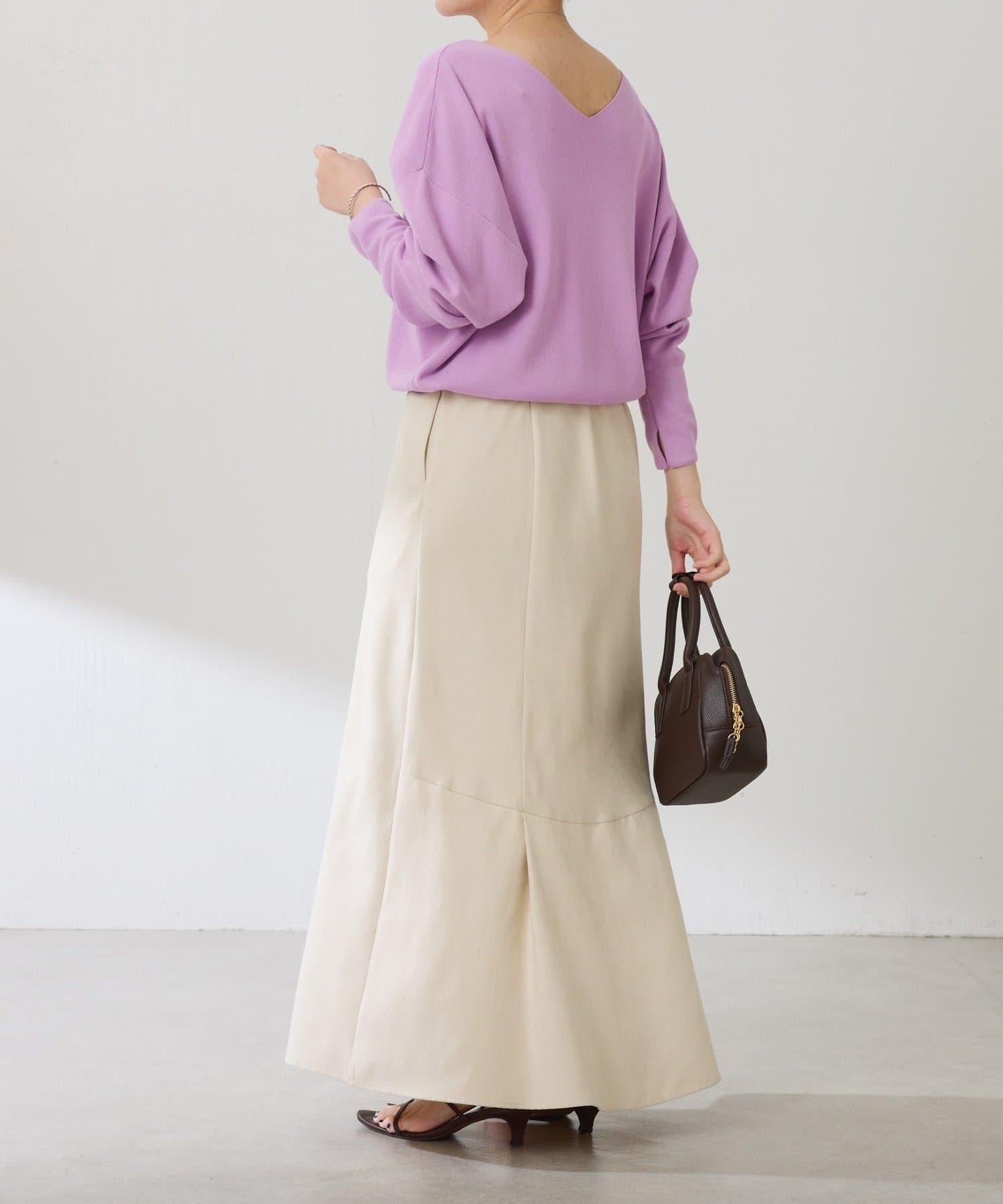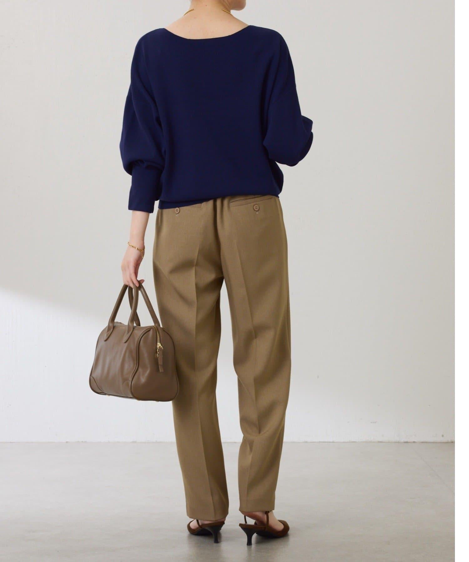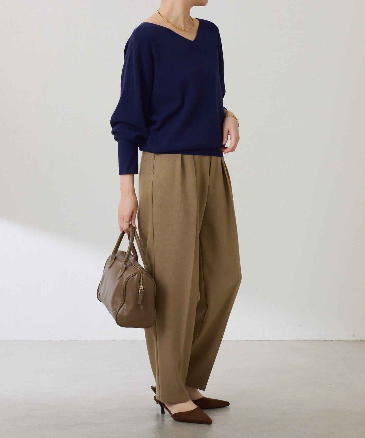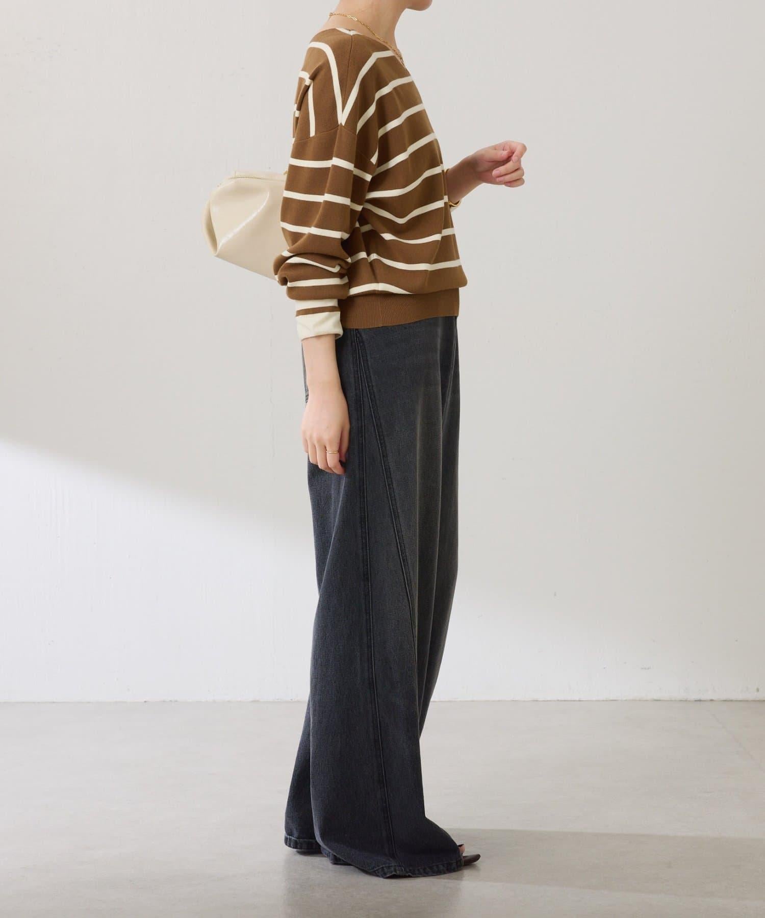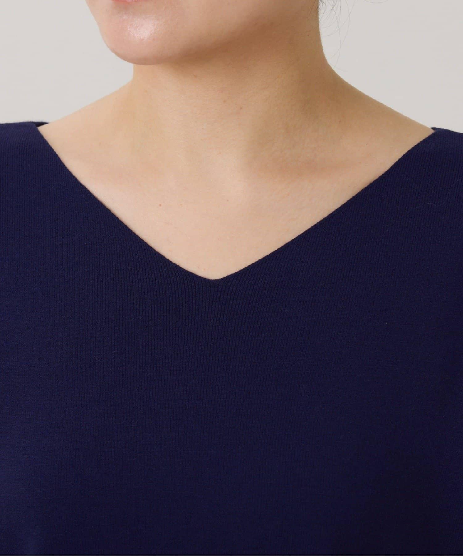 雙向前後設計的多爾曼針織衫,領口為淺 V 和船領。