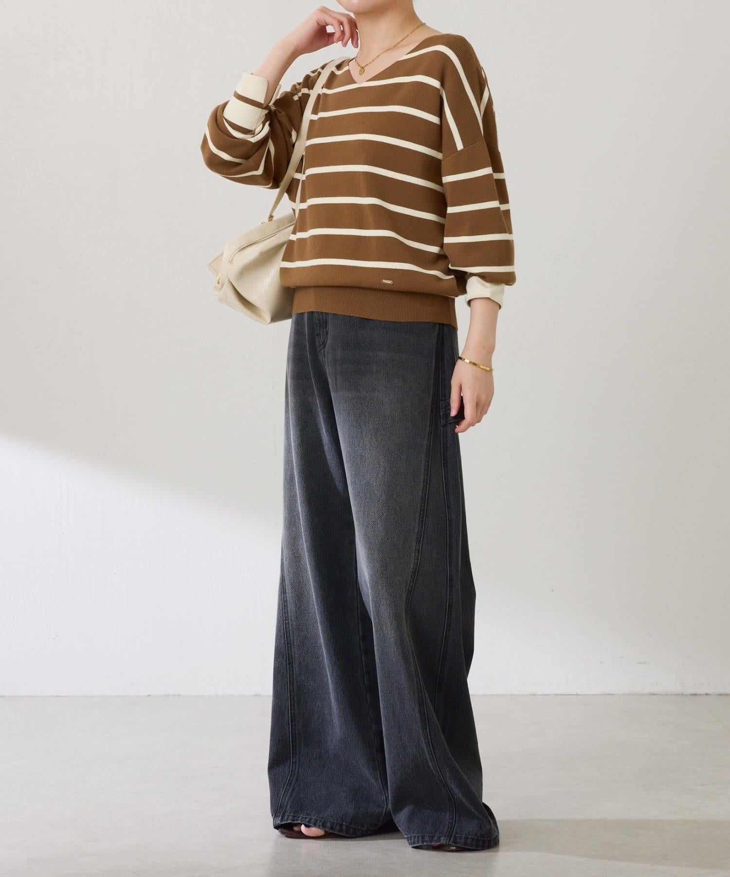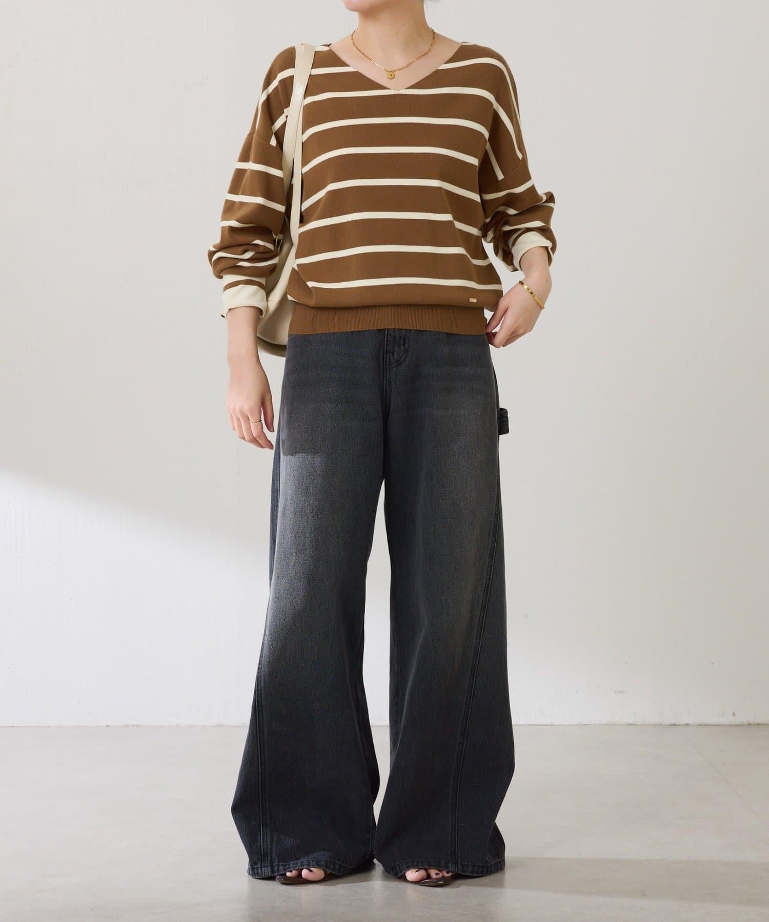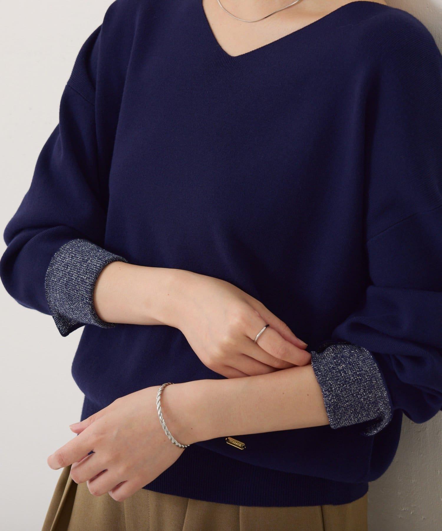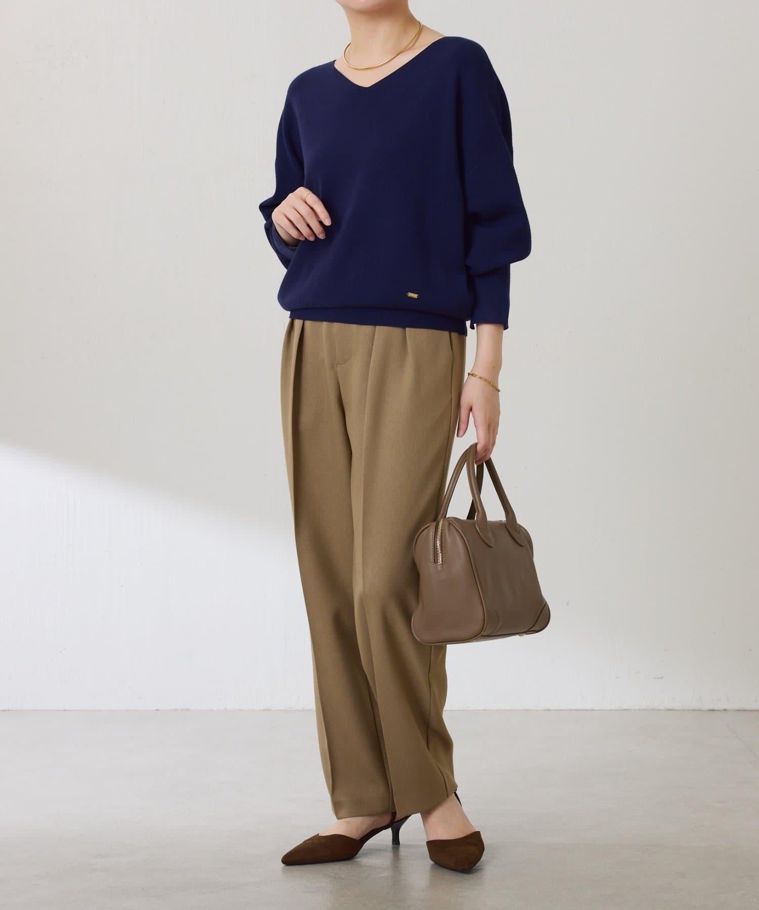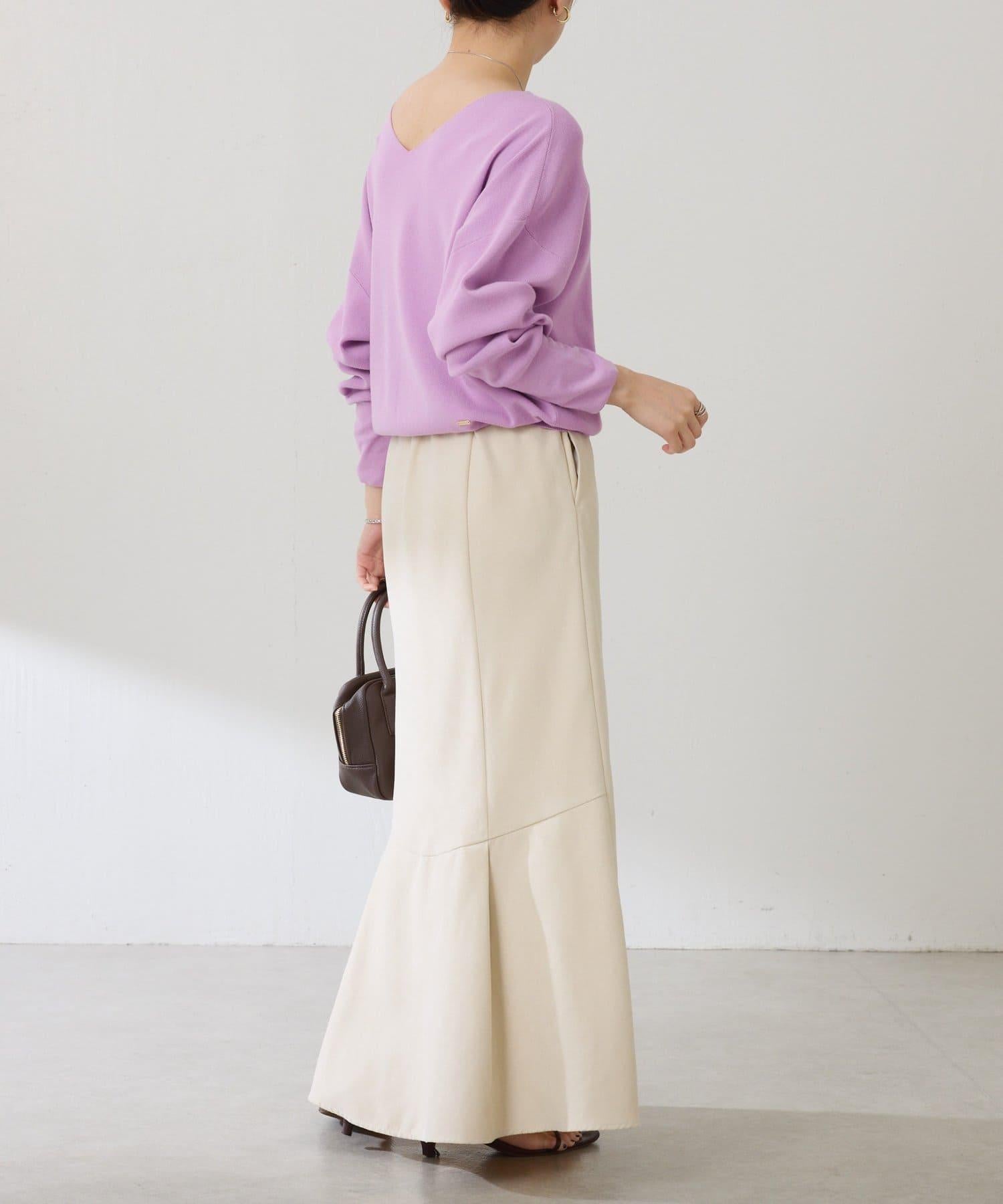 雙向前後設計的多爾曼針織衫,領口為淺 V 和船領。