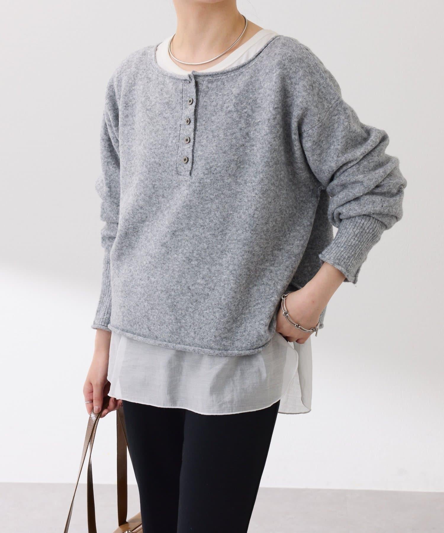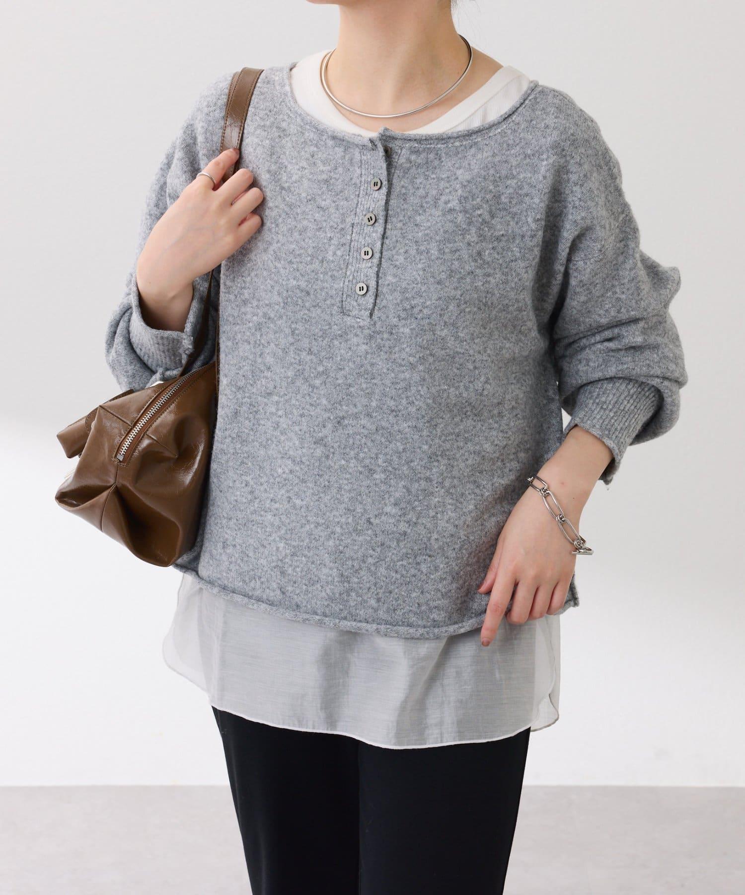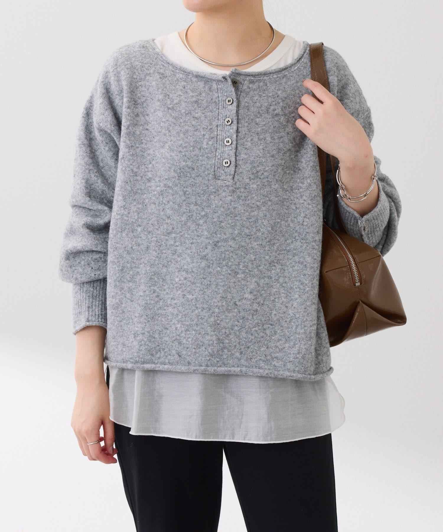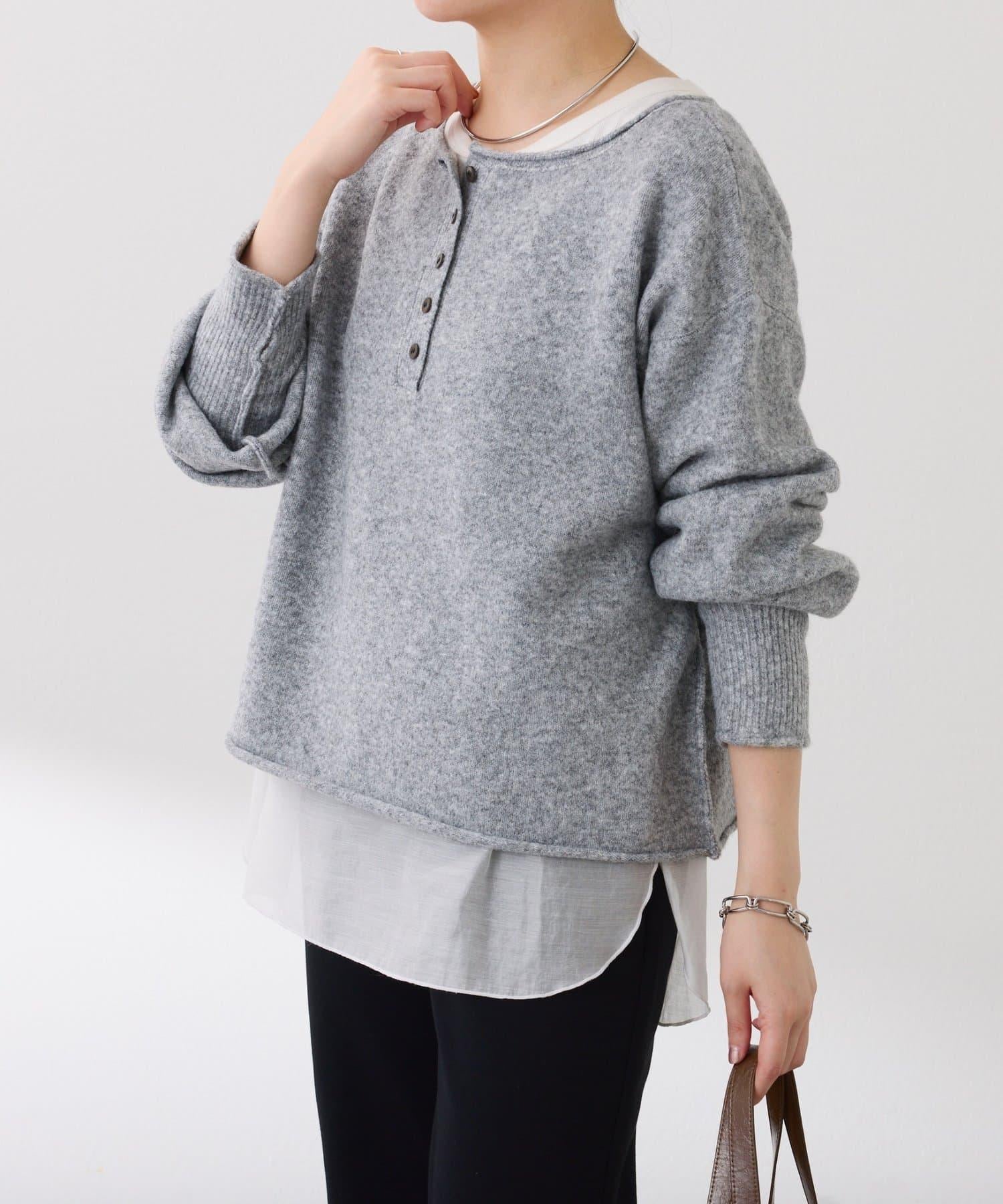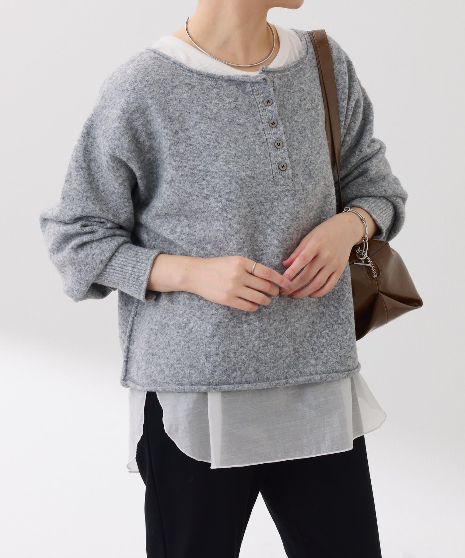 預約商品【前後兩穿】2WAY圓弧下襬亨利領針織衫