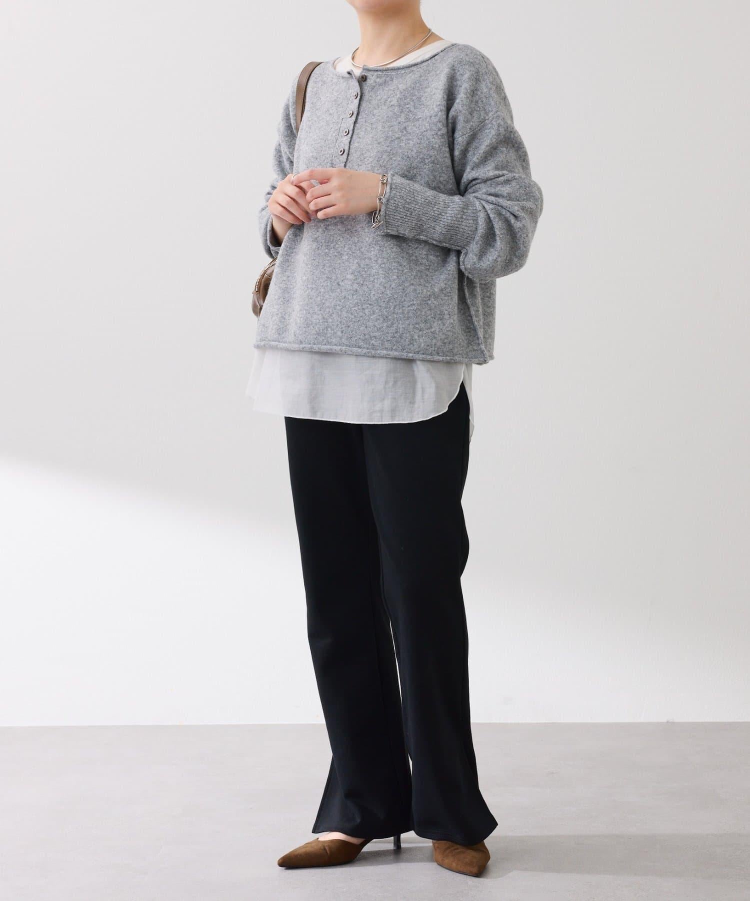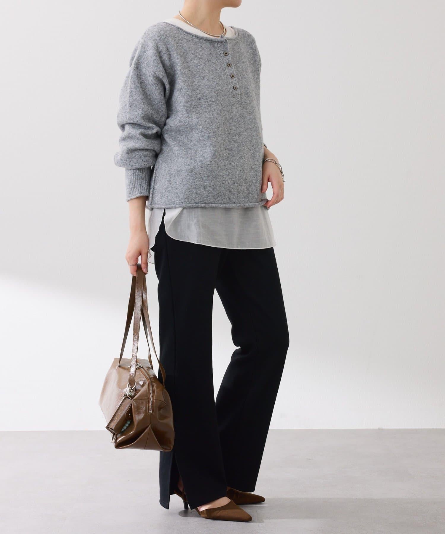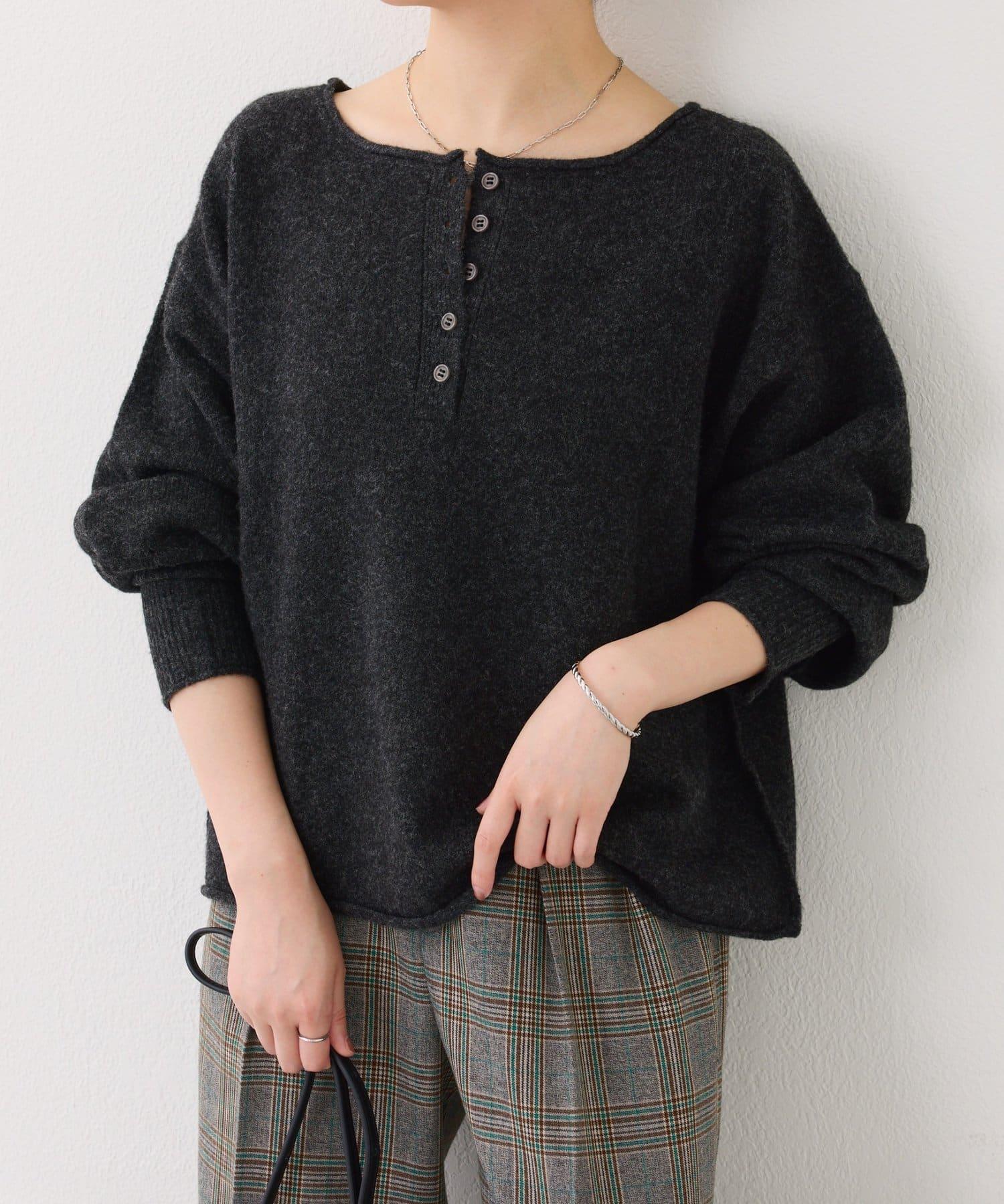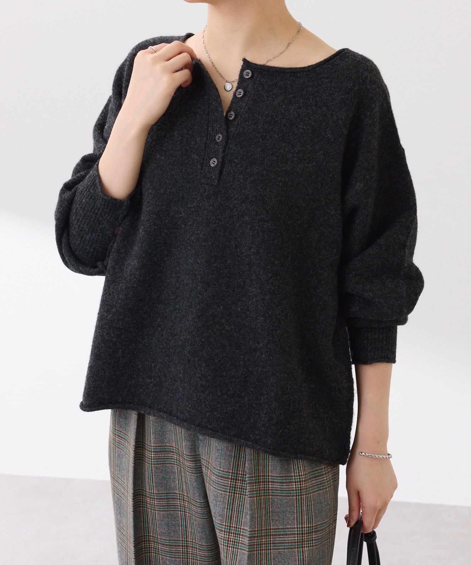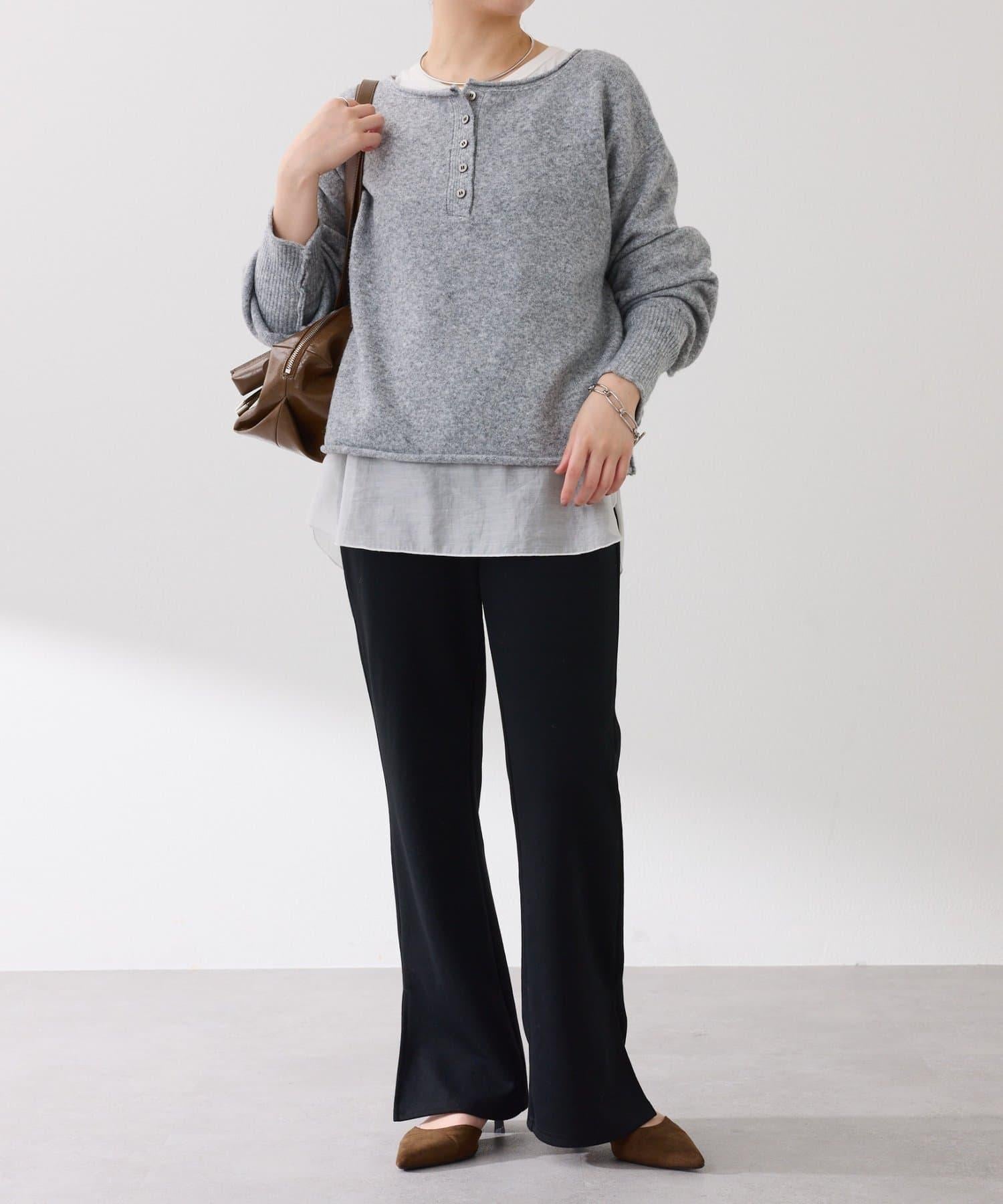 預約商品【前後兩穿】2WAY圓弧下襬亨利領針織衫