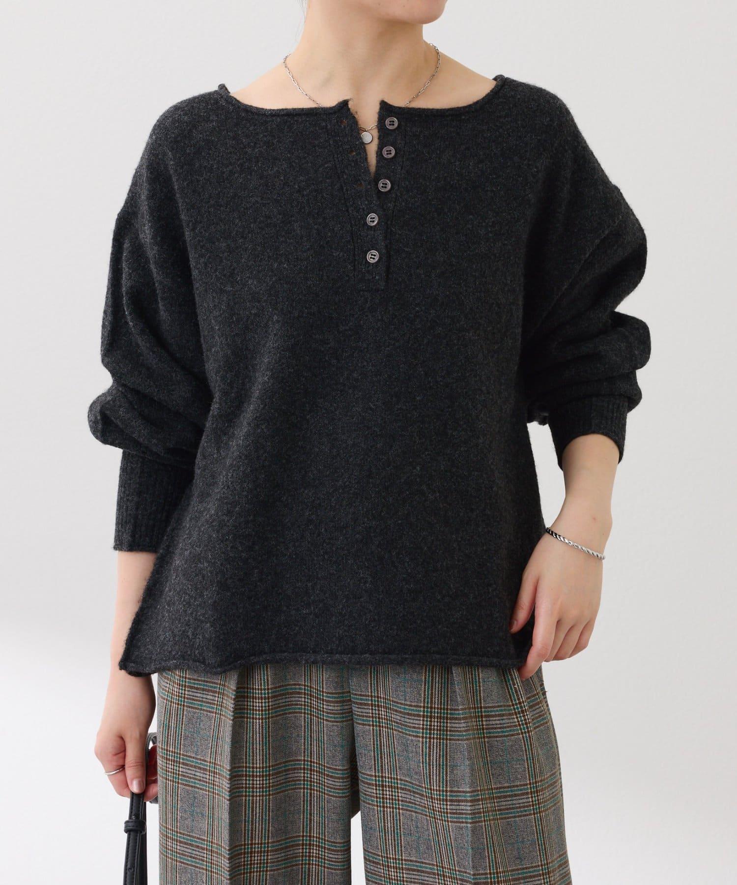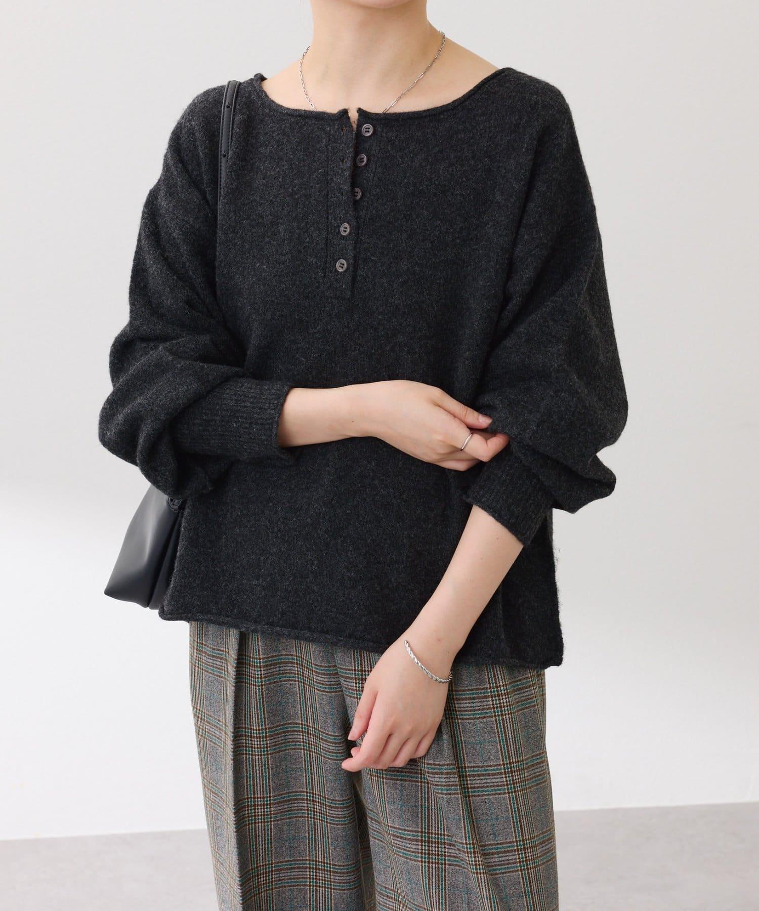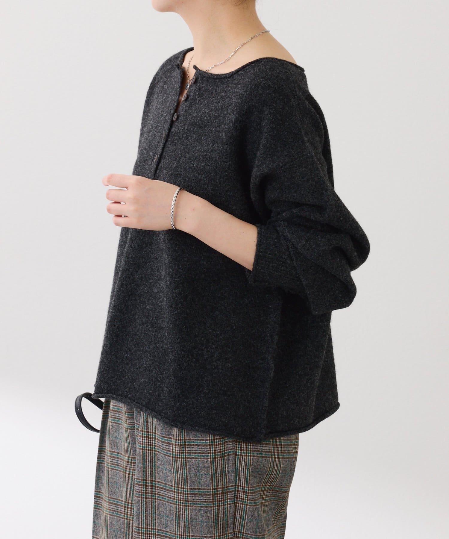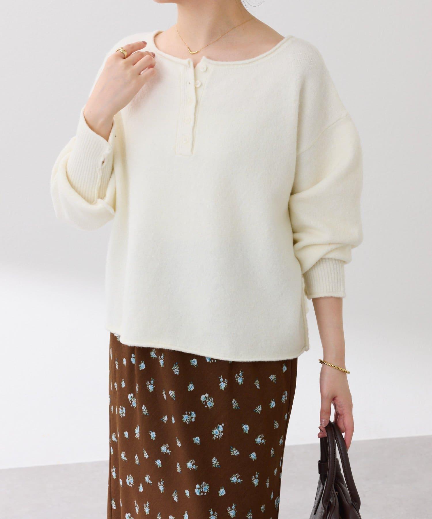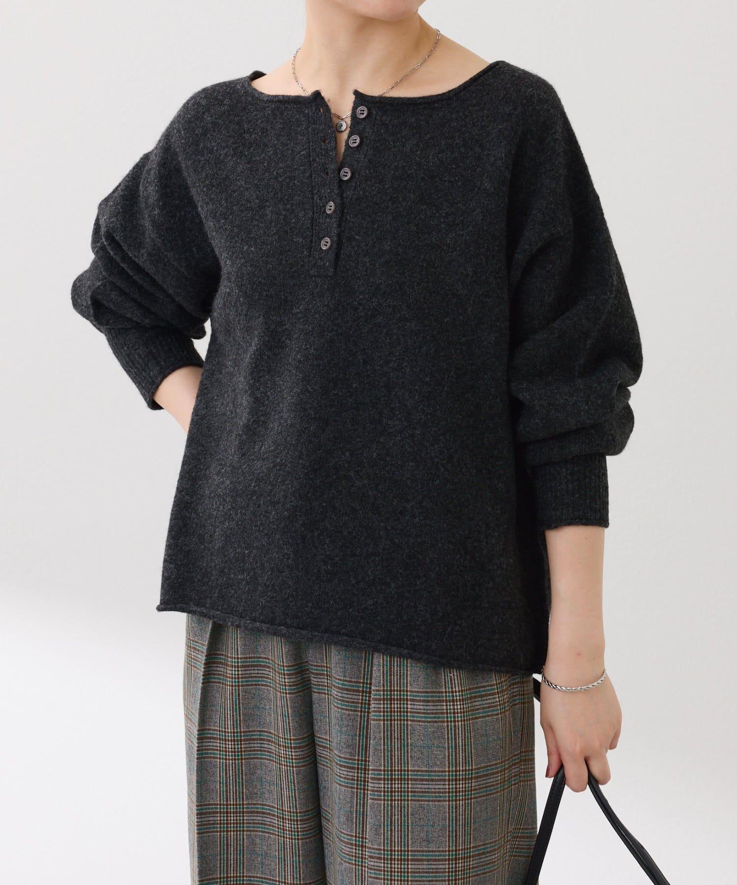 預約商品【前後兩穿】2WAY圓弧下襬亨利領針織衫
