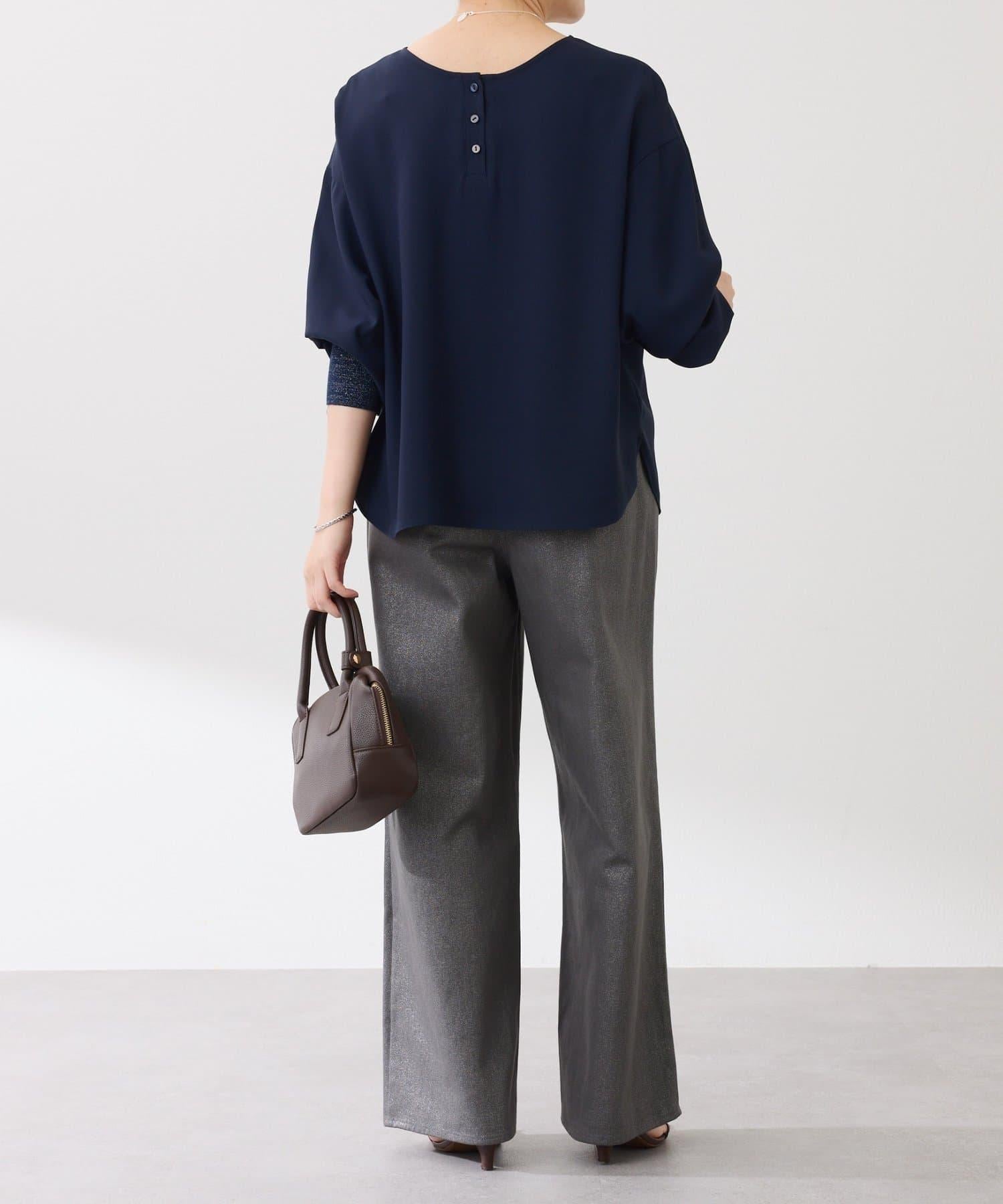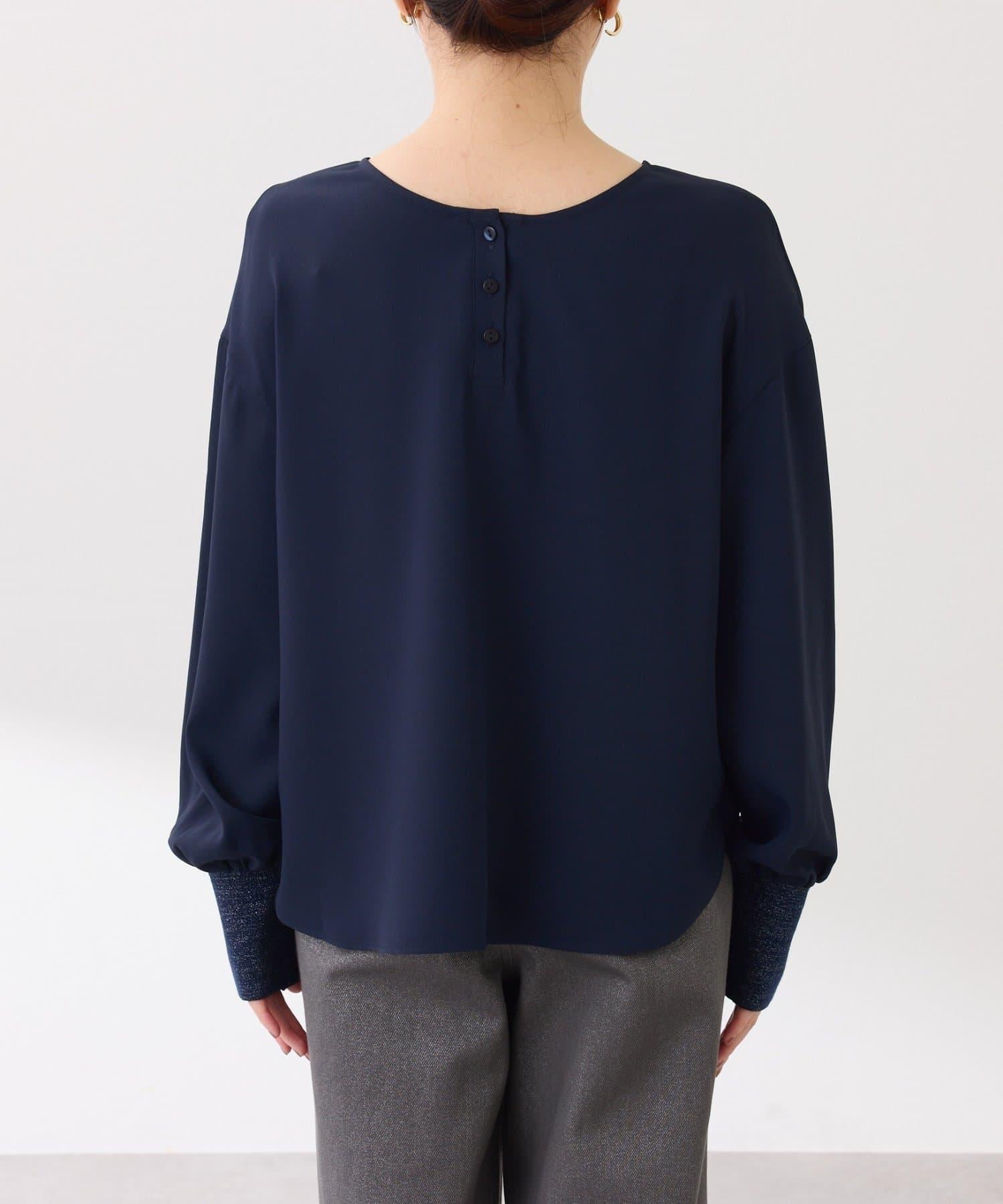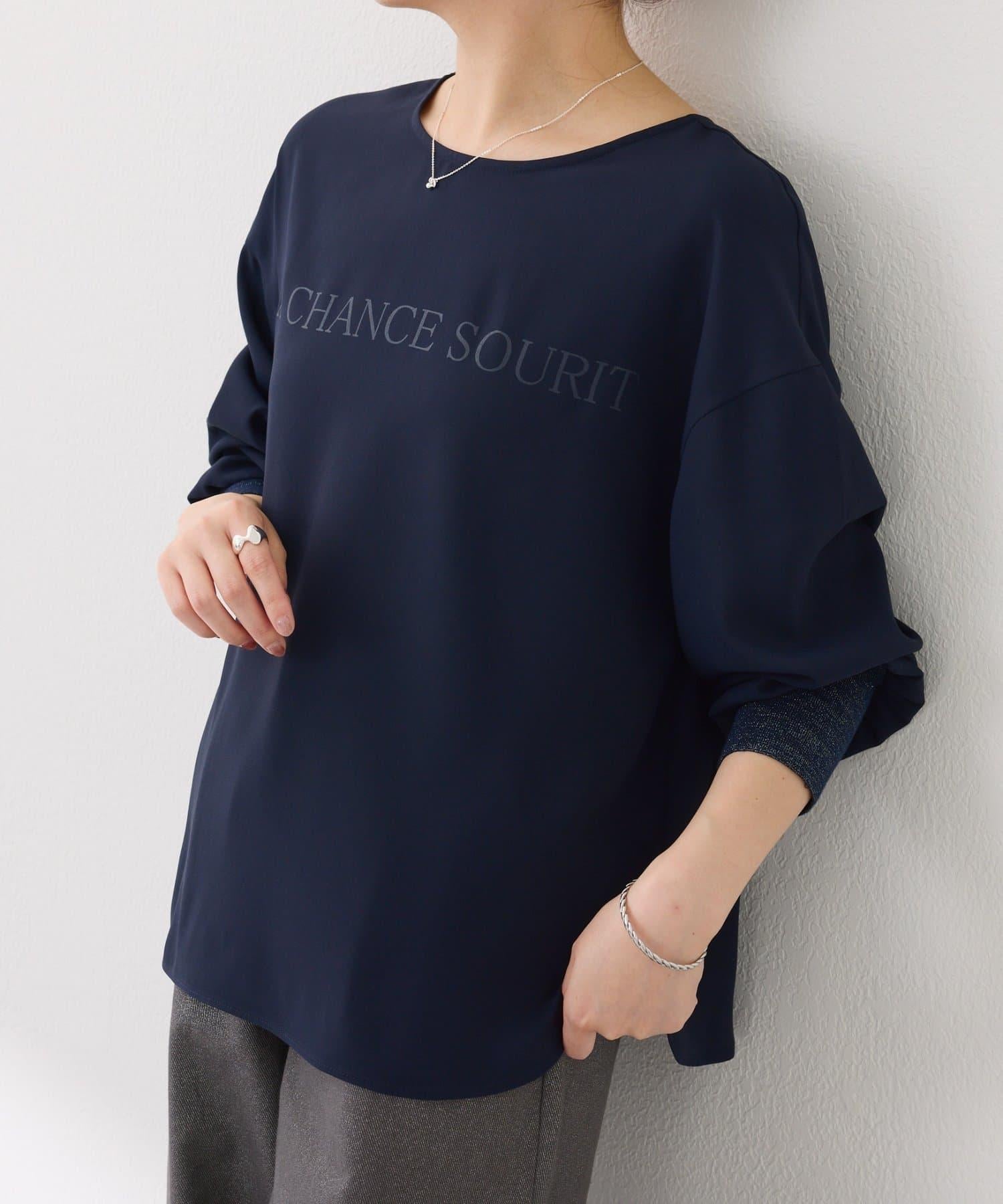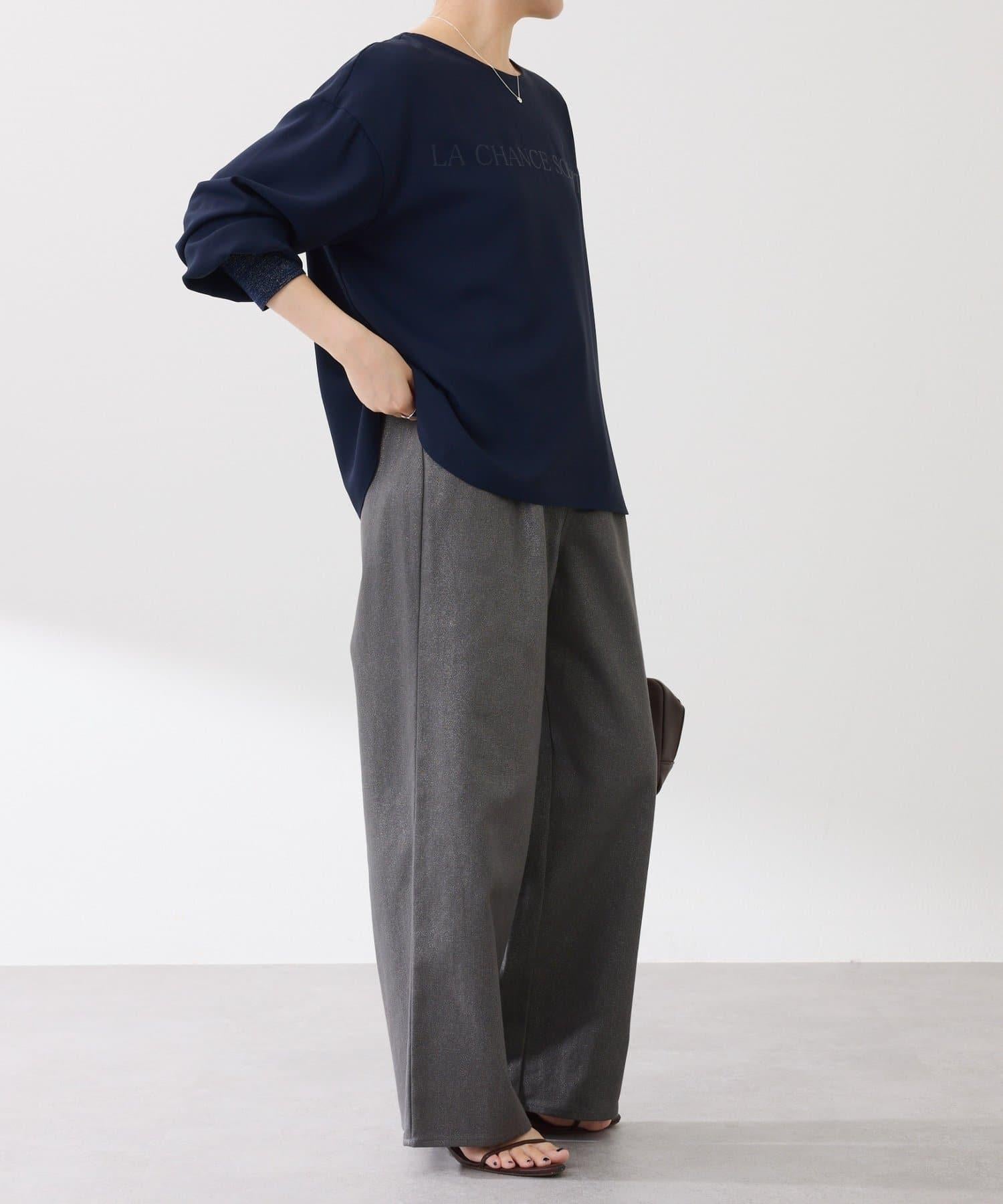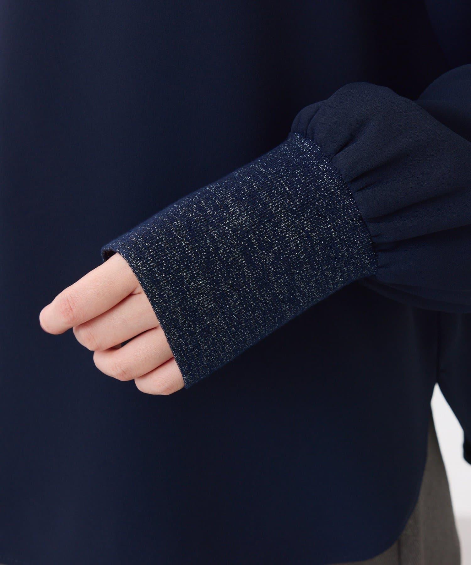 預約商品【前後兩穿】2WAY字母袖金銀絲羅紋長袖T恤/襯衫/禮服