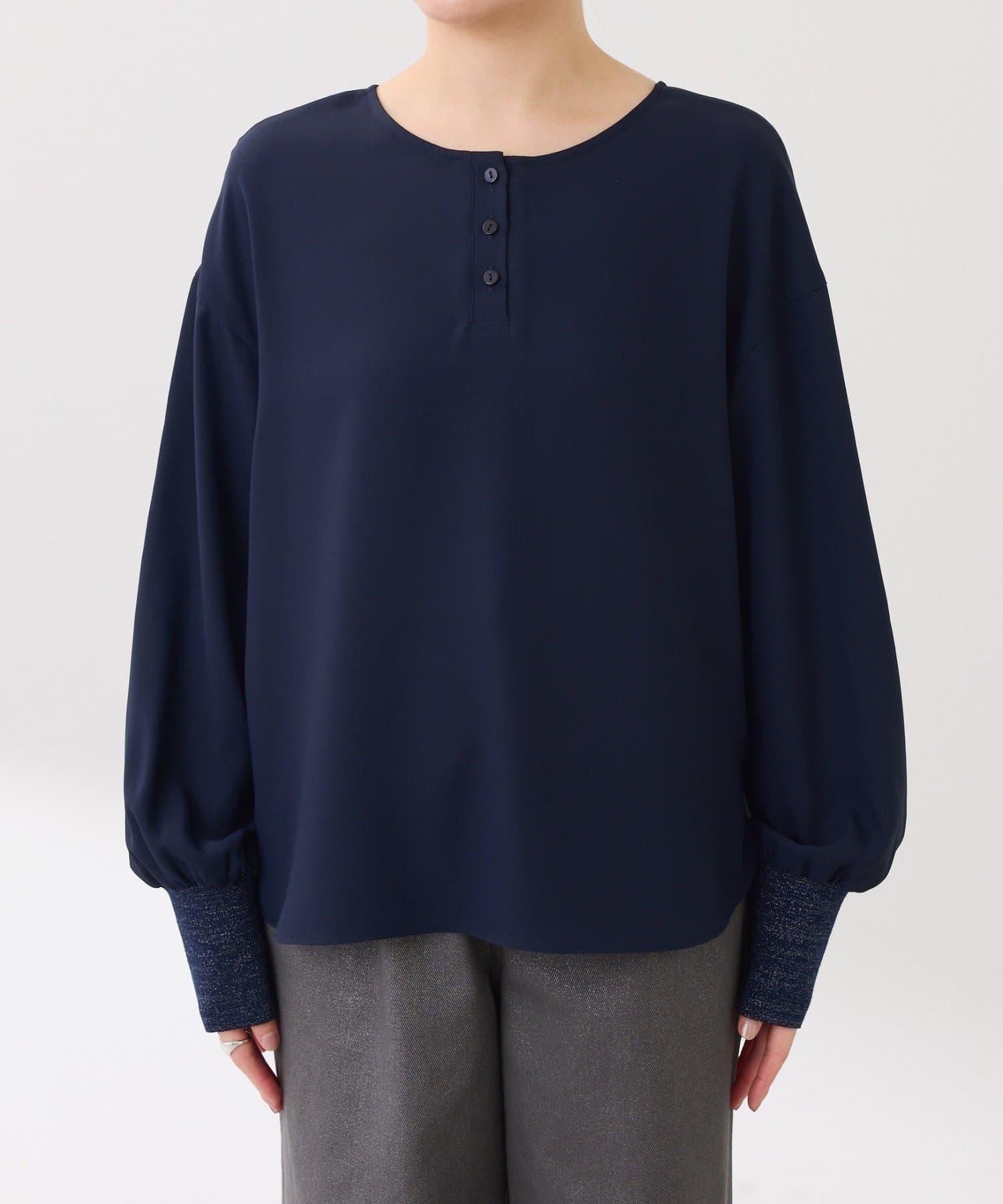 【前後兩穿】2WAY字母袖金銀絲羅紋長袖T恤/襯衫/禮服
