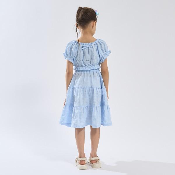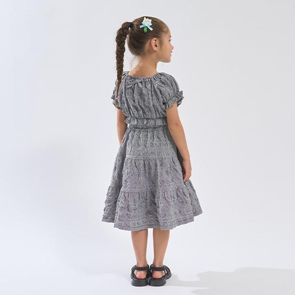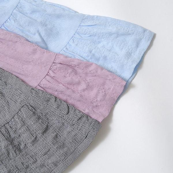 上衣長度緊湊,領口有鬆緊帶,可前後穿著,方便孩子獨自穿脫。