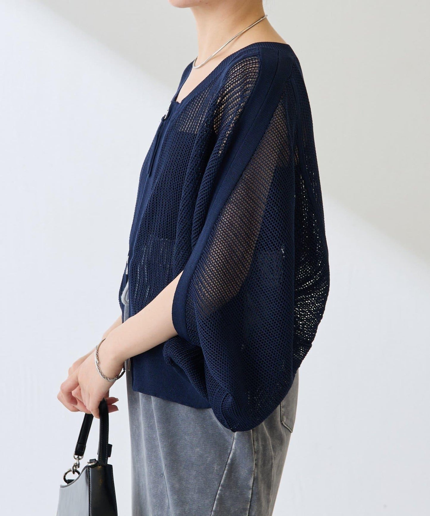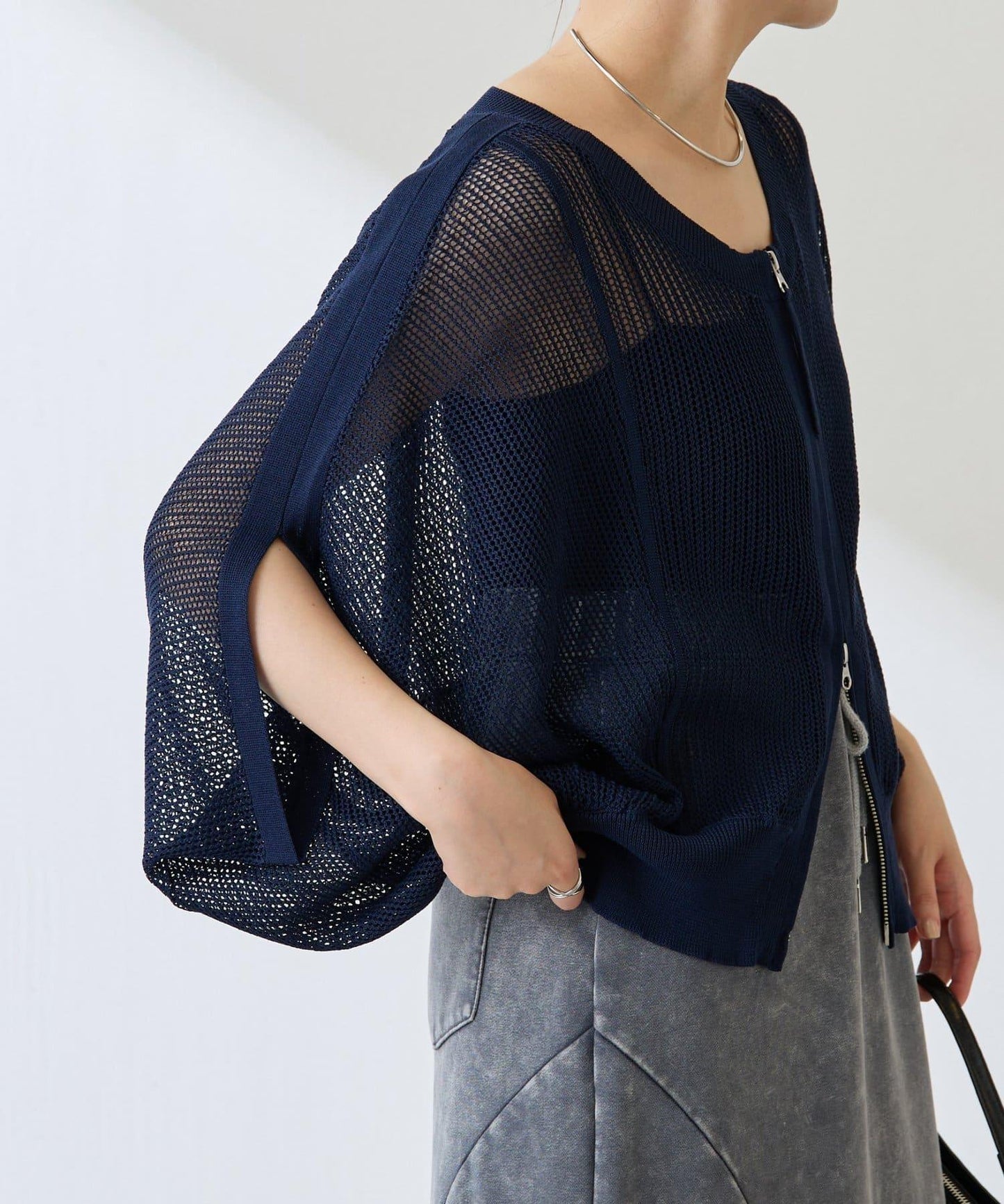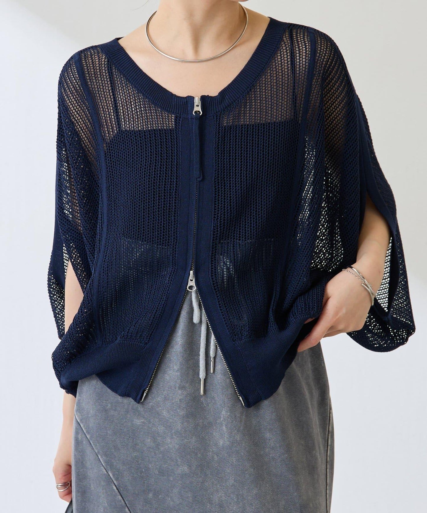 【前後2WAY/夏季針織衫】2WAY寬鬆袖針織開衫