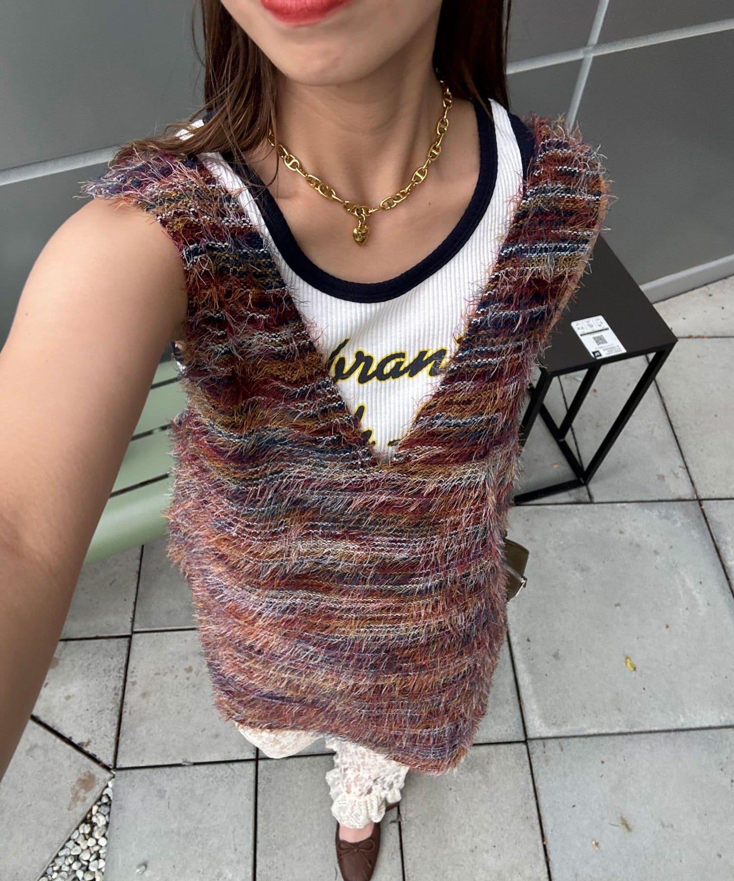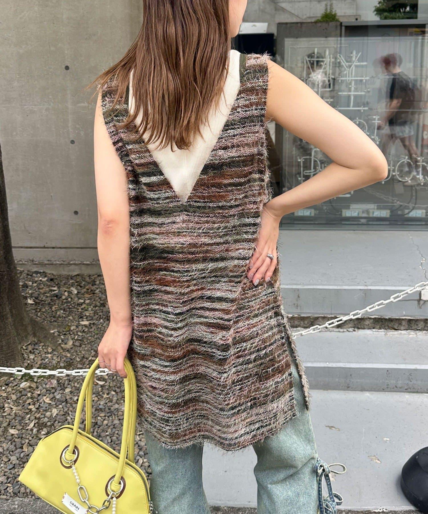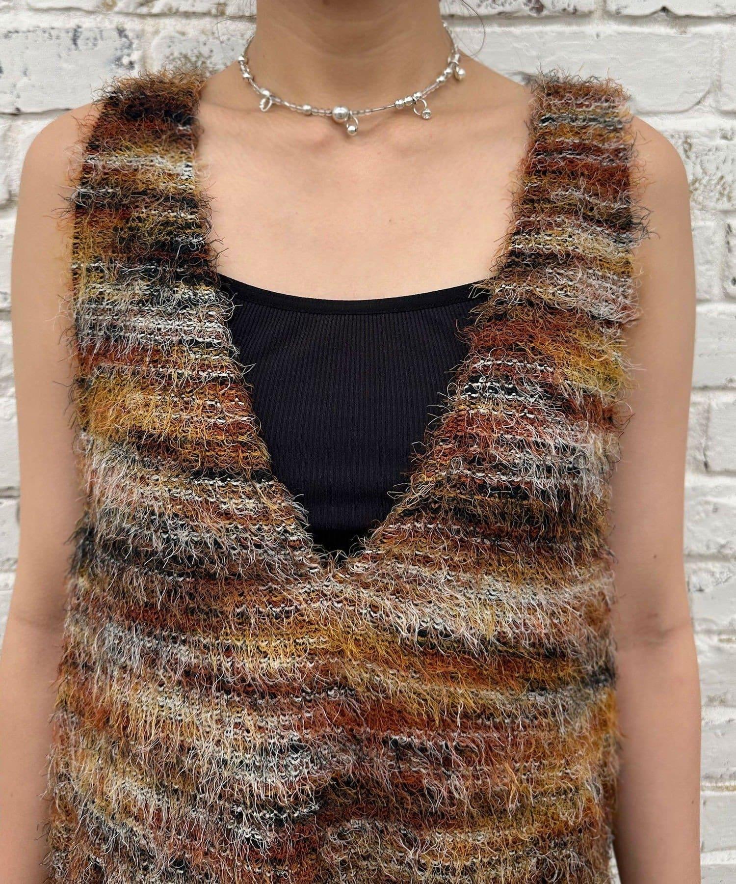 輕盈蓬鬆的混合毛茸茸針織馬甲。