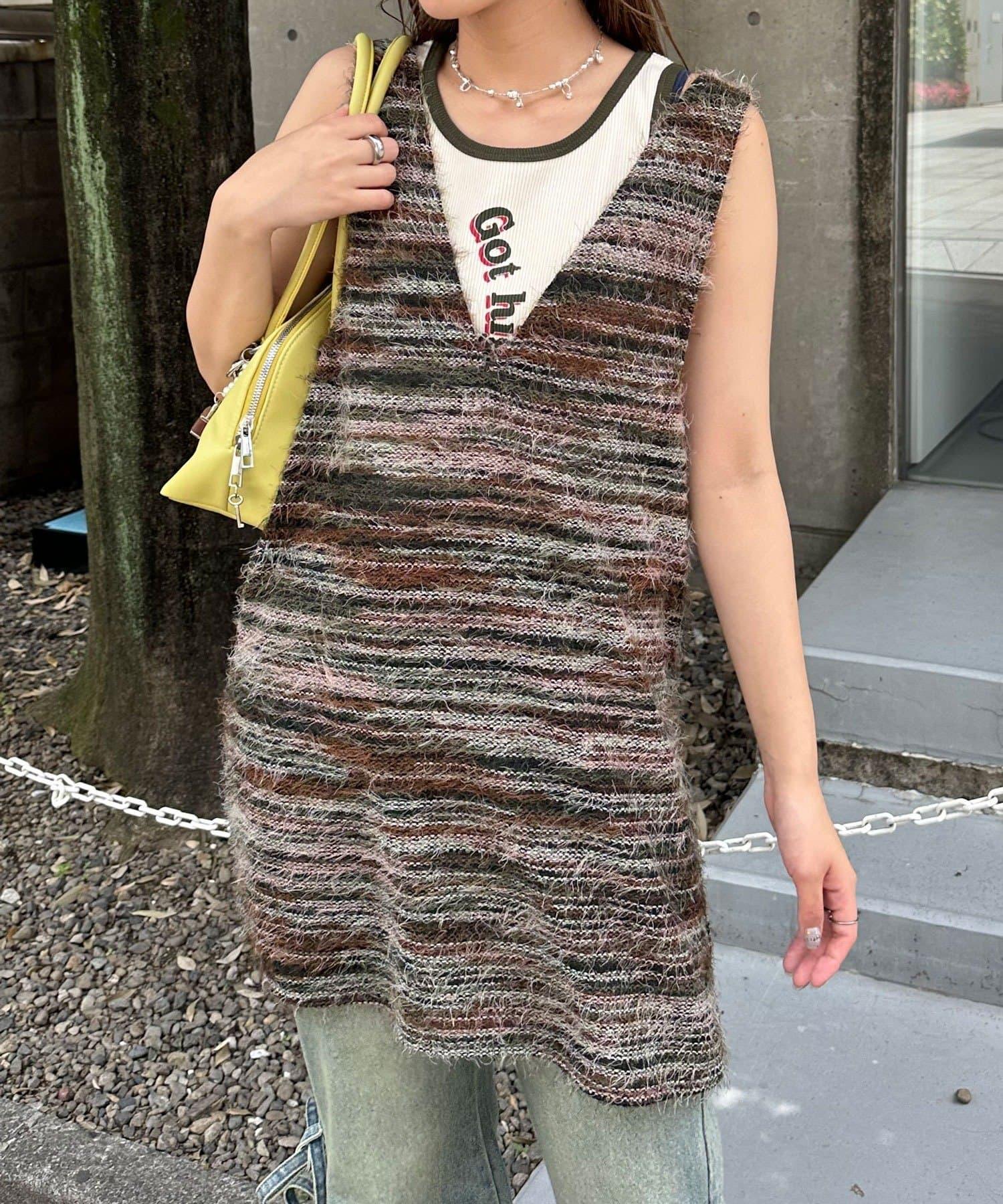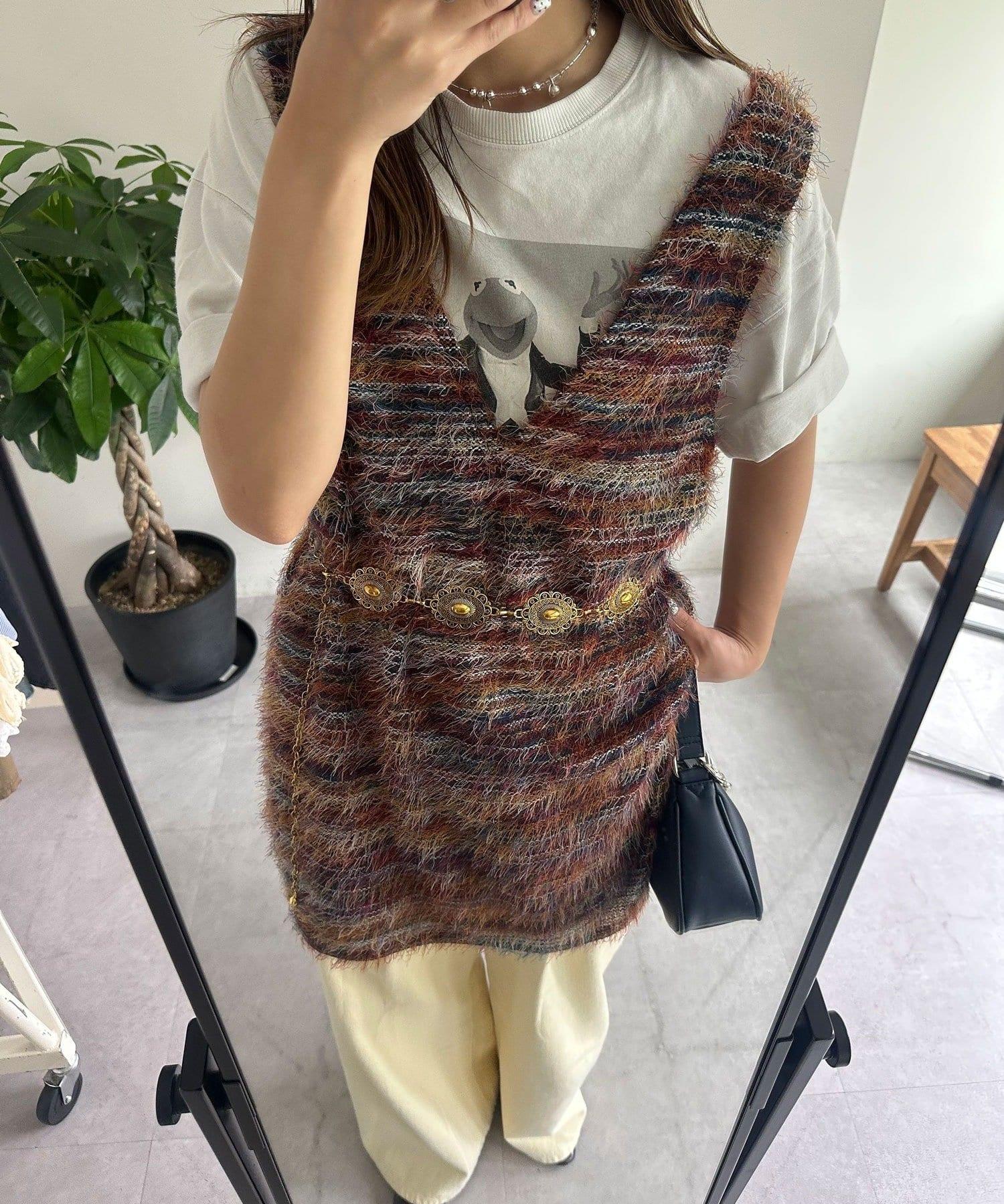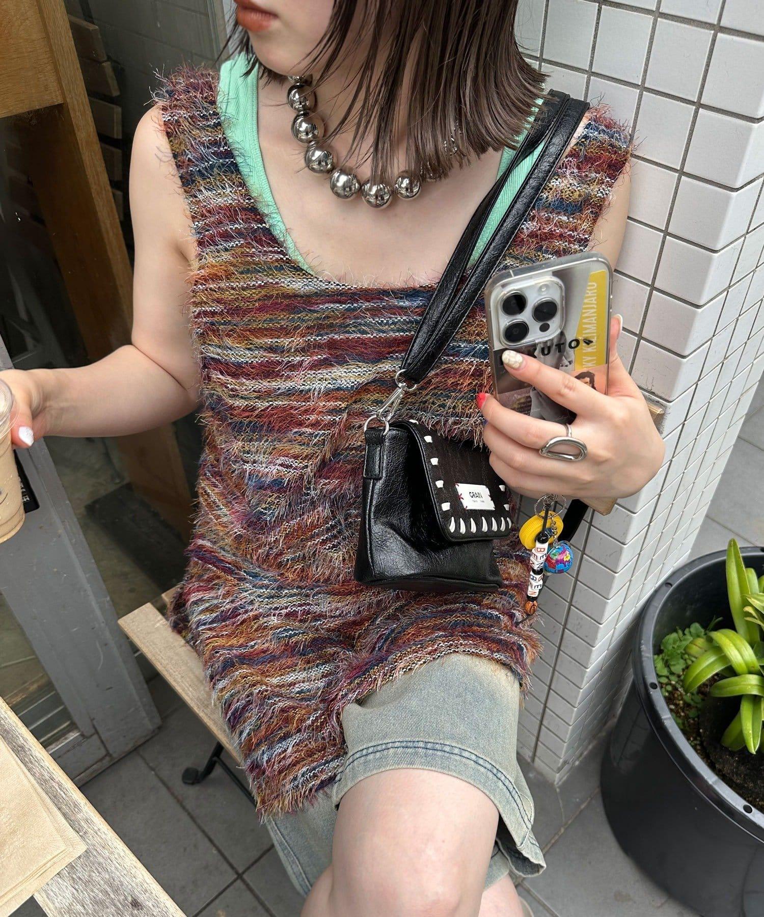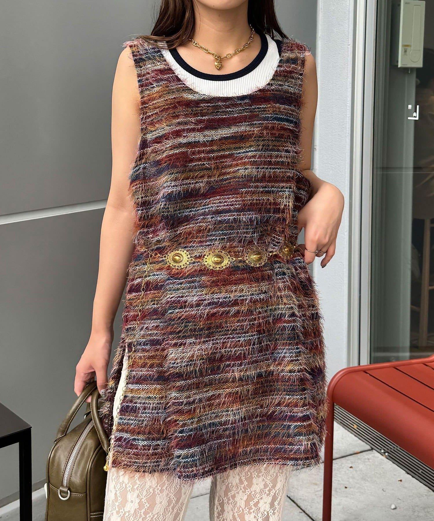 輕盈蓬鬆的混合毛茸茸針織馬甲。