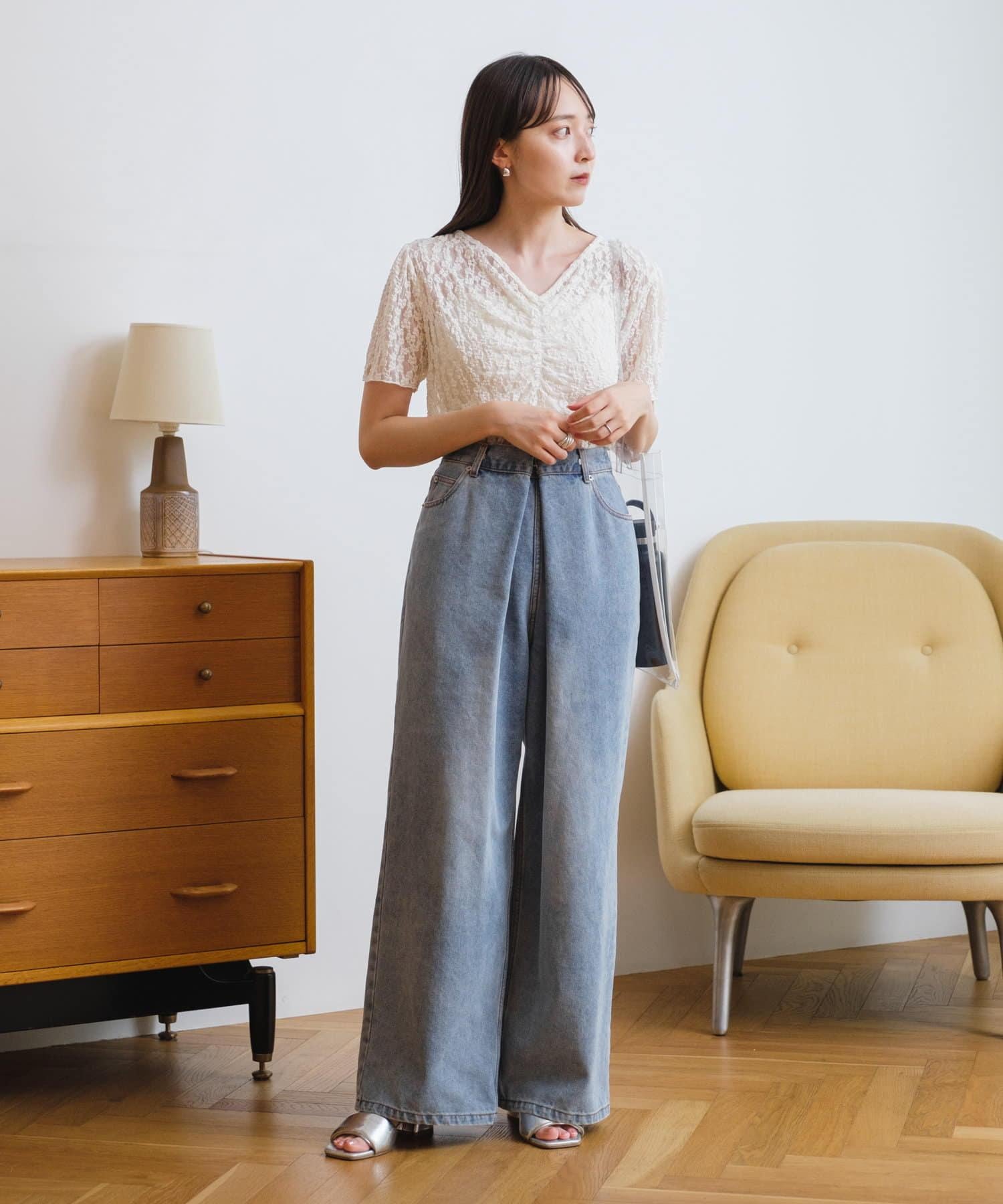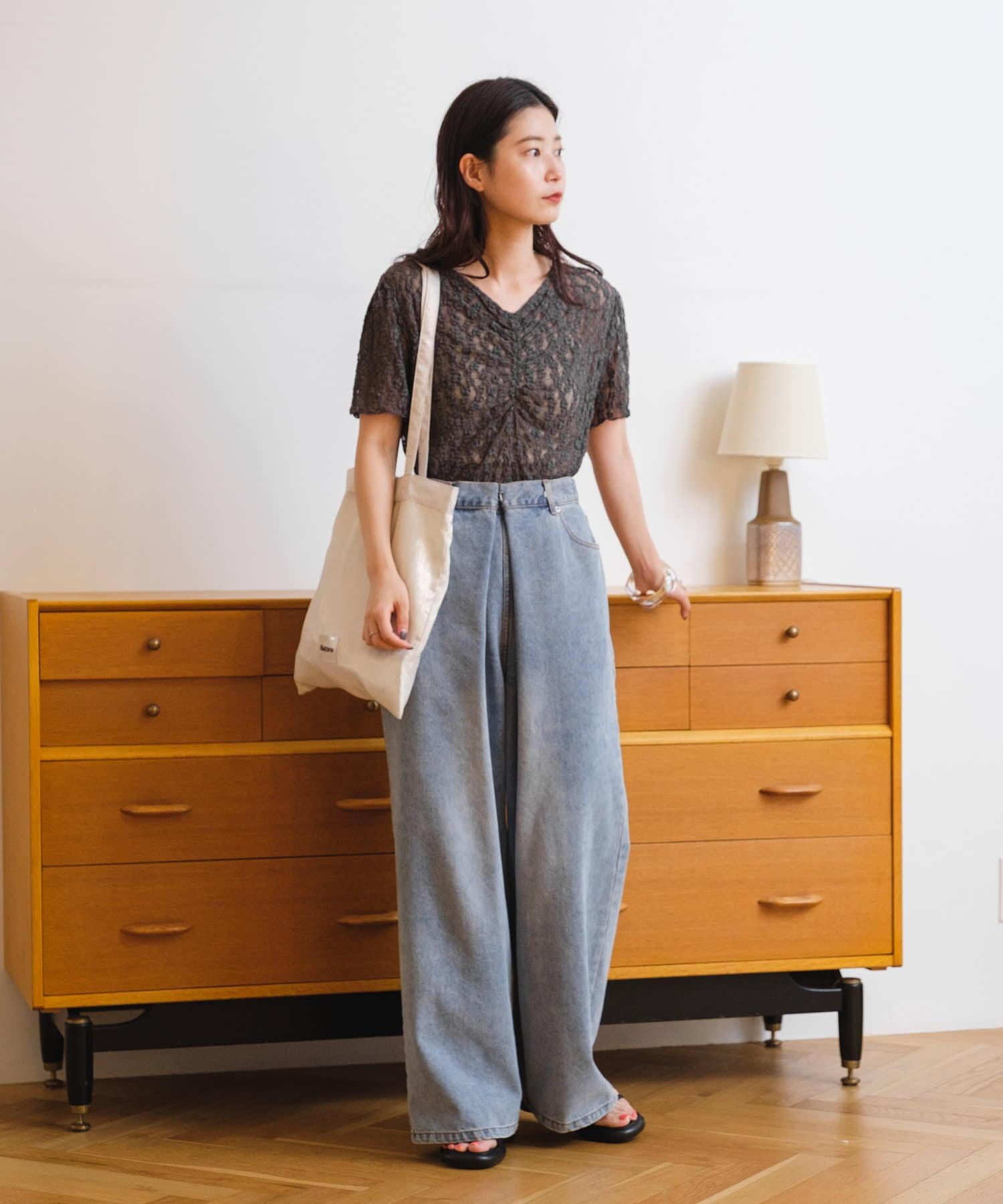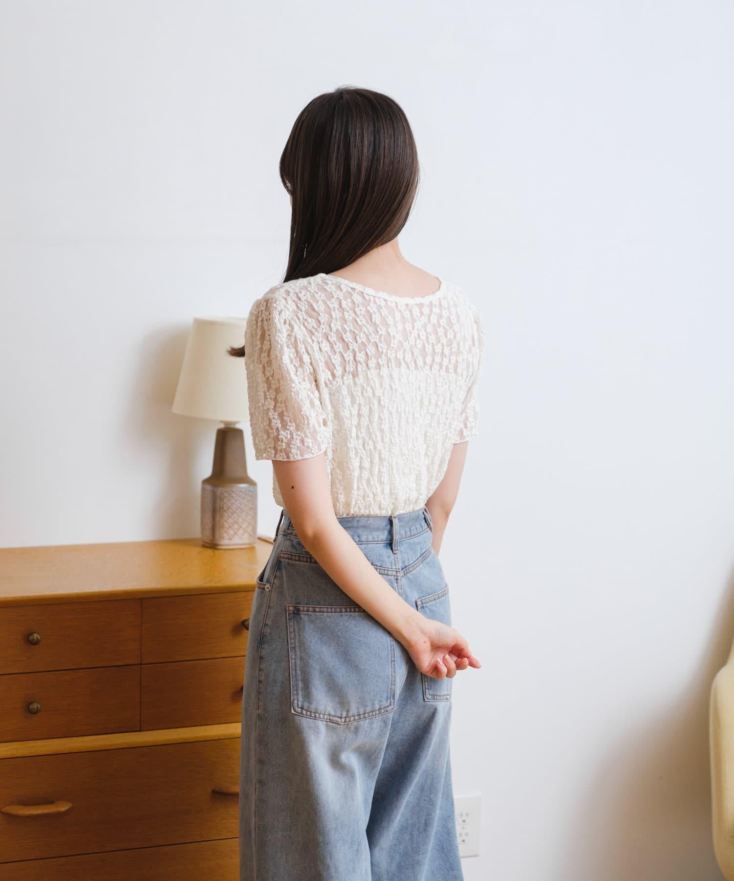 使用精緻的蕾絲材料。當與粗糙表面摩擦,或被包、皮帶或尖銳物品夾住時,蕾絲的縷線很容易浮起,可能會被割斷。請小心處理。