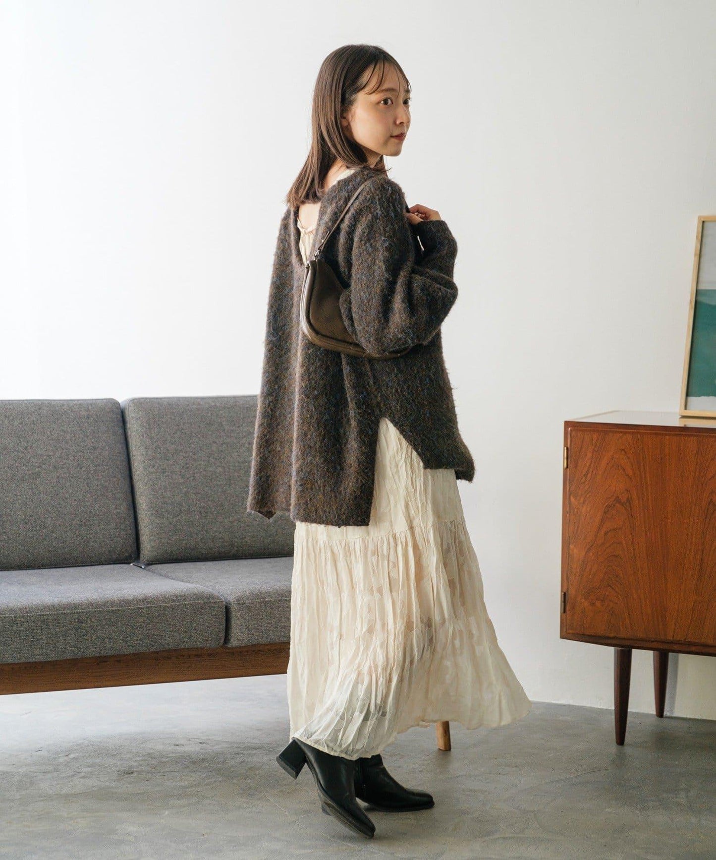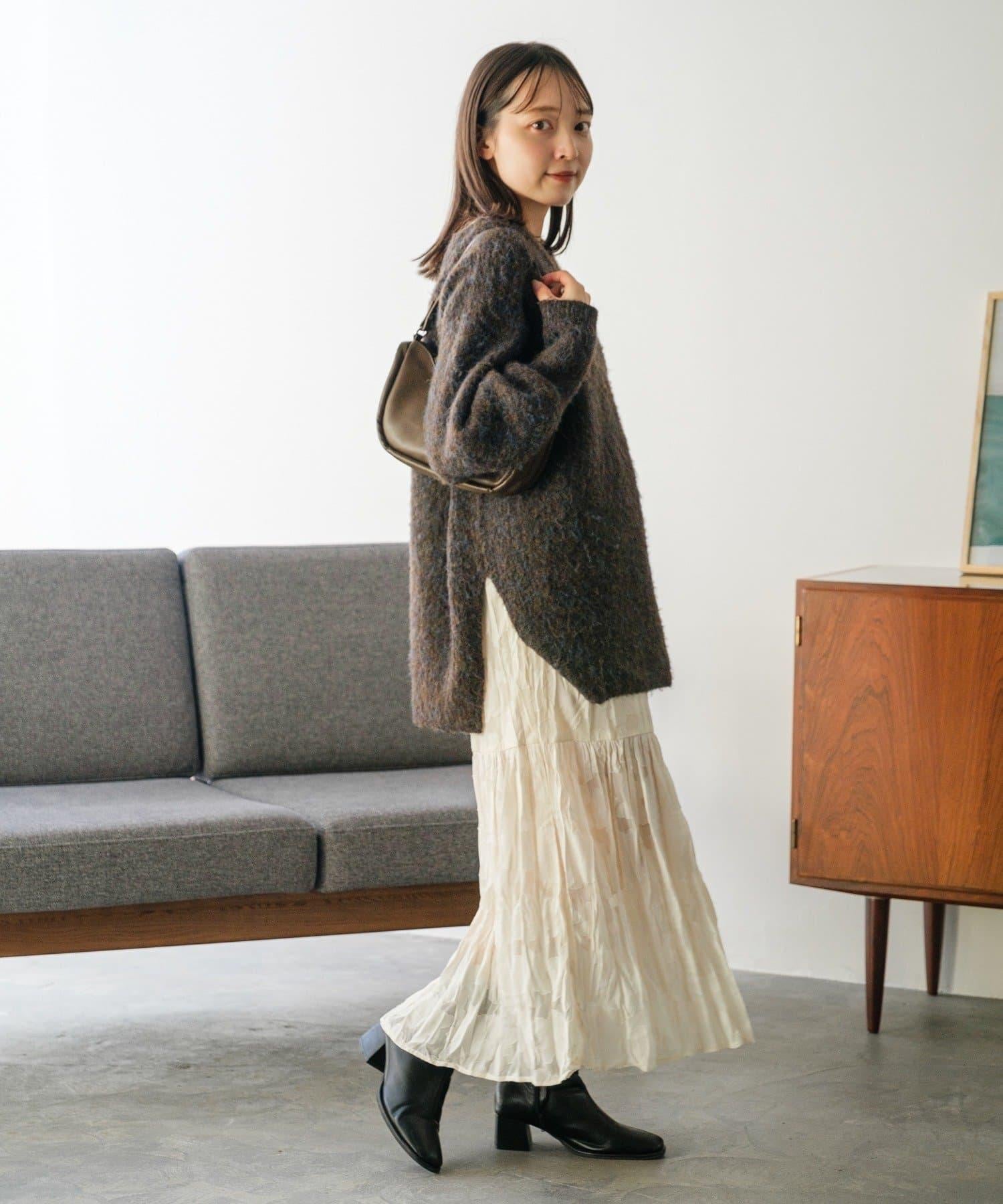 大理石花紋的色彩給人以自然、溫暖的印象,穿上它就能營造出溫和的氛圍。