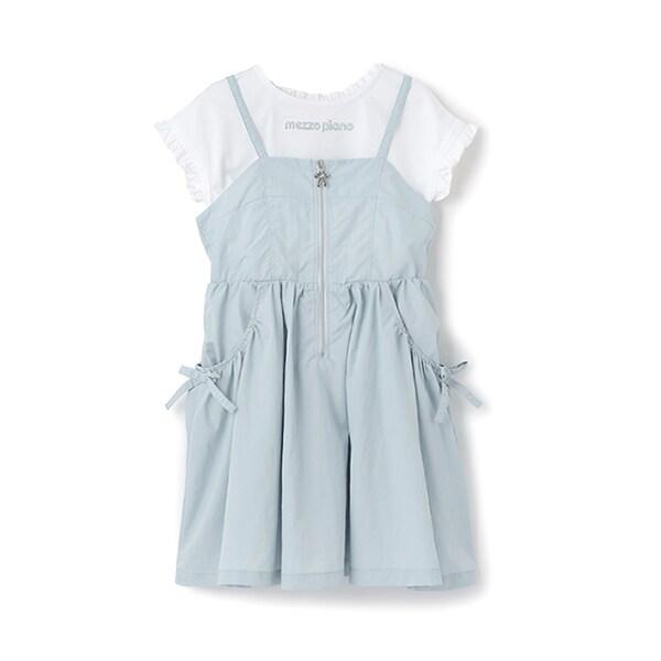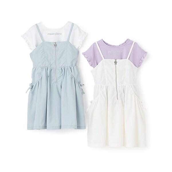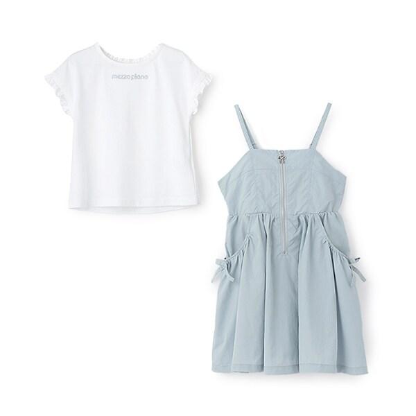 前拉鍊吊帶連衣裙&短袖T恤套裝