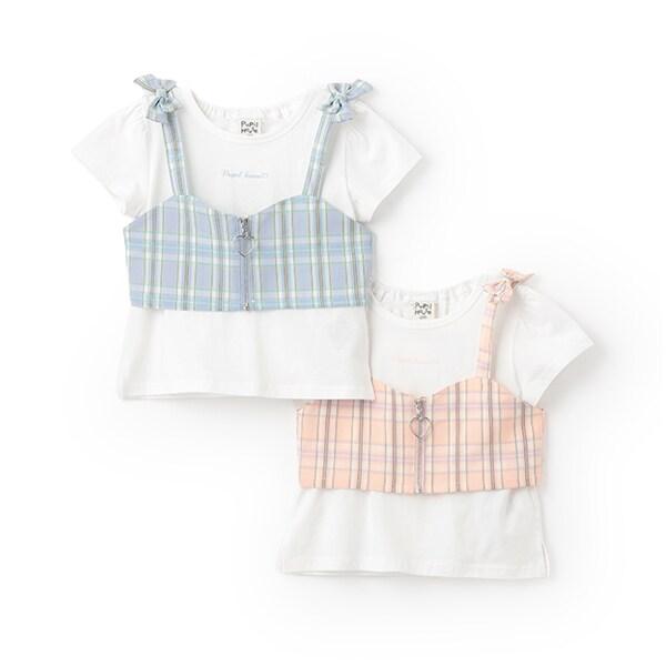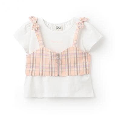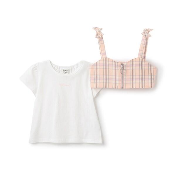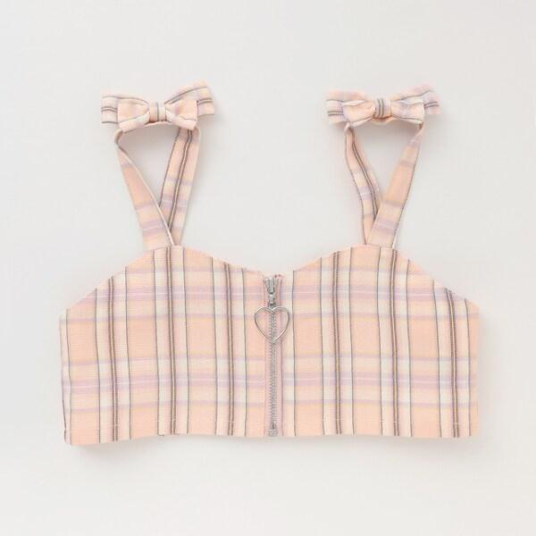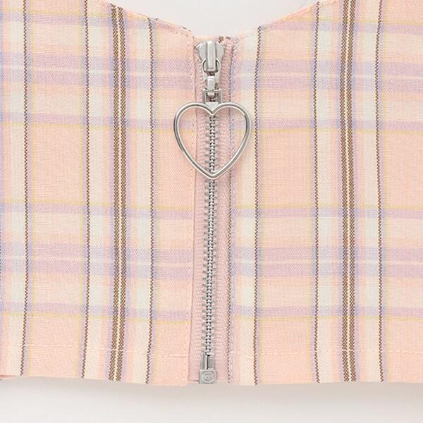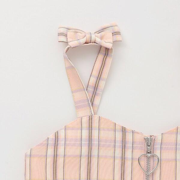 半身裙上飾有可愛的裝飾絲帶和清新的格紋。
