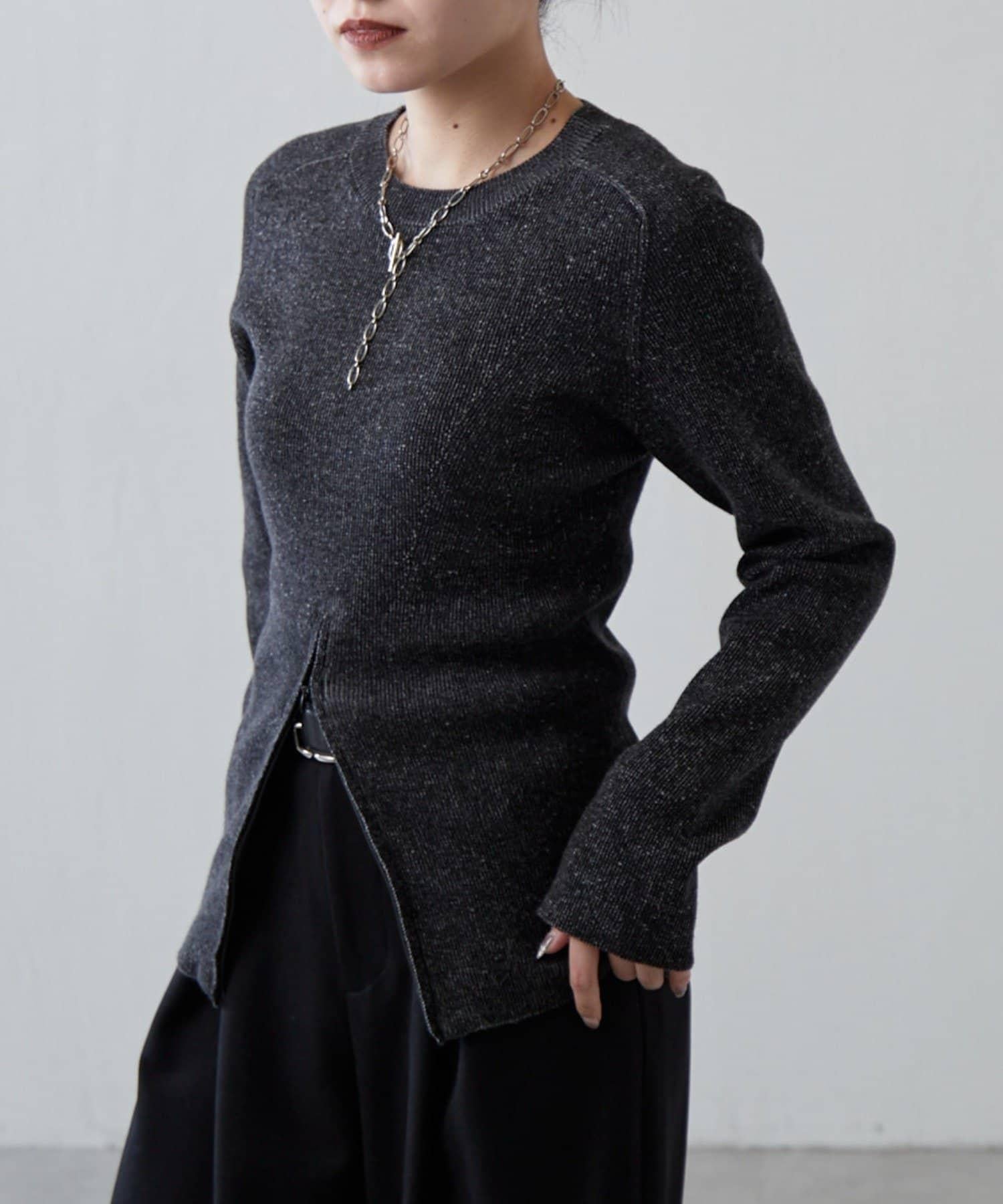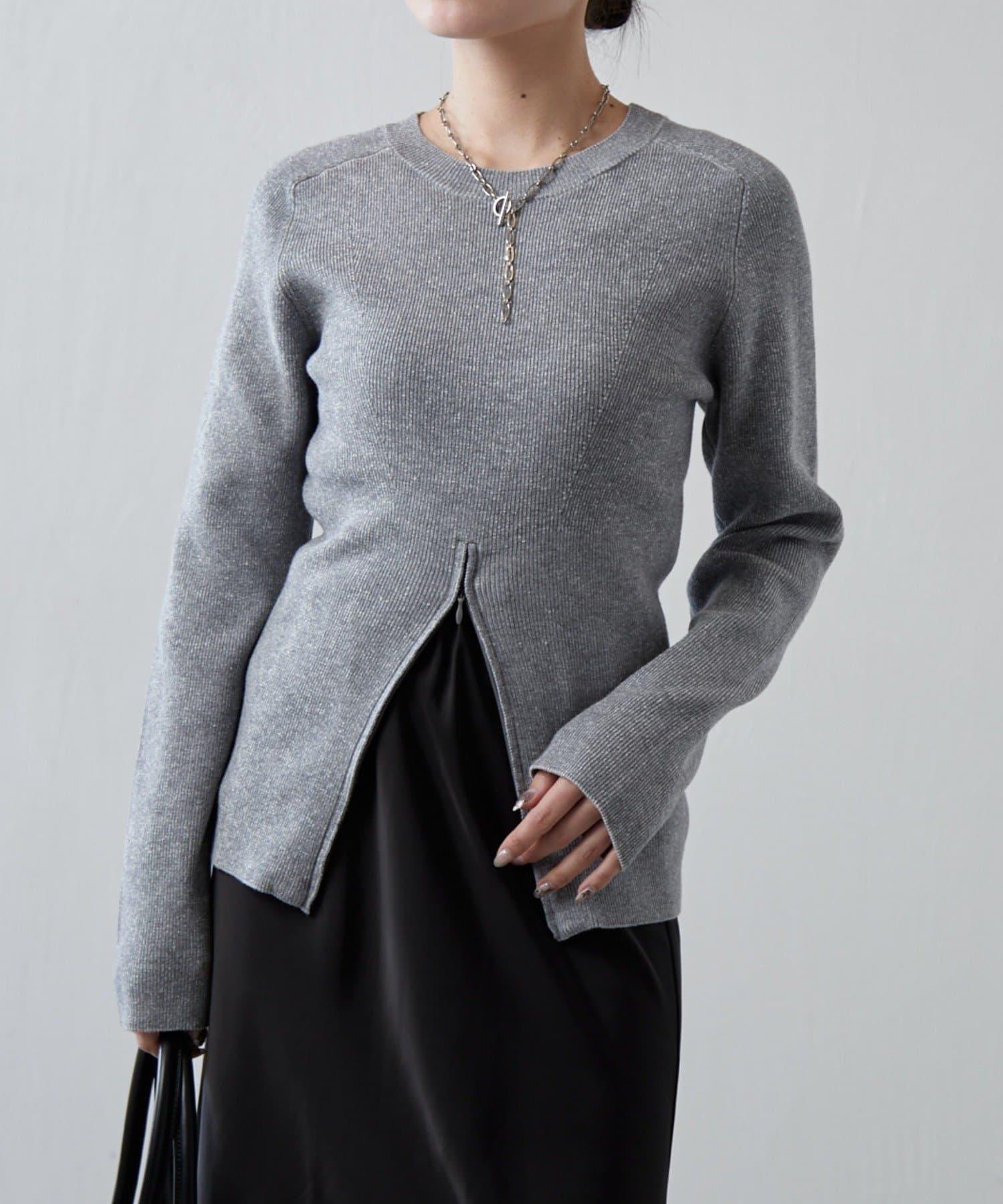 前拉鍊設計針織上衣