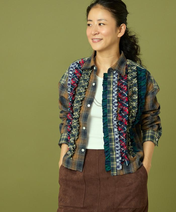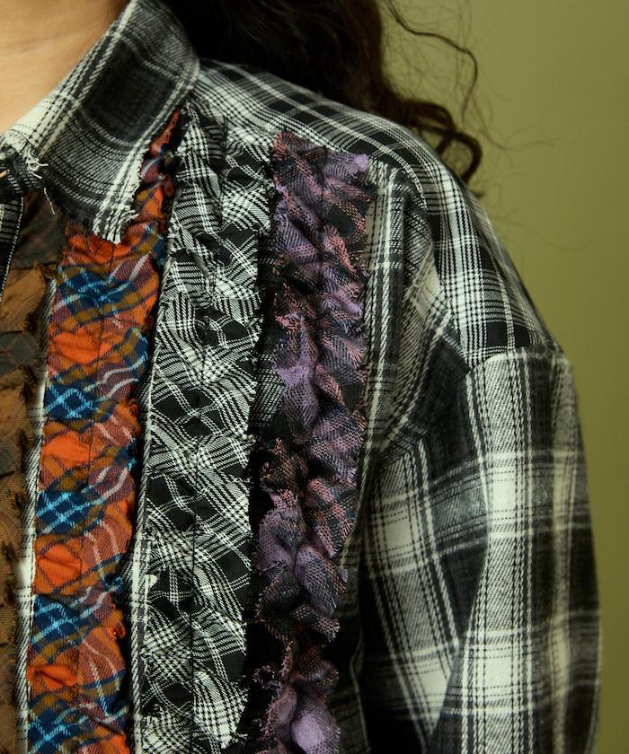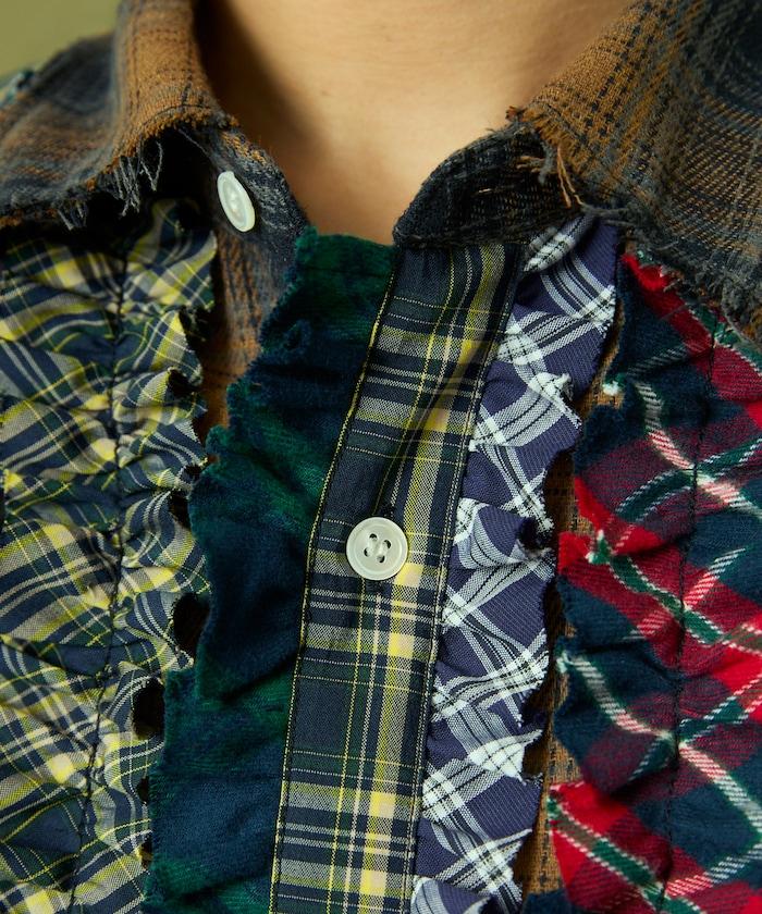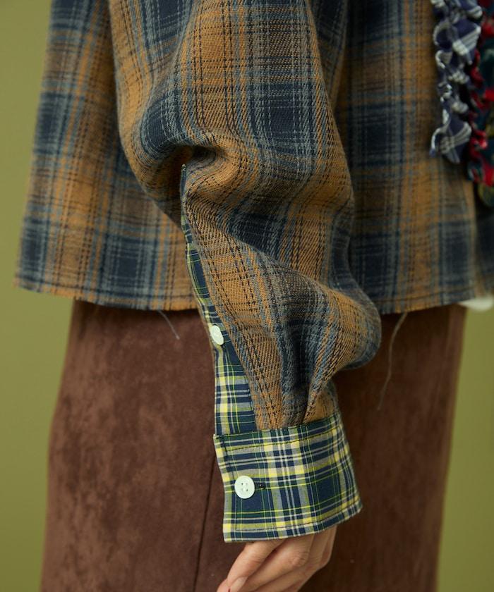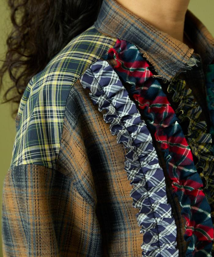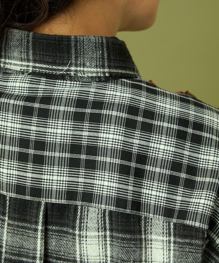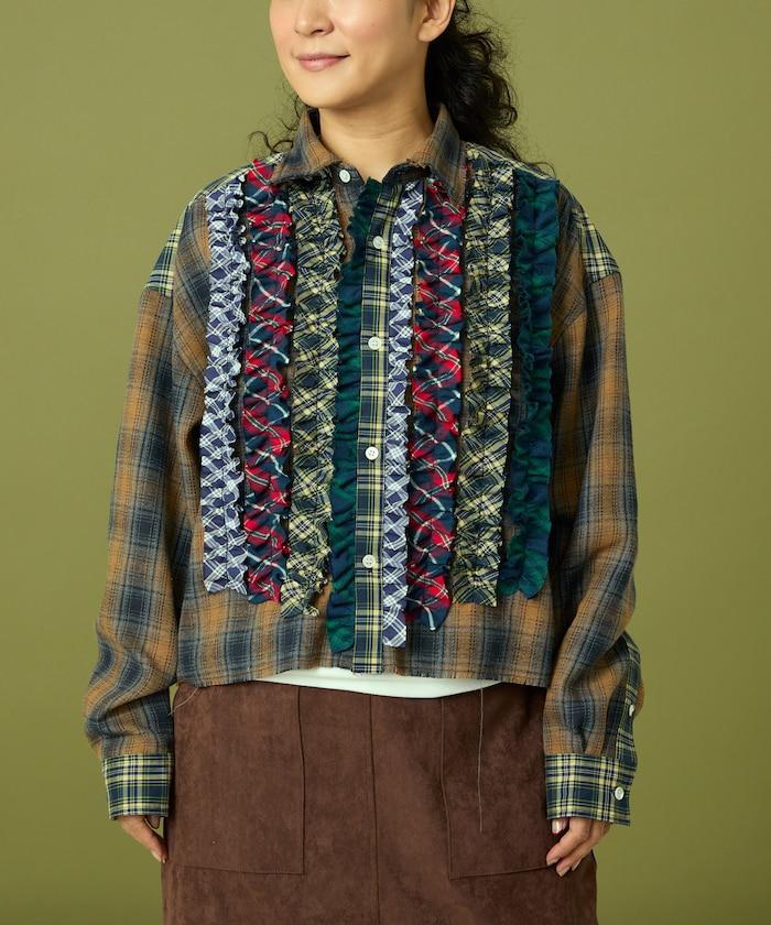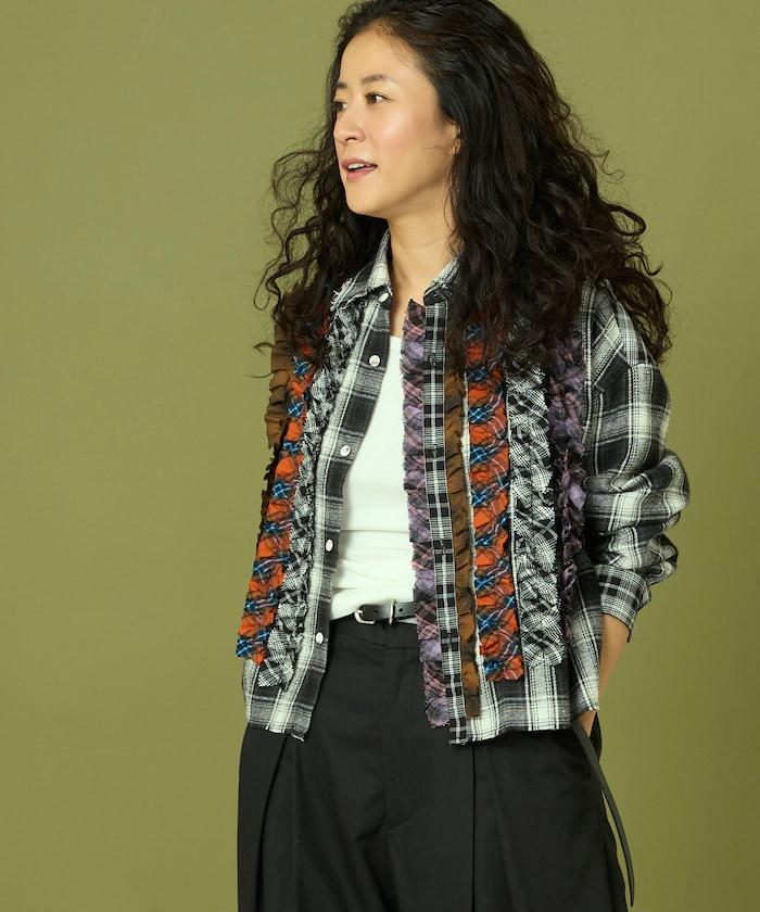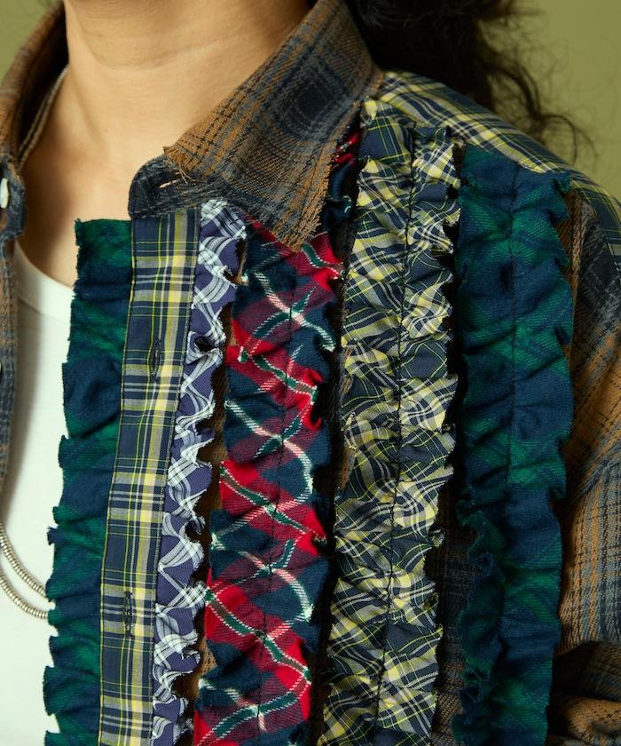 荷葉邊部分採用類似弗裡達圖案的××圖案襯衫,同時進行調整,使相同圖案的格紋不會相鄰。