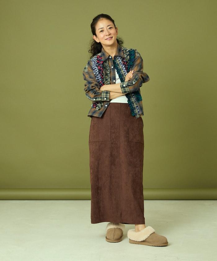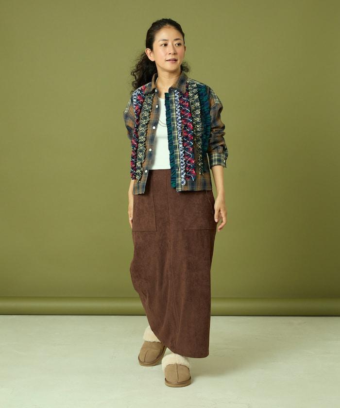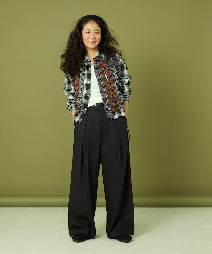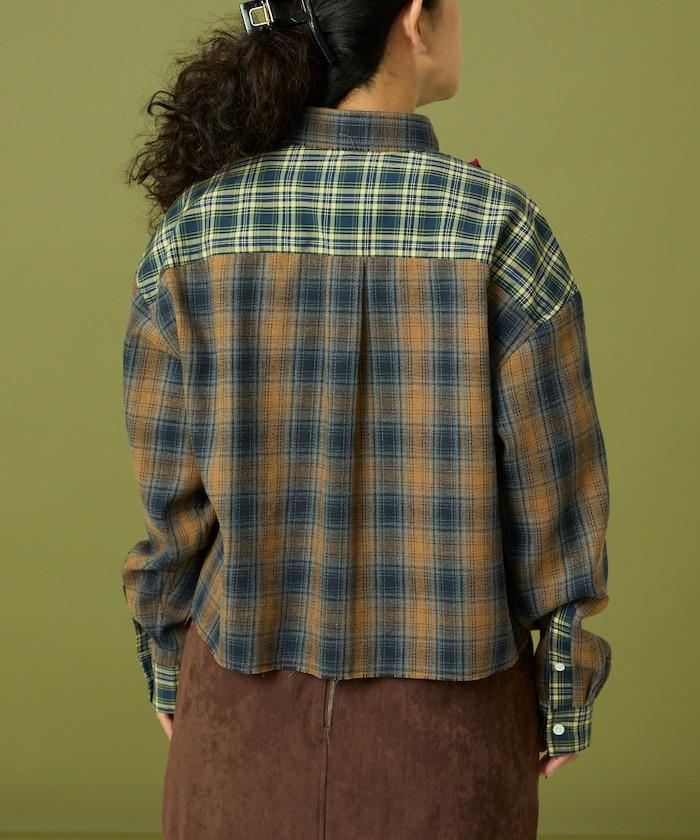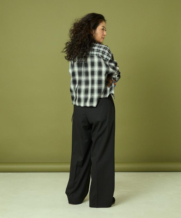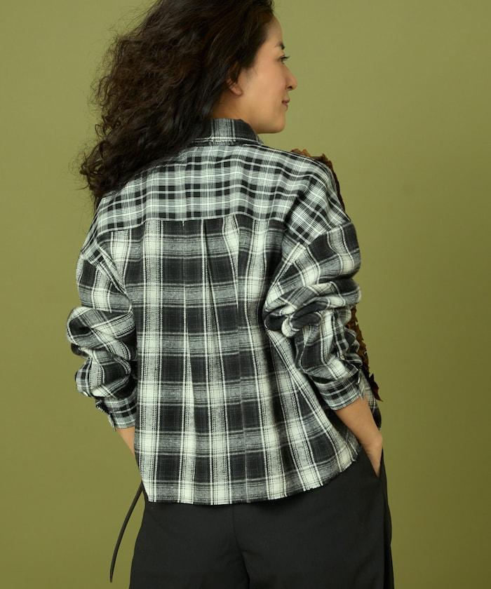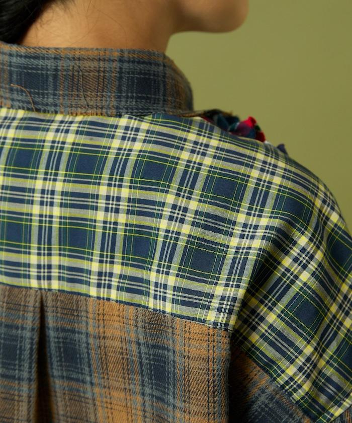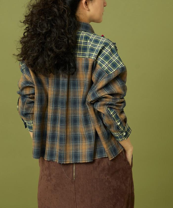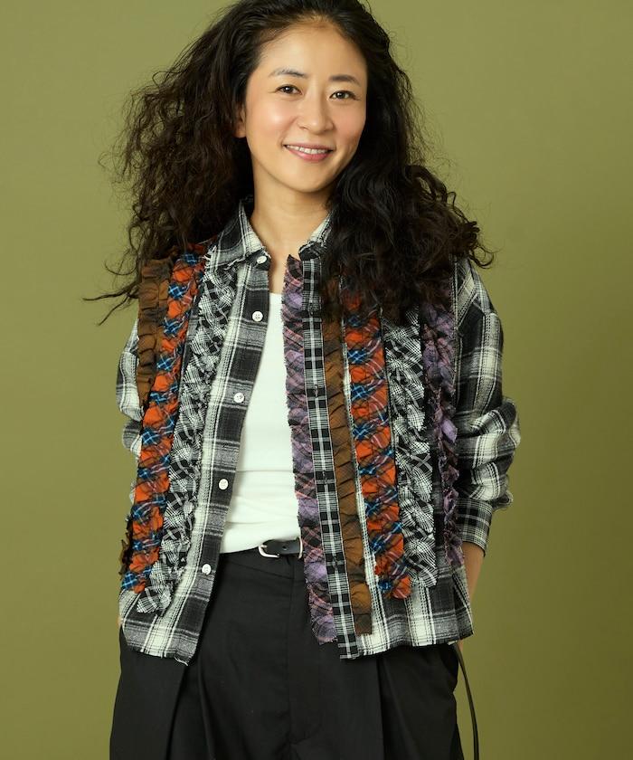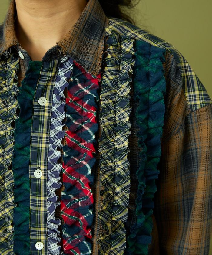 荷葉邊部分採用類似弗裡達圖案的××圖案襯衫,同時進行調整,使相同圖案的格紋不會相鄰。