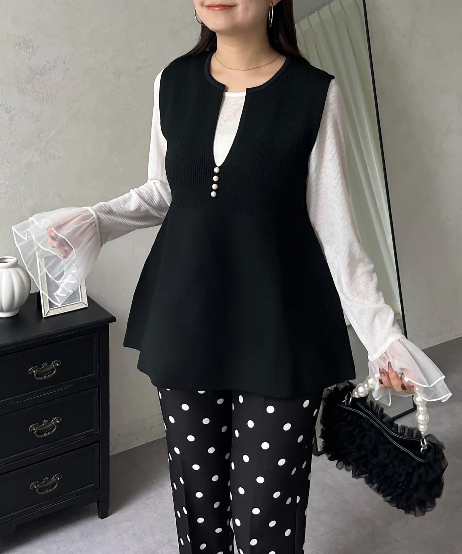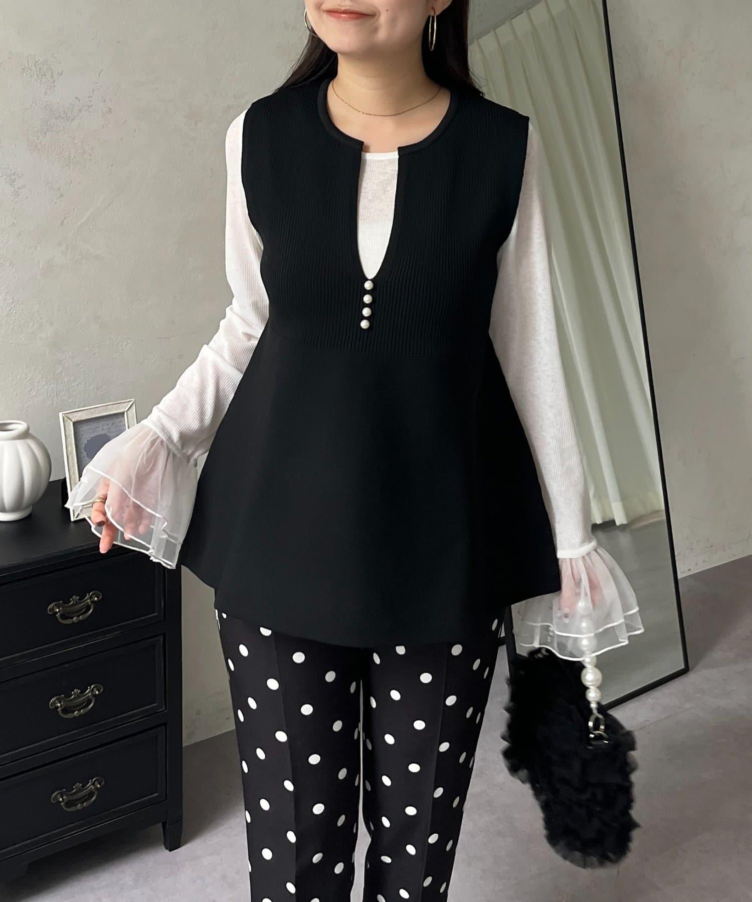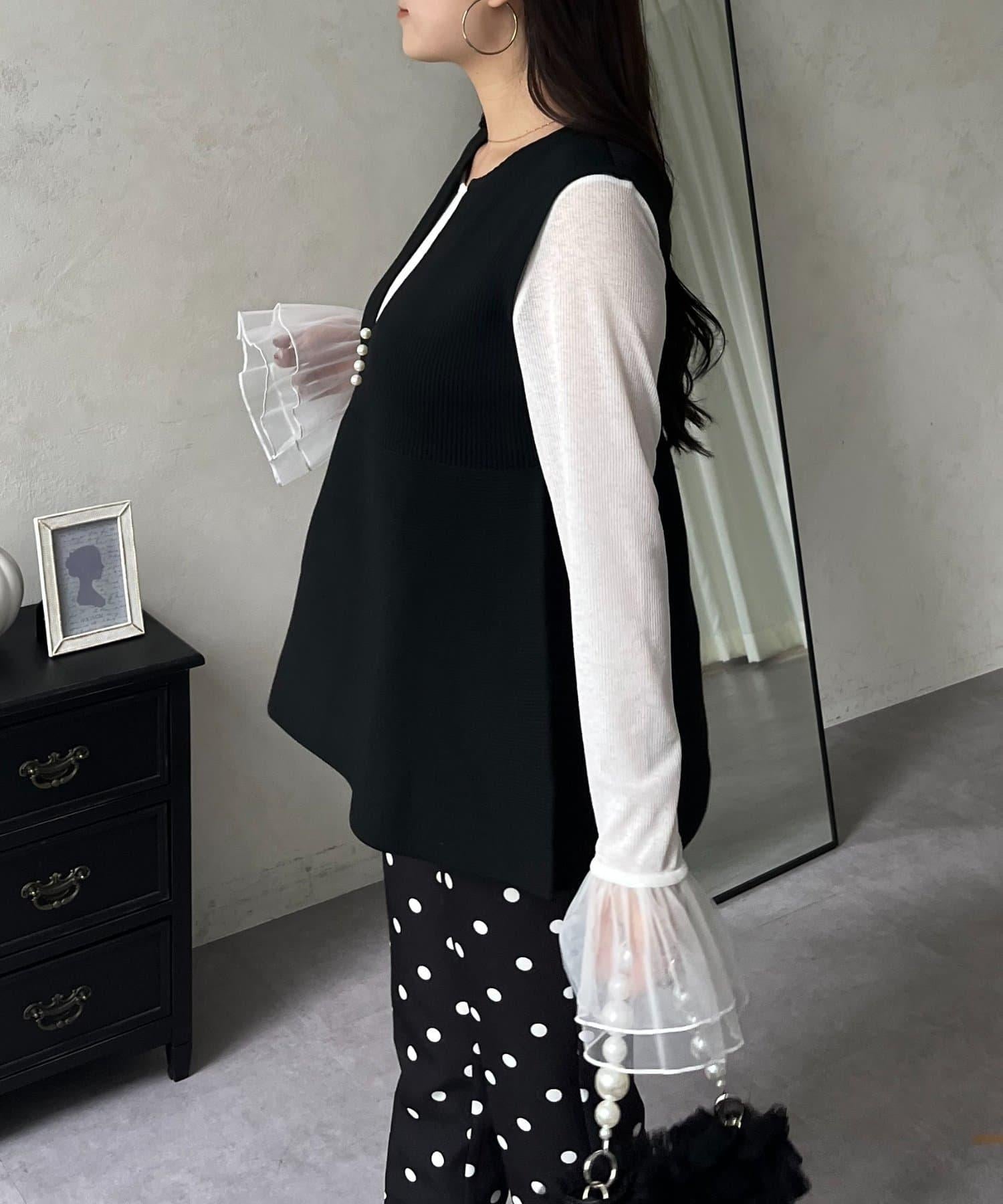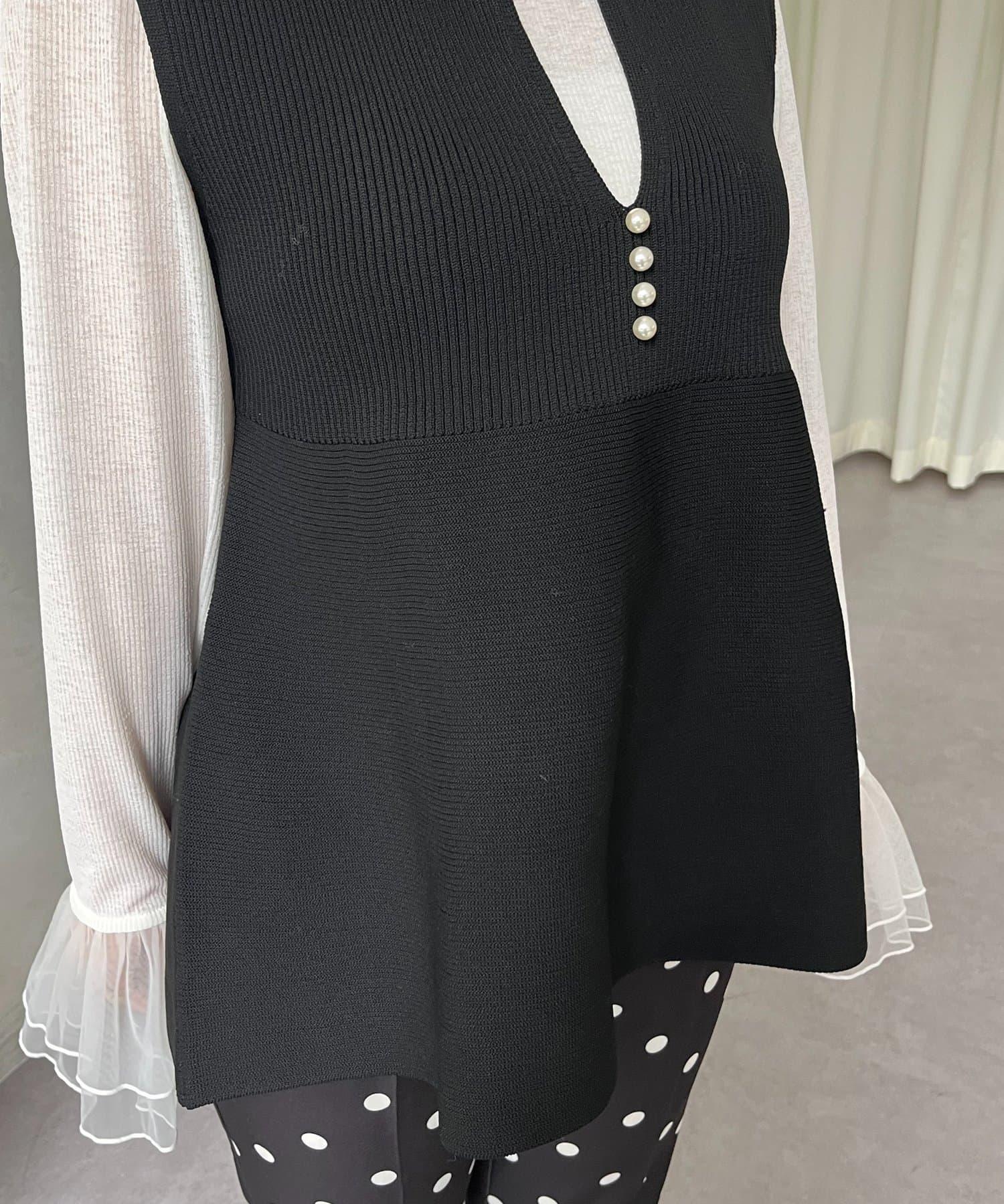 預約商品前珍珠裝飾深V領荷葉邊針織背心